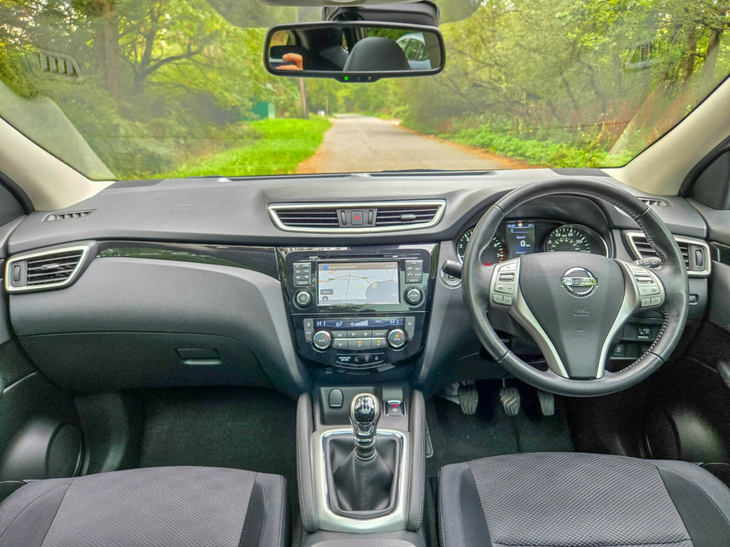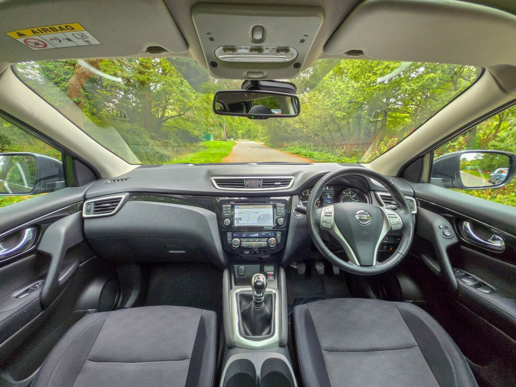 FULL SERVICE HISTORY,JUST SERVICED,LONG MOT,READY TO GO----This 2015 Nissan Qashqai 1.2 DIG-T n-tec+ SUV with 87,000 miles on the clock is a stylish and reliable 5-door SUV perfect for family adventures. Powered by a petrol engine and manual 2WD transmission, this Euro 6 compliant vehicle is not only ULEZ compliant but also comes with an MOT valid until 28/06/2026, giving you peace of mind for the years to come. With 5 comfortable seats and a range of features including 18in Alloy Wheels, Black Honeycomb Front Grille, Body Coloured Handles and Bumpers, as well as Chrome Glass Surround, this Qashqai is designed to turn heads on the road. Whether you're navigating city streets or country roads, this SUV is ready to take on any journey with style and ease., in alloy wheels - diamond cut, black honeycomb front grille, body coloured handles, bumpers - body coloured, chrome glass surround, door mirrors - body coloured, door mirrors - power fold and heated, front and rear electric windows, panoramic glass roof, puncture repair kit, rear privacy glass, roof rails - satin, 6 speakers, aux-in socket, dab radio, radio-cd, satellite navigation - nissan connect, telephone - bluetooth integration, touch screen 7in, usb port, 60-40 split rear folding seats, armrest - rear, auto dimming rear view mirror, auto rain sensing wipers, climate control - dual zone, driver seat height adjustment, front armrest, head restraints - active front, head restraints - rear, interior ambient lighting, leather gear knob, leather steering wheel, luggage board system, lumbar support, pollen filter, push start-stop button, rear cupholder, seats - passengers height adjustment, steering wheel mounted audio controls, tilt and telescopic adjustable steering wheel, abs - anti lock brakes, airbag - driver, airbag - passenger, airbags - curtain, airbags - side, alarm, brake assist, ebd - electronic brakeforce distribution, esp - electronic stability programme, front collision avoidance, hill start assist, isofix childseat anchorage points - middle row outer seats, immobiliser, intelligent key, rear door child locks, smart vision pack, speed-sensitive autolock function, traction control, e-pkb - electric parking brake, around view monitor - 360 bird-view, colour side camera, cruise control with speed limiter, electric speed-sensitive power steering, lane departure warning, parking sensor - front, rear parking sensor, tpms - tyre pressure monitoring system, traffic sign recognition, trip computer, front fog lights, headlights - auto, headlights - auto high-low beam, led daytime running lights
