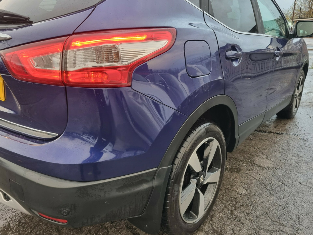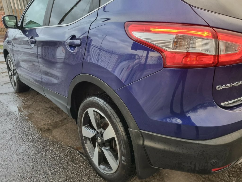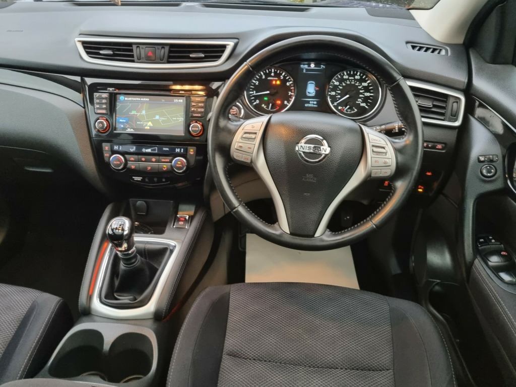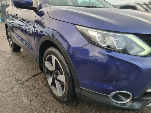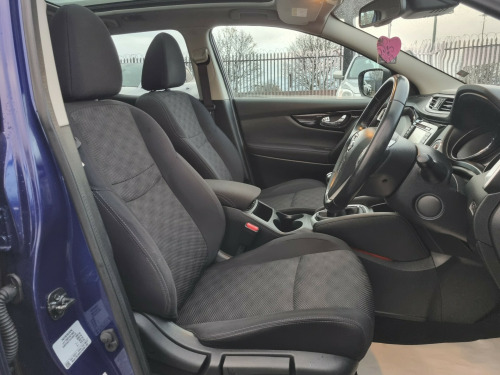 We Are Proud To Present This Stunning 2015 Nissan Qashqai N-Tec+ Presented In Blue With Complementing Black Cloth Interior. This Amazing Car Includes 18'' Alloy Wheels, Front + Rear Sensors With 360 Reversing Camera, PANROOF, Touchscreen Entertainment System, Privacy Glass, DAB Radio, Automatic Daytime Running Lights, 2 FORMER KEEPERS, FULL SERVICE HISTORY (11 STAMPS), Keyless Go And Entry, Cruise Control, Air Conditioning, CD Player With AUX And USB Connectivity, Lane Assist, 6 Speed Manual Gearbox And Multifunction Leather Steering Wheel. Do Not Miss This Stunning Example Reserve This Vehicle Now For £100, FCA Approved Garage, TOP PRICE PAID ON PART EXCHANGE, BUY WITH CONFIDENCE. in alloy wheels - diamond cut, black honeycomb front grille, body coloured handles, bumpers - body coloured, chrome glass surround, door mirrors - body coloured, door mirrors - power fold and heated, front and rear electric windows, panoramic glass roof, puncture repair kit, rear privacy glass, roof rails - satin, 6 speakers, aux-in socket, dab radio, radio-cd, satellite navigation - nissan connect, telephone - bluetooth integration, touch screen 7in, usb port, 60-40 split rear folding seats, armrest - rear, auto dimming rear view mirror, auto rain sensing wipers, climate control - dual zone, driver seat height adjustment, front armrest, head restraints - active front, head restraints - rear, interior ambient lighting, leather gear knob, leather steering wheel, luggage board system, lumbar support, pollen filter, push start-stop button, rear cupholder, seats - passengers height adjustment, steering wheel mounted audio controls, tilt and telescopic adjustable steering wheel, abs - anti lock brakes, airbag - driver, airbag - passenger, airbags - curtain, airbags - side, alarm, brake assist, ebd - electronic brakeforce distribution, esp - electronic stability programme, front collision avoidance, hill start assist, isofix childseat anchorage points - middle row outer seats, immobiliser, intelligent key, rear door child locks, smart vision pack, speed-sensitive autolock function, traction control, e-pkb - electric parking brake, around view monitor - 360 bird-view, colour side camera, cruise control with speed limiter, electric speed-sensitive power steering, lane departure warning, parking sensor - front, rear parking sensor, tpms - tyre pressure monitoring system, traffic sign recognition, trip computer, front fog lights, headlights - auto, headlights - auto high-low beam, led daytime running lights