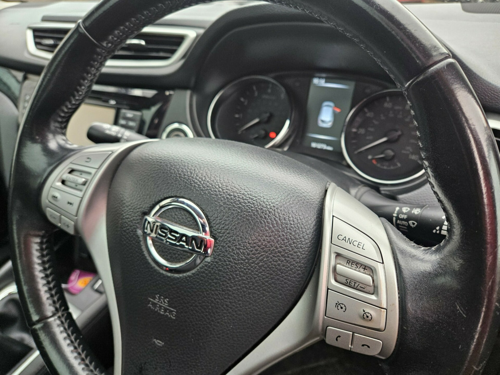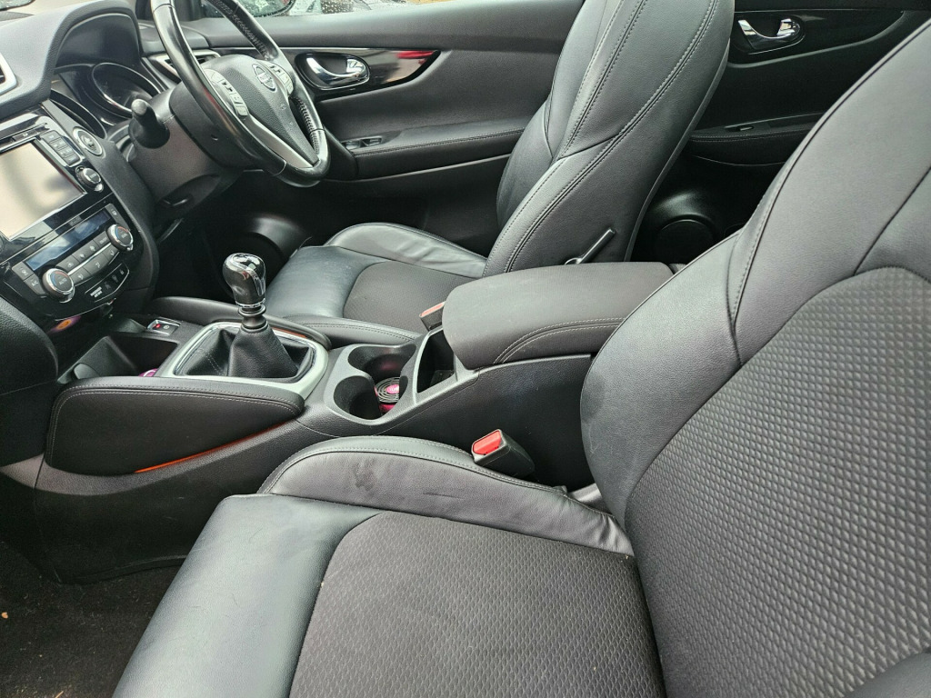 This 2016 Nissan Qashqai 1.2 DIG-T n-tec+ SUV with 101000 miles on the clock is a reliable and stylish choice for those in the market for a petrol-powered SUV. With 5 seats and 5 doors, it's spacious and practical for everyday use, and the fact that it's ULEZ compliant means it's environmentally friendly too. The MOT is valid until 14/10/2026, so you can have peace of mind about its roadworthiness. The Euro 6 (s/s) engine delivers 115 ps of power, and the manual 2WD transmission adds to the driving experience. The car comes with 18in Alloy Wheels, Black Honeycomb Front Grille, Body Coloured Handles, Bumpers, and Chrome Glass Surround, making it stand out on the road. This Qashqai is ready to take you on your next adventure in style and comfort. in alloy wheels - diamond cut, black honeycomb front grille, body coloured handles, bumpers - body coloured, chrome glass surround, door mirrors - body coloured, door mirrors - power fold and heated, front and rear electric windows, panoramic glass roof, puncture repair kit, rear privacy glass, roof rails - satin, 6 speakers, aux-in socket, dab radio, radio-cd, satellite navigation - nissan connect, telephone - bluetooth integration, touch screen 7in, usb port, 60-40 split rear folding seats, armrest - rear, auto dimming rear view mirror, auto rain sensing wipers, climate control - dual zone, driver seat height adjustment, front armrest, head restraints - active front, head restraints - rear, interior ambient lighting, leather gear knob, leather steering wheel, luggage board system, lumbar support, pollen filter, push start-stop button, rear cupholder, seats - passengers height adjustment, steering wheel mounted audio controls, tilt and telescopic adjustable steering wheel, abs - anti lock brakes, airbag - driver, airbag - passenger, airbags - curtain, airbags - side, alarm, brake assist, ebd - electronic brakeforce distribution, esp - electronic stability programme, front collision avoidance, hill start assist, isofix childseat anchorage points - middle row outer seats, immobiliser, intelligent key, rear door child locks, smart vision pack, speed-sensitive autolock function, traction control, e-pkb - electric parking brake, around view monitor - 360 bird-view, colour side camera, cruise control with speed limiter, electric speed-sensitive power steering, lane departure warning, parking sensor - front, rear parking sensor, tpms - tyre pressure monitoring system, traffic sign recognition, trip computer, front fog lights, headlights - auto, headlights - auto high-low beam, led daytime running lights