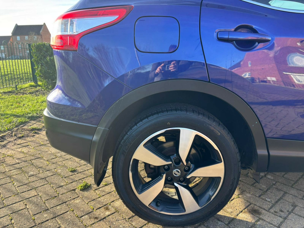 in alloy wheels - diamond cut, black honeycomb front grille, body coloured handles, bumpers - body coloured, chrome glass surround, door mirrors - body coloured, door mirrors - power fold and heated, front and rear electric windows, panoramic glass roof, puncture repair kit, rear privacy glass, roof rails - satin, 6 speakers, aux-in socket, dab radio, radio-cd, satellite navigation - nissan connect, telephone - bluetooth integration, touch screen 7in, usb port, 60-40 split rear folding seats, armrest - rear, auto dimming rear view mirror, auto rain sensing wipers, climate control - dual zone, driver seat height adjustment, front armrest, head restraints - active front, head restraints - rear, interior ambient lighting, leather gear knob, leather steering wheel, luggage board system, lumbar support, pollen filter, push start-stop button, rear cupholder, seats - passengers height adjustment, steering wheel mounted audio controls, tilt and telescopic adjustable steering wheel, abs - anti lock brakes, airbag - driver, airbag - passenger, airbags - curtain, airbags - side, alarm, brake assist, ebd - electronic brakeforce distribution, esp - electronic stability programme, front collision avoidance, hill start assist, isofix childseat anchorage points - middle row outer seats, immobiliser, intelligent key, rear door child locks, smart vision pack, speed-sensitive autolock function, traction control, e-pkb - electric parking brake, around view monitor - 360 bird-view, colour side camera, cruise control with speed limiter, electric speed-sensitive power steering, lane departure warning, parking sensor - front, rear parking sensor, tpms - tyre pressure monitoring system, traffic sign recognition, trip computer, front fog lights, headlights - auto, headlights - auto high-low beam, led daytime running lights