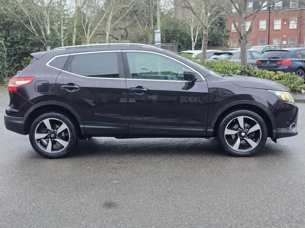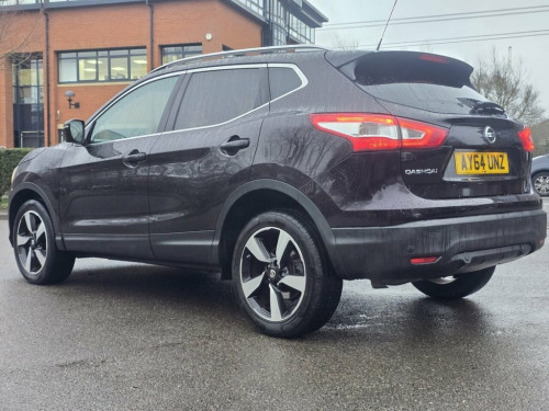 2014 Nissan Qashqai 1.2 DIG-T n-tec+ SUV 5dr Petrol XTRON 2WD Euro 5 (s/s) (115 ps) MILEAGE 76760 MOT 29/10/2026 2 X OWNERS 2 X KEYS shows a Nissan Qashqai 1.2 DIG-T n-tec+ SUV 5dr Petrol XTRON 2WD Euro 5 (s/s) (115 ps) Furniture included + DAB Digital Radio / AUX / USB + Audio Remote Controls + 6 Speakers, Rear child locks, Driver and passenger + front and rear side airbags, Front passenger airbag deactivation switch, Tyre pressure monitoring system, Thatcham Category 1 alarm + Immobiliser, Remote central deadlocking, ABS - Anti-lock Brake System, Brake Assist, Electronic Brakeforce Distribution, ESP - Electronic Stability Programme, Traction Control, Forward Emergency Braking, Auto Hill Start Assist, Electric heated folding door mirrors, Rain sensor windscreen wipers, Roof spoiler, Auto activated headlights, High beam assist, Split folding rear seat, Lumbar support, Isofix, Graphite Grey interior trim, 12V accessory power sockets, Armrest, Grey cloth upholstery, Black leather multifunction steering wheel, Pollen filter, Push button starter, 360 Around View Monitor, Lane departure warning system, Speed limiter, Traffic sign recognition, Driver information centre, Service interval indicator, Trip computer, 6 Speed manual gearbox. COMBINED 74.3 MPG + EURO 6 AND ULEZ COMPLIANT. Other models available, Visia, 360, Acenta Premium, N-Tec, Black Edition, Tekna, N-Tec+, Acenta, N-Vision, Automatic, XTronic, 1.2 DIG-T +++ ++ PANORAMIC GLASS SUNROOF / COLOUR TOUCH SCREEN NISSAN CO