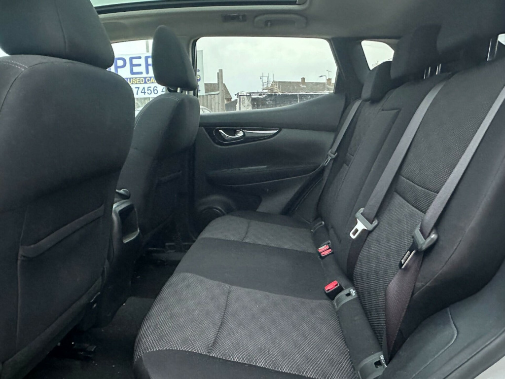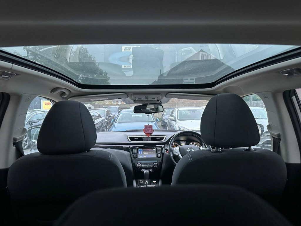 Discover this 2015 Nissan Qashqai DIG-T n-tec+ with remarkably low mileage for its age, having covered just 56,000 miles. This well appointed model features a 1.2L petrol engine and boasts a desirable Panoramic Glass Roof, complete with a fixed sunroof, offering an open and airy cabin experience. Navigating tight spaces is made easier with front parking sensors and the impressive Around View Monitor, which provides a 360 degree bird's eye view of your surroundings. Stay connected on the go with seamless Bluetooth integration for your telephone, and enjoy the convenience of Intelligent Key for keyless entry.This Qashqai n-tec+ is a smart choice, offering excellent fuel economy of 50 mpg, which is a significant advantage for your running costs. Its low CO2 emissions also contribute to its appeal, making it a more environmentally conscious option. Furthermore, its placement in a low insurance group highlights its affordability, indicating that it is generally less expensive to insure compared to many other vehicles in its class. These combined factors make this Nissan Qashqai a compelling proposition for those seeking a practical and economical family car. in alloy wheels - diamond cut, 6 speakers, 60-40 split rear folding seats, abs - anti lock brakes, aux-in socket, airbag - driver, airbag - passenger, airbags - curtain, airbags - side, alarm, armrest - rear, around view monitor - 360 bird-view, auto dimming rear view mirror, auto rain sensing wipers, black honeycomb front grille, body coloured handles, brake assist, bumpers - body coloured, chrome glass surround, climate control - dual zone, cruise control with speed limiter, dab radio, door mirrors - body coloured, door mirrors - power fold and heated, driver seat height adjustment, ebd - electronic brakeforce distribution, esp - electronic stability programme, electric speed-sensitive power steering, front armrest, front collision avoidance, front fog lights, front and rear electric windows, head restraints - active front, head restraints - rear, headlights - auto, headlights - auto high-low beam, hill start assist, isofix childseat anchorage points - middle row outer seats, immobiliser, intelligent key, interior ambient lighting, led daytime running lights, lane departure warning, leather gear knob, leather steering wheel, luggage board system, lumbar support, panoramic glass roof, parking sensor - front, pollen filter, puncture repair kit, push start-stop button, radio-cd, rear cupholder, rear door child locks, rear parking sensor, rear privacy glass, roof rails, satellite navigation - nissan connect, smart vision pack, speed-sensitive autolock function, steering wheel mounted audio controls, tpms - tyre pressure monitoring system, telephone - bluetooth integration, tilt and telescopic adjustable steering wheel, touch screen 7in, traction control, traffic sign recognition, trip computer, usb port, e-pkb - electric parking brake