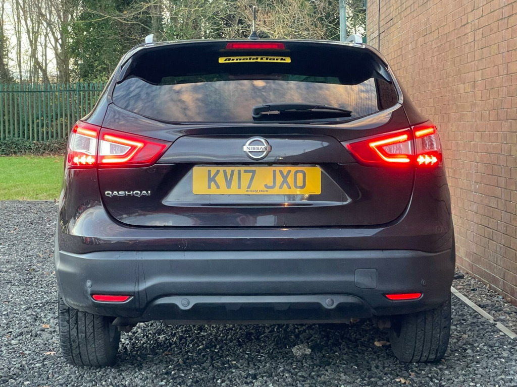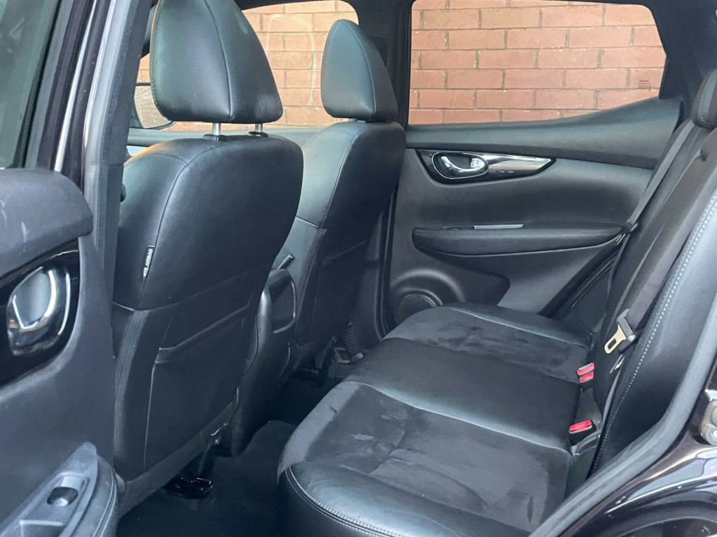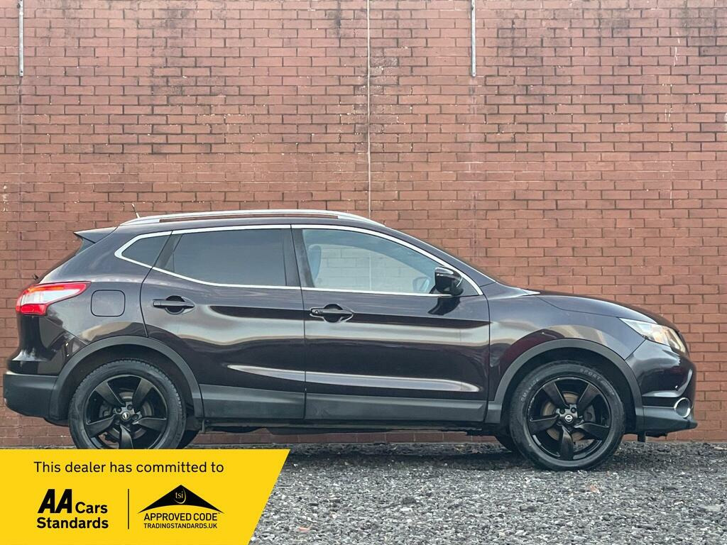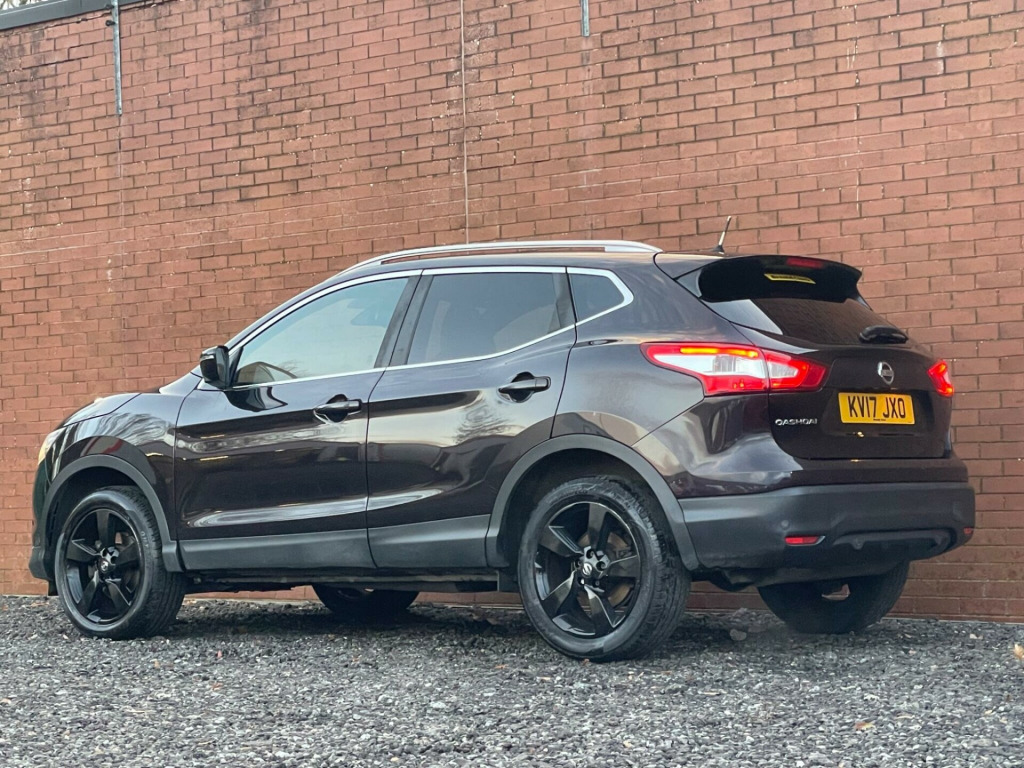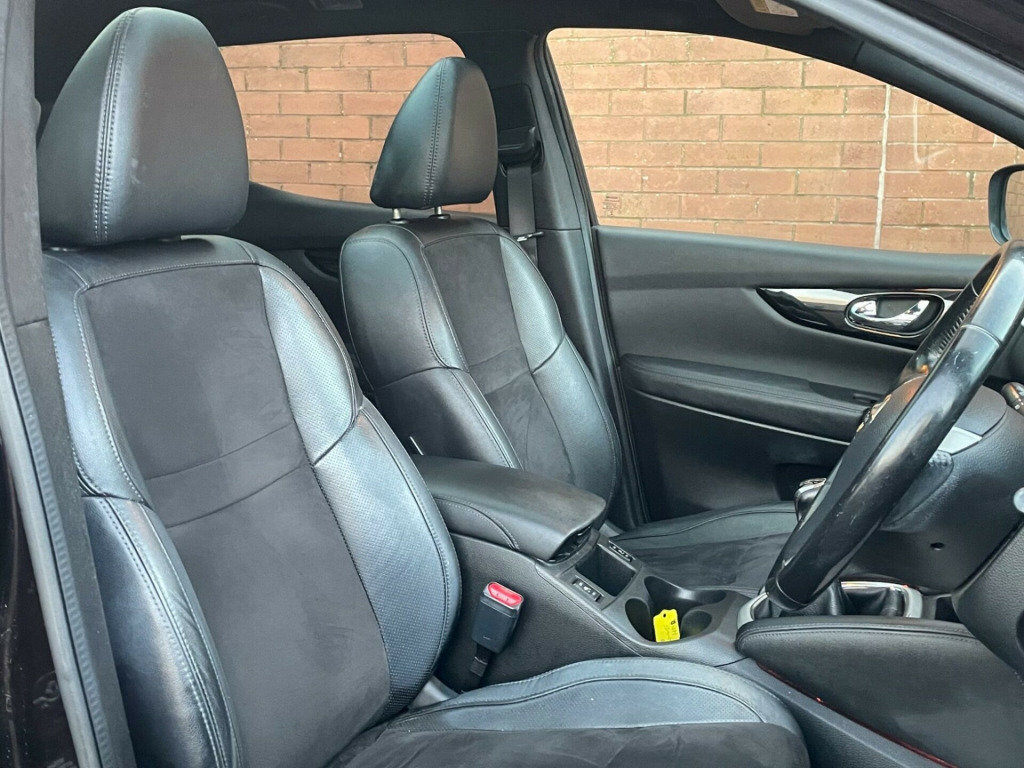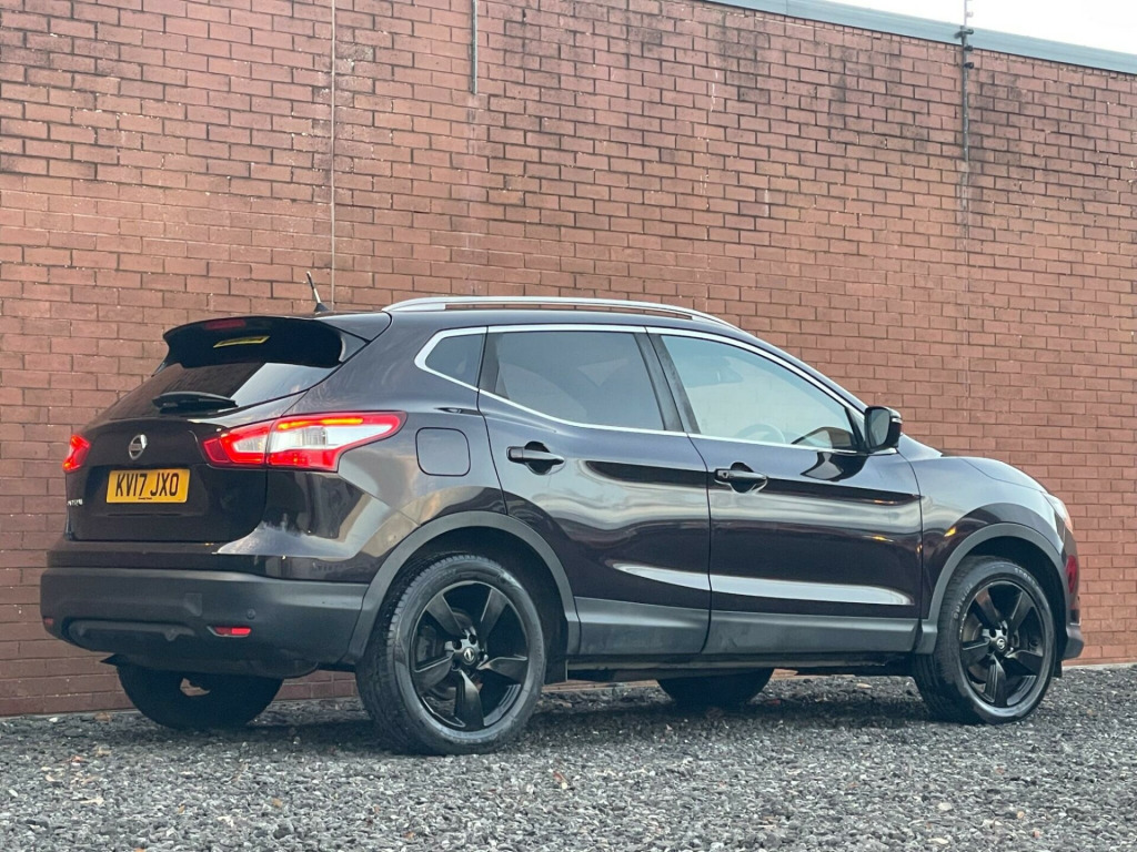 This 2017 Nissan Qashqai DIG T N Vision is a well maintained example of this popular family car. It features a 1.2 litre petrol engine and meets Euro 6 emissions standards. Inside, you'll find comfortable heated front seats and dual zone climate control air conditioning to keep everyone comfortable. The N Vision trim also benefits from the Smart Vision Pack, which includes front and rear parking sensors, and the Tech Pack, offering Bluetooth connectivity and a 360 degree camera for effortless manoeuvring. Keyless entry is also included with the Intelligent Key.This Qashqai offers excellent running costs, achieving an impressive 50 miles per gallon. Its low CO2 emissions and low insurance group rating further highlight its efficiency and affordability, making it a sensible choice for many drivers looking for a practical and economical vehicle that stands out from the crowd., orts alcantara and part leather - graphite, 18in alloy wheels - diamond cut, 3 x 3-point rear seatbelts with elr, 5in high definition full colour tft screen combimeter, 6 speakers, 60-40 split rear folding seats, aux socket for mp3 player, alarm, automatic folding door mirrors, automatic lights and wipers, black honeycomb front grille, bluetooth, body-coloured bumpers - handles and mirrors, cd radio, chrome glass surround, cruise control with speed limiter, dark headlining, drive computer, driver seat height adjustment, driver-passenger-side and curtain airbags, drivers side one-touch and anti-trap window, dual zone climate control air conditioning, esp abs ebd and brake assist, electric speed-sensitive power steering, front centre console and armrest, front fog lamps with chrome ring, front seat belt height adjustment, front seat belts with load limiter and pretensioners, front and rear electric windows, head restraints - 3 rear, height adjustable front head restraints, hill start assist, isofix child seat anchoring points, immobiliser, intelligent key, interior ambient lighting, led signature daytime running lights, leather gear knob, leather steering wheel, luggage board system, nissan chassis controls, panoramic sunroof with one touch shade, puncture repair kit, push start-stop button, rear door child locks, rear privacy glass, rear seat armrest with 2 cupholders, remote audio control, roof rails - satin silver, seats - drivers electric adjustment, seats - drivers lumbar support, seats - heated front, seats - passengers height adjustment, selectable steering - normal or sport, smart vision pack, tpms - tyre pressure monitoring system, tech pack, tilt and telescopic adjustable steering wheel, e-pkb - electric parking brake