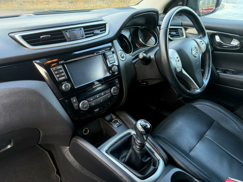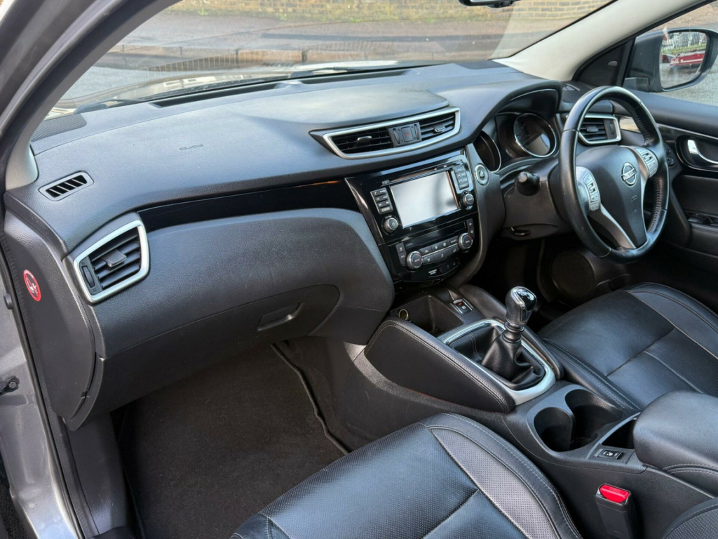Sevenoaks Automotive are pleased to offer this lovely Nissan Qashqai. This 2017 Nissan Qashqai DIG-T Tekna is a prime example of a well maintained vehicle, offering a blend of style and practicality. Powered by an efficient 1.2 litre petrol engine, this Euro 6 compliant model is registered in 2017 and boasts the desirable Tekna trim. Inside, you'll find a sophisticated Sports Alcantara and Part Leather interior in a stylish grey, complemented by the convenience of Intelligent Key with keyless entry. The Qashqai also features advanced Bi-LED headlights for superior visibility and a Heat Pack, including heated seats, ensuring comfort in all conditions. Stay connected on the go with the integrated Bluetooth system.This particular Qashqai DIG-T Tekna stands out with its impressive fuel economy, achieving up to 49 miles per gallon, which indicates it is more economical than many similar vehicles. Furthermore, its low CO2 emissions and low insurance group highlight its cost effectiveness for everyday driving, making it a sensible choice for a wide range of owners.Don't miss out on your chance to own this great car. Call us today to arrange a viewing. We work with several Finance companies, including Close Motor Finance, Blue Motor Finance and many more to make sure we are securing you the best possible finance rate.Part Ex Welcome, Low Rate HP & PCP Finance Available, Debit Cards Welcome. in alloy wheels - 5-spoke, 3 x 3-point rear seatbelts with elr, 5in high definition full colour tft screen combimeter, 6 speakers, 60-40 split rear folding seats, aux socket for mp3 player, alarm, automatic folding door mirrors, automatic lights and wipers, black honeycomb front grille, bluetooth, body-coloured bumpers - handles and mirrors, cd radio, chrome glass surround, cruise control with speed limiter, drive computer, driver seat height adjustment, driver-passenger-side and curtain airbags, drivers side one-touch and anti-trap window, dual zone climate control air conditioning, esp abs ebd and brake assist, electric speed-sensitive power steering, executive pack, front centre console and armrest, front fog lamps with chrome ring, front seat belt height adjustment, front seat belts with load limiter and pretensioners, front and rear electric windows, head restraints - 3 rear, headlights - automatic levelling, headlights - bi-led, heat pack, height adjustable front head restraints, hill start assist, isofix child seat anchoring points, immobiliser, intelligent key, intelligent park assist, interior ambient lighting, led signature daytime running lights, leather gear knob, leather steering wheel, luggage board system, nissan chassis controls, puncture repair kit, push start-stop button, rear door child locks, rear privacy glass, rear seat armrest with 2 cupholders, remote audio control, roof rails - satin silver, safety shield, seats - drivers lumbar support, seats - passengers height adjustment, selectable steering - normal or sport, smart vision pack, tpms - tyre pressure monitoring system, tech pack, tilt and telescopic adjustable steering wheel, e-pkb - electric parking brake, leather - graphite, sports alcantara and part leather - grey, panoramic sunroof with one touch shade