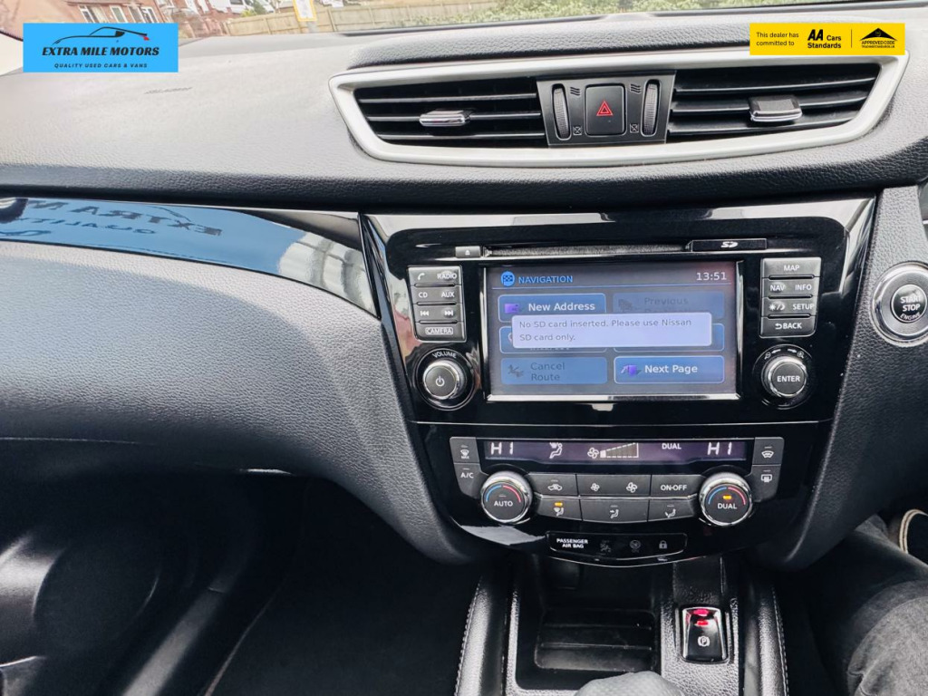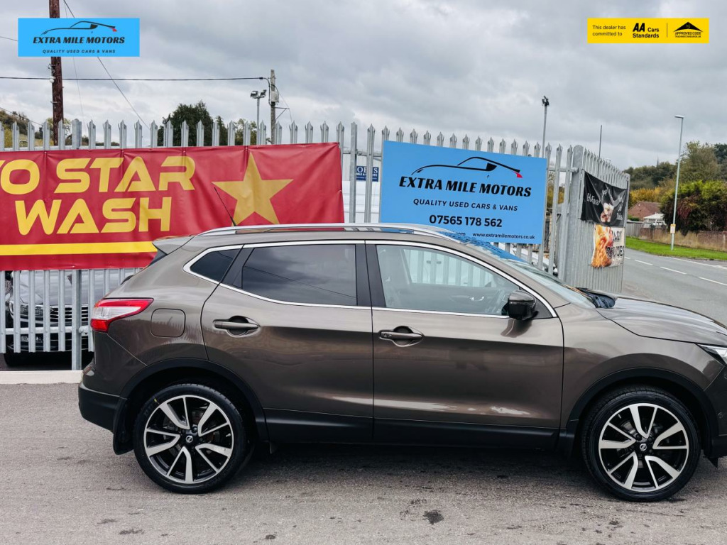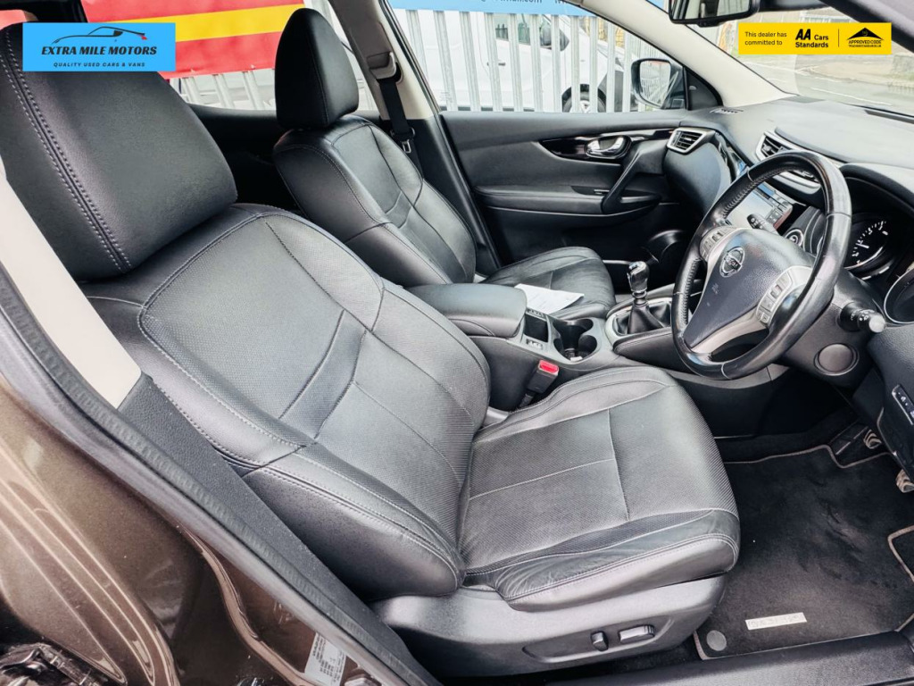 Here at Extra Mile Motors, we are proud to offer this stunning 2016 Nissan Qashqai 1.2 DIG-T Tekna in a sleek bronze finish. With just 43,000 miles on the clock, this SUV is not only stylish but also practical, making it the perfect choice for families or anyone who loves a bit of adventure. With a top speed of 115 mph and a zippy 1.2-litre petrol engine that delivers 113 bhp, you’ll enjoy a smooth and responsive drive. Plus, with a fuel consumption of 48.7 mpg, you can hit the road without worrying too much about those fuel costs. And let’s not forget, it’s ULEZ compliant, so you can cruise through the city with peace of mind.