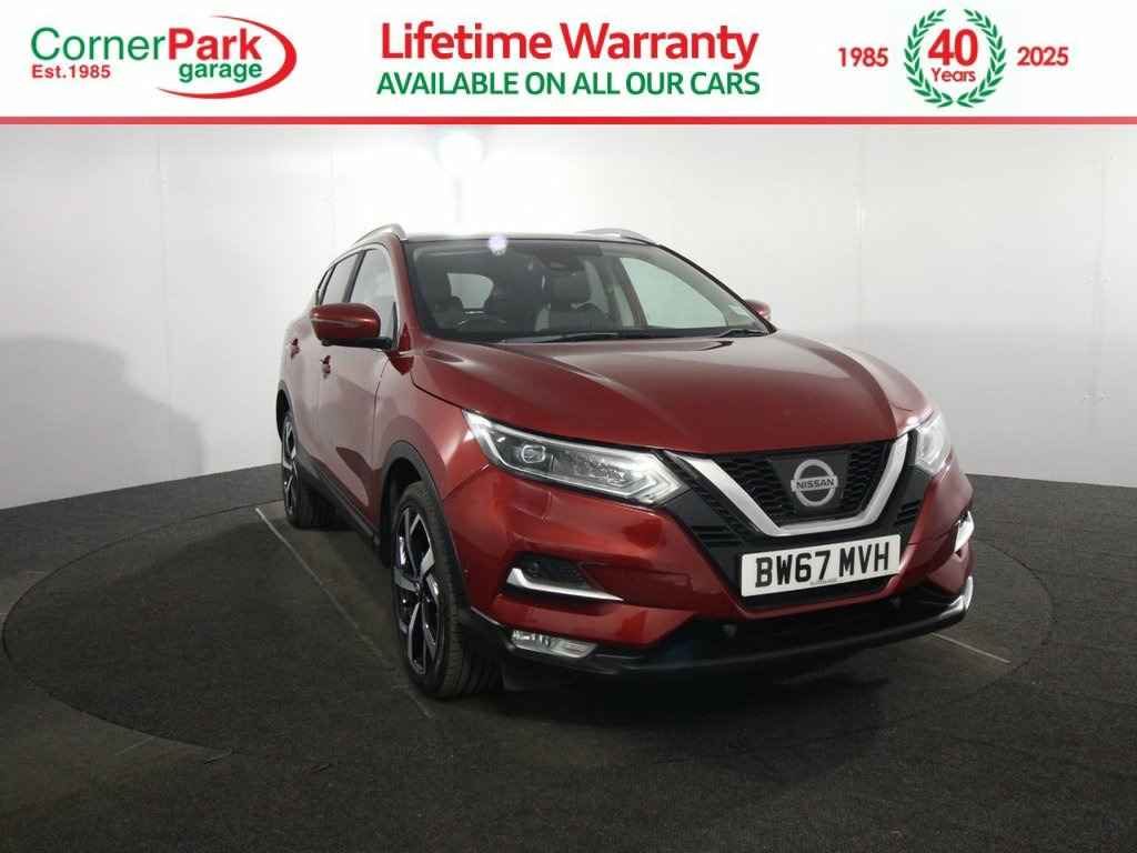 2 Owners. Comprehensive service history with 7 services. Last serviced at 63,482 miles in January 2025. This 2018 Nissan Qashqai 1.2 DIG-T Tekna impresses with a stylish design featuring 19-inch alloy wheels, matt silver roof rails, and privacy glass for rear passengers. It offers advanced lighting technology including adaptive front headlights with high beam assist and LED signature daytime running lights, complemented by an LED pack and intelligent auto headlights. The exterior is finished with chrome glass surrounds and LED turn indicators on the door mirrors for a refined look. Inside, the cabin is modern and comfortable, equipped with dual-zone climate control, a leather D-shaped steering wheel, leather gear lever, and monoform front seats with lumbar support and plastic backboards. The Tech Pack enhances connectivity with the NissanConnect Evo touchscreen navigation and entertainment system, smartphone app integration, Bose 8-speaker premium audio, and multiple USB and 12V power sockets. Ambient interior lighting and a parcel shelf with stow function add practicality and style. Safety and driver assistance systems are comprehensive and cutting-edge, including intelligent emergency braking, smart vision pack with lane departure warning, intelligent park assist, around view monitor, and traffic sign recognition. The Qashqai also features keyless start push button, electronic parking brake with AutoHold, hill start assist, tyre pressure monitoring system, and a Thatcham 19in Alloy Wheels, 3 Height Adjustable Rear Headrests, 60-40 Split Rear Folding Seats, Adaptive Front Lighting System, Advanced Drive Assist Display - 5in TFT , AM-FM Radio and CD Player, Ambient Lighting Centre Console, Anti Dazzle Rear View Mirror, Auto Wipers, AutoHold Function - Stand Still Assist, AUX Socket, Bluetooth, Body Coloured Door Mirrors, Body Coloured Handles, Boot Light, Bose 8 Speaker Premium Audio System, Carbon Graphite Dash Trim, Chrome Glass Surround, Chrome Interior Door Handles, Cruise Control with Speed Limiter, DAB Digital Radio, Daytime Running Lights Dip Function When, Driver Seat Height Adjustment, Driver-Passenger-Side and Curtain Airbag, Drivers Seat with Manual