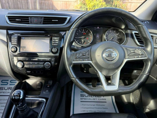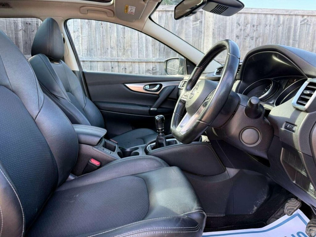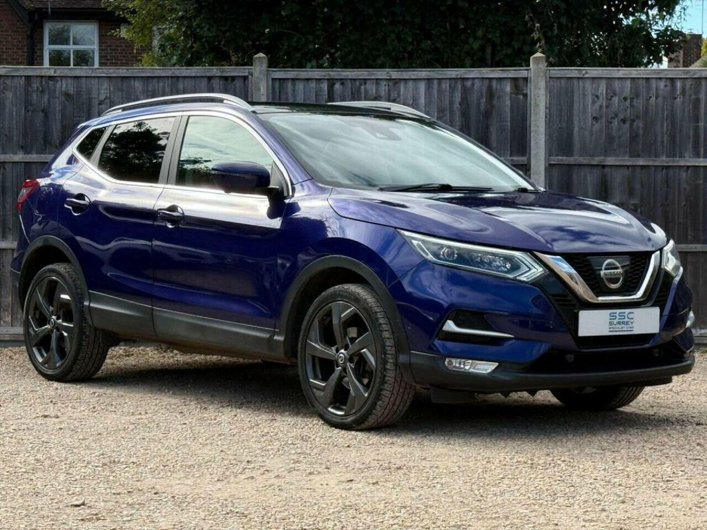 Surrey Specialist Cars are proud to present our lovely Nissan Qashqai Tekna DIG-T. This amazing car comes with Service History, finished in stunning metallic blue with half leather seats. The car was last serviced in July 2025 at 45,340 miles. The car has a MOT until January 2026 so it is ready to go. The 1.2L Petrol engine offers superb economy at over 50 MPG on combined cycle. Features Include Multifunction Steering Wheel, Trip Computer, Satellite Navigation,Heated Seats, Parking Camera, Panoramic Roof, Upgraded Sound System, Cruise Control, Speed Limiter, Stereo/Phone Control, FM/DAB Radio, Bluetooth Audio, USB Input, AUX Input, CD Player, Dual Zone Climate Control, 12V Charging Socket, Electronic Hand Brake, Auto Hold System, 6 Speed Manual Gearbox, Electric Windows, 19 Inch Alloy Wheels and two Remote Control Keys to name a few. We are open 7 days a week, and prepare all of our cars to the highest standards. We have a Click & Collect option available, and can also arrange delivery on request. All cars are HPI clear and a full history report is provided with every car. We welcome any inspection and viewing is highly recommended. All cars are available with our AA warranty starting from just ?150 for 3 months. Debit and credit card facilities are available and we offer competitive finance packages. If you have any questions or would like to view any of our cars give us a call or drop us a message on whatsapp 01483 363 144 to arrange an appointment with one of our team. W 19in Alloy Wheels, 3 Height Adjustable Rear Headrests, 60-40 Split Rear Folding Seats, AM-FM Radio and CD Player, AUX Socket, Adaptive Front Lighting System, Advanced Drive Assist Display - 5in TFT , Ambient Lighting Centre Console, Anti Dazzle Rear View Mirror, Auto Wipers, AutoHold Function - Stand Still Assist, Bluetooth, Body Coloured Door Mirrors, Body Coloured Handles, Boot Light, Bose 8 Speaker Premium Audio System, Carbon Graphite Dash Trim, Chrome Glass Surround, Chrome Interior Door Handles, Cruise Control with Speed Limiter, DAB Digital Radio, Daytime Running Lights Dip Function When, Driver Seat Height Adjustment, Driver-Passenger-Side and Curtain Airbag, Drivers Seat with Manual