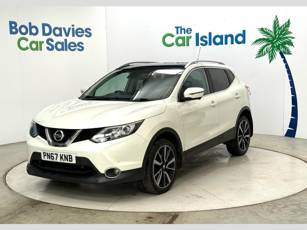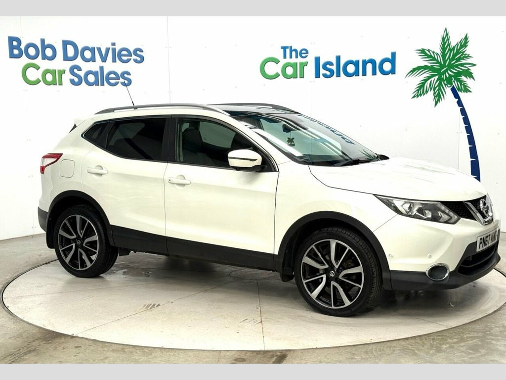 Gorgeous Top Spec Qashqai in Storm White with Panoramic Roof, Park Assist & 360 Parking Camera, Touchscreen SATNAV, 19" Diamond Cut Alloy Wheels, Apple Carplay & Android Auto, Heated Leather Seats, Bose Sounds, 12 Way Electric Seat Adjustment, Bluetooth Media, Dual Zone Climate Control, Cruise Control, Auto Lights and Wipers, DAB Radio, Full Service History & 2 Keys to list a few. ****** Bob Davies Car Sales is established as a trusted supplier of quality cars. Family business providing low mileage cars for over 40 years. High standards, great reputation & 5-star customer service. Best value in 100 mile radius. ***** Request a personal walk round on any car and we'll make sure you're happy before reserving, travelling or delivery. No pressure, no fuss, no fees. Secure with £100 refundable deposit.***** We deliver all over the UK to your door with our successful "Mouse to House" delivery. Wherever you live, we will bring your perfect car to you. Feel confident in the quality and condition of our vehicles, our warranty covers the UK.****** Best Rate Finance available to all, even for poor credit. No deposit needed just contact us and we will tailor to suit you. Part Exchange Very Welcome. Storm White, Glass Roof Pack, NissanConnect Evo Touchscreen Navigation, Heat Pack- Heated Leather, Intelligent Around View Monitor 360 Came, Bose 8 Speaker Premium Audio System, Privacy Glass, Rear View Camera, 19in Alloy Wheels, Rear Roof Spoiler, Smartphone App Integration, Passengers Seat with Manual Lumbar Suppo, Rear Parking Sensors, Parking Sensor - Front, Intelligent Park Assist, USB Port, Traffic Sign Recognition, Steering Wheel Mounted Audio Controls, Smart Vision Pack, Remote Central Locking, LED Signature Daytime Running Lights, ISOFIX Child Seat Anchoring Points - Rea, Bluetooth, DAB Digital Radio, AM-FM Radio and CD Player, Lane Departure Warning, Hill Start Assist, Cruise Contr