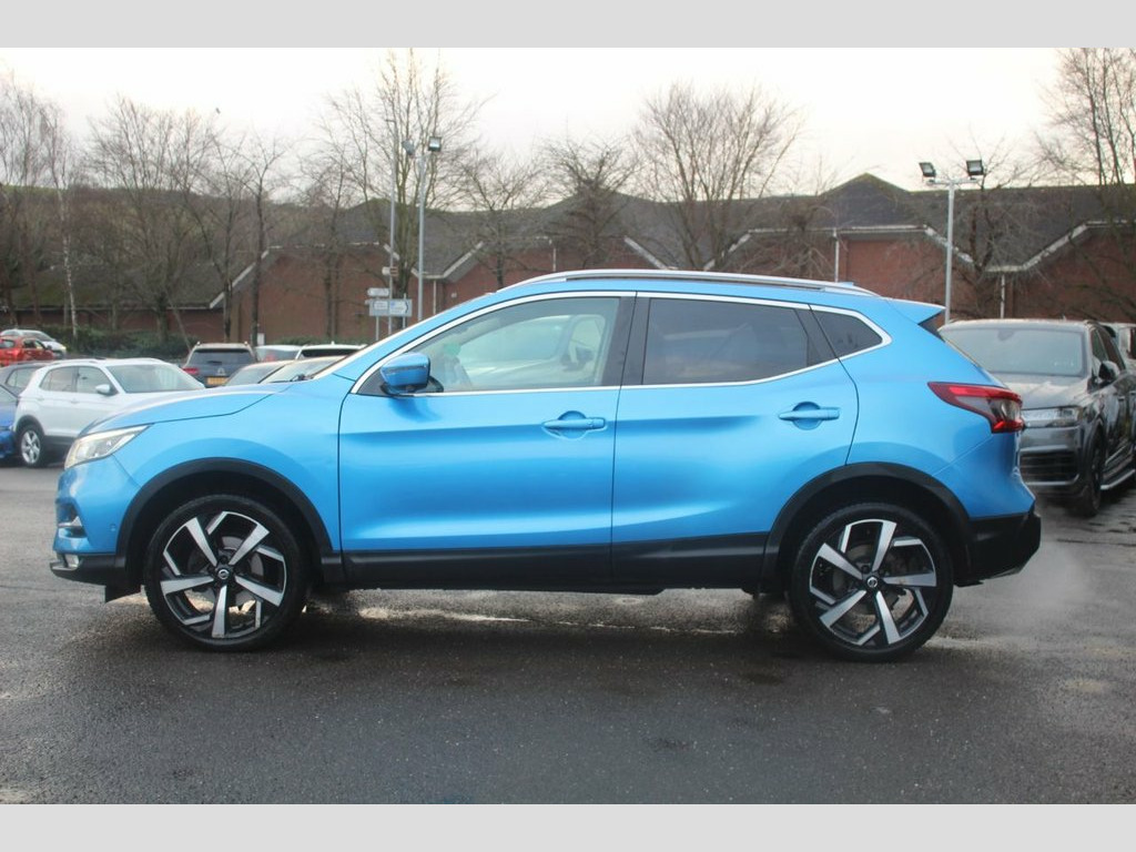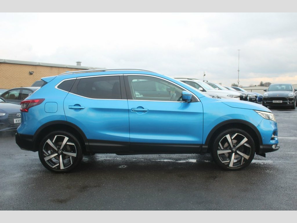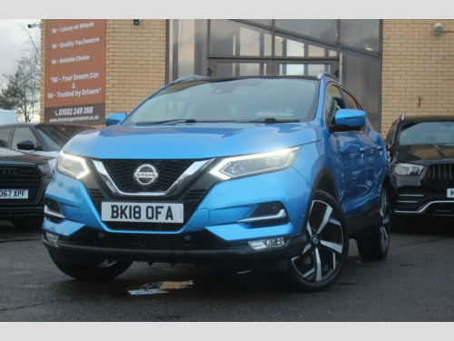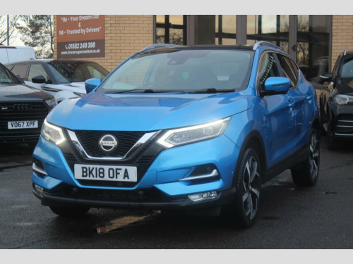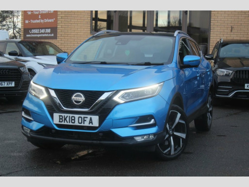 IM car supermarket is pleased to offer this very well Nissan Qashqai 1.2 DIG-T Tekna XTRON Euro 6 (s/s) 5dr in blue colour with only 54,000 miles on the clock. The car comes with 3 months warranty. MOT valid until 13 March 2026. service history info; 2020, 2021, 2022, 2023, 2024, and last service is done in 2025 at 46.8k miles. A high specification includes Full Leather Trim, Sat Nav, Pan Roof, Climate Control, Heated Seats, 360 Camera, Phone and Media BT Connection. 19in Alloy Wheels, 3 Height Adjustable Rear Headrests, 60-40 Split Rear Folding Seats, AM-FM Radio and CD Player, AUX Socket, Adaptive Front Lighting System, Advanced Drive Assist Display - 5in TFT , Ambient Lighting Centre Console, Anti Dazzle Rear View Mirror, Auto Wipers, Bluetooth, Body Coloured Door Mirrors, Body Coloured Handles, Boot Light, Bose 8 Speaker Premium Audio System, Carbon Graphite Dash Trim, Chrome Glass Surround, Chrome Interior Door Handles, Cruise Control with Speed Limiter, DAB Digital Radio, Daytime Running Lights Dip Function When, Driver Seat Height Adjustment, Driver-Passenger-Side and Curtain Airbag, Drivers Seat with Manual Lumbar Support, Dual Zone Climate Contr