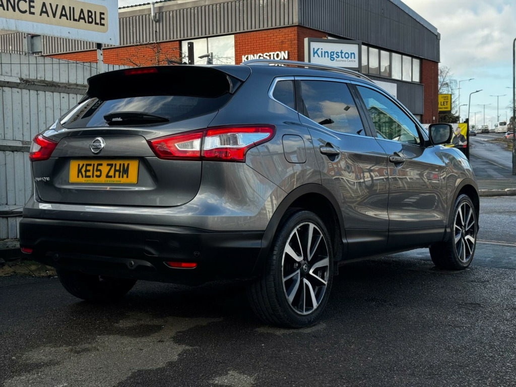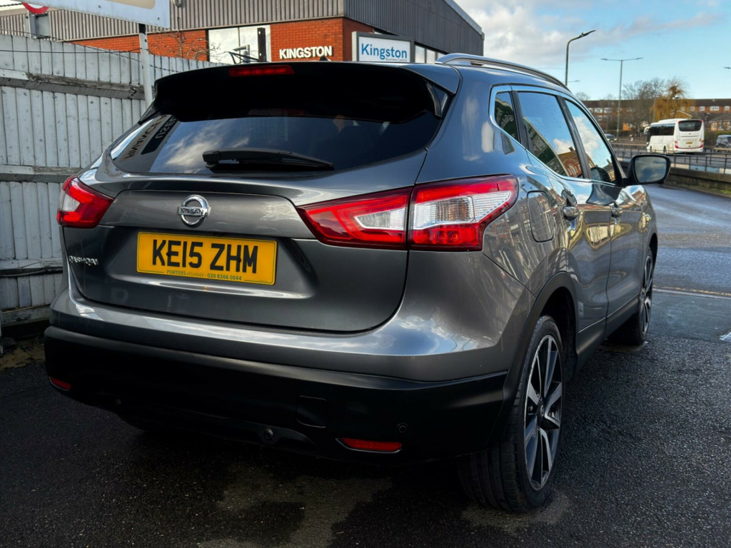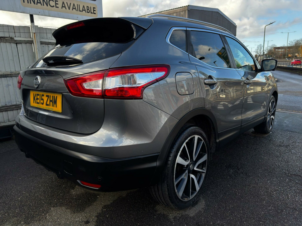 Discover this 2015 Nissan Qashqai DIG-T Tekna, boasting exceptionally low mileage for its age at just 66,000 miles. This well appointed model features a responsive 1.2L petrol engine and meets Euro 6 emissions standards. Inside, you'll appreciate the convenience of Intelligent Key with keyless entry, allowing you to unlock and start the car without reaching for your keys. The Tekna trim also includes dual zone climate control to keep everyone comfortable, and Bluetooth integration for seamless phone connectivity.This Qashqai stands out with its impressive fuel economy, achieving up to 49 miles per gallon, which is a significant advantage for your running costs. Its low CO2 emissions further contribute to its economical profile, and it sits in a low insurance group, making it an affordable choice to own and run. For easier manoeuvring, front parking sensors and assistance are included, while the Bi-LED headlights provide excellent visibility on all your journeys. in alloy wheels - 5-spoke, 6 speakers, 60-40 split rear folding seats, abs - anti lock brakes, aux-in socket, airbag - driver, airbag - passenger, airbags - curtain, airbags - side, alarm, armrest - rear, around view monitor - 360 bird-view, auto dimming rear view mirror, auto rain sensing wipers, black honeycomb front grille, blind spot warning, body coloured handles, brake assist, bumpers - body coloured, chrome glass surround, climate control - dual zone, colour side camera, cruise control with speed limiter, dab radio, door mirrors - body coloured, door mirrors - power fold and heated, driver attention alert, driver seat height adjustment, ebd - electronic brakeforce distribution, esp - electronic stability programme, electric speed-sensitive power steering, fatigue alert, front armrest, front collision avoidance, front fog lights, front and rear electric windows, head restraints - active front, head restraints - rear, headlights - auto, headlights - auto high-low beam, headlights - automatic levelling, headlights - bi-led, heated windscreen, hill start assist, isofix childseat anchorage points - middle row outer seats, immobiliser, intelligent key, intelligent park assist, interior ambient lighting, led daytime running lights, lane departure warning, leather steering wheel, luggage board system, lumbar support, moving object detection, parking sensor - front, pollen filter, puncture repair kit, push start-stop button, radio-cd, rear cupholder, rear door child locks, rear parking sensor, rear privacy glass, rear view camera, roof rails - satin, safety shield, satellite navigation - nissan connect, seats - drivers electric adjustment, seats - heated front, seats - passengers height adjustment, smart vision pack, speed-sensitive autolock function, steering wheel mounted audio controls, tpms - tyre pressure monitoring system, telephone - bluetooth integration, tilt and telescopic adjustable steering wheel, touch screen 7in, traction control, traffic sign recognition, trip computer, usb port, e-pkb - electric parking brake
