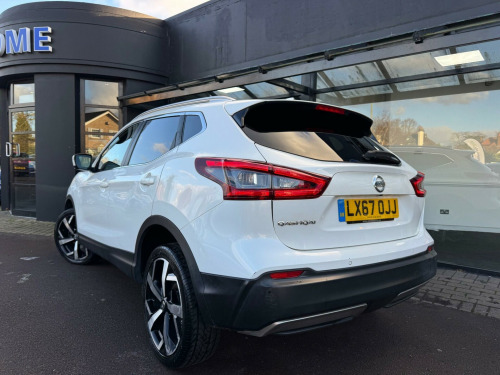 This 2017 Nissan Qashqai DIG-T Tekna is presented with a recent service completed in November 2025 at 81,300 miles, offering peace of mind for its next owner. This Euro 6 compliant model features a 1.2 litre petrol engine and comes with a 3 month warranty. Provenance is further supported by a 12 month MOT provided on purchase. Inside, you will find the Tekna trim level, which includes convenient features such as Intelligent Key with keyless entry, dual zone climate control air conditioning, and a heat pack with heated seats for added comfort. For enhanced safety and ease of driving, this Qashqai is equipped with rear parking sensors and the Safety Shield system, which includes blind spot assistance.This Nissan Qashqai DIG-T Tekna stands out with its impressive fuel economy, achieving up to 50 miles per gallon, and its low CO2 emissions, indicating a more environmentally friendly and cost effective driving experience compared to many other vehicles in its class. Furthermore, its low insurance group rating means that running costs are kept to a minimum, making it an attractive option for a wide range of drivers. in alloy wheels, part leather - graphite, 19in alloy wheels, 3 height adjustable rear headrests, 60-40 split rear folding seats, am-fm radio and cd player, aux socket, adaptive front lighting system, advanced drive assist display - 5in tft coloured screen, ambient lighting centre console, anti dazzle rear view mirror, auto wipers, bluetooth, body coloured door mirrors, body coloured handles, boot light, bose 8 speaker premium audio system, carbon graphite dash trim, chrome glass surround, chrome interior door handles, cruise control with speed limiter, dab digital radio, daytime running lights dip function when turn signal applied, driver seat height adjustment, driver-passenger-side and curtain airbags, drivers seat with manual lumbar support, dual zone climate control air conditioning, esp abs ebd and brake assist, electric auto-folding door mirrors, electric parking brake, electric speed-sensitive power steering, electrically adjustable drivers seat, executive pack, front 12v power sockets x2, front centre console and armrest, front seat belts with load limiter and pretensioners, front and rear door pockets with drink holders, front and rear electric windows, front and rear seatbelt warning, headlights - automatic levelling, headlights - high beam assist, headlights - led, heat pack, height adjustable front head restraints, height adjustable front seatbelts, hill start assist, isofix child seat anchoring points - rear x2, intelligent around view monitor, intelligent auto headlight, intelligent emergency braking, intelligent key, intelligent park assist, interior ambient lighting, led pack, led signature daytime running lights, led turn indicator on door mirrors, lane departure warning, leather d shaped steering wheel, leather gear lever, leather knee pad, luggage board system, matt silver roof rails, monoform front seats with plastic backboard, nissan anti theft system immobiliser, nissan chassis controls, nissanconnect evo touchscreen navigation and entertainment system, one touch 4 x auto windows with illuminated switches, outside temperature sensor, parcel shelf - stow function under luggage board, parking sensor - front, passenger airbag deactivation system, passengers seat with manual lumbar support, pollen filter, privacy glass, puncture repair kit, rear parking sensors, rear roof spoiler, rear view camera, rear wiper with reverse link, remote central locking, safety shield, seats - passengers height adjustment, selectable steering - normal or sport, shark fin antenna, smart vision pack, smartphone app integration, start push button, steering wheel mounted audio controls, synthetic leather wrapped door handle with contrasting stitching, tpms - tyre pressure monitoring system, tech pack, thatcham category 1 alarm, tilt and telescopic adjustable steering wheel, traffic sign recognition, trip computer, usb port, underbody vortex generators
