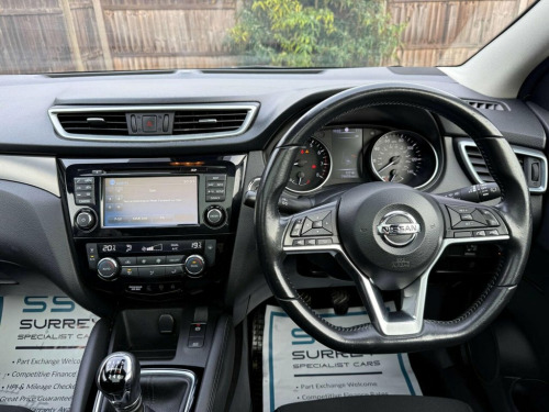 Introducing the stylish and versatile Nissan Qashqai 1.2 Qashqai N-Connecta DiG-T 5dr. This sleek vehicle, finished in a sophisticated Black, is sure to turn heads wherever you go. With only 2 previous owners, this Nissan Qashqai is in excellent condition and ready to hit the road with you behind the wheel. The N-Connecta trim level offers a range of premium features, making every journey a comfortable and enjoyable experience. Whether you're navigating city streets or cruising down the motorway, the Nissan Qashqai delivers a smooth and responsive drive. With its spacious interior, advanced technology, and modern design, this car is the perfect choice for those who demand both style and practicality. Don't miss out on the opportunity to own this fantastic Nissan Qashqai. Visit us today to take a test drive and experience the luxury for yourself. We are open 7 days a week, and prepare all of our cars to the highest standards. We have a Click & Collect option available, and can also arrange delivery on request. All cars are HPI clear and a full history report is provided with every car. We welcome any inspection and viewing is highly recommended. All cars are available with our AA warranty. Debit and credit card facilities are available and we offer competitive finance packages. If you have any questions or would like to view any of our cars give us a call or drop us a message on whatsapp 01483 363 144 to arrange an appointment with one of our team. We also offer full bes 18in Alloy Wheels - Bi-Colour, 3 Height Adjustable Rear Headrests, 6 Speakers, 60-40 Split Rear Folding Seats, AM-FM Radio and CD Player, AUX Socket, Advanced Drive Assist Display - 5in TFT , Ambient Lighting Centre Console, Anti Dazzle Rear View Mirror, Auto Wipers, AutoHold Function - Stand Still Assist, Bluetooth, Body Coloured Door Mirrors, Body Coloured Handles, Boot Light, Chrome Glass Surround, Chrome Interior Door Handles, Cruise Control with Speed Limiter, DAB Digital Radio, Daytime Running Lights Dip Function When, Driver Seat Height Adjustment, Driver-Passenger-Side and Curtain Airbag, Drivers Seat with Manual Lumbar Support, Dual Zone Climate Control Air Conditioni, ESP ABS EBD a