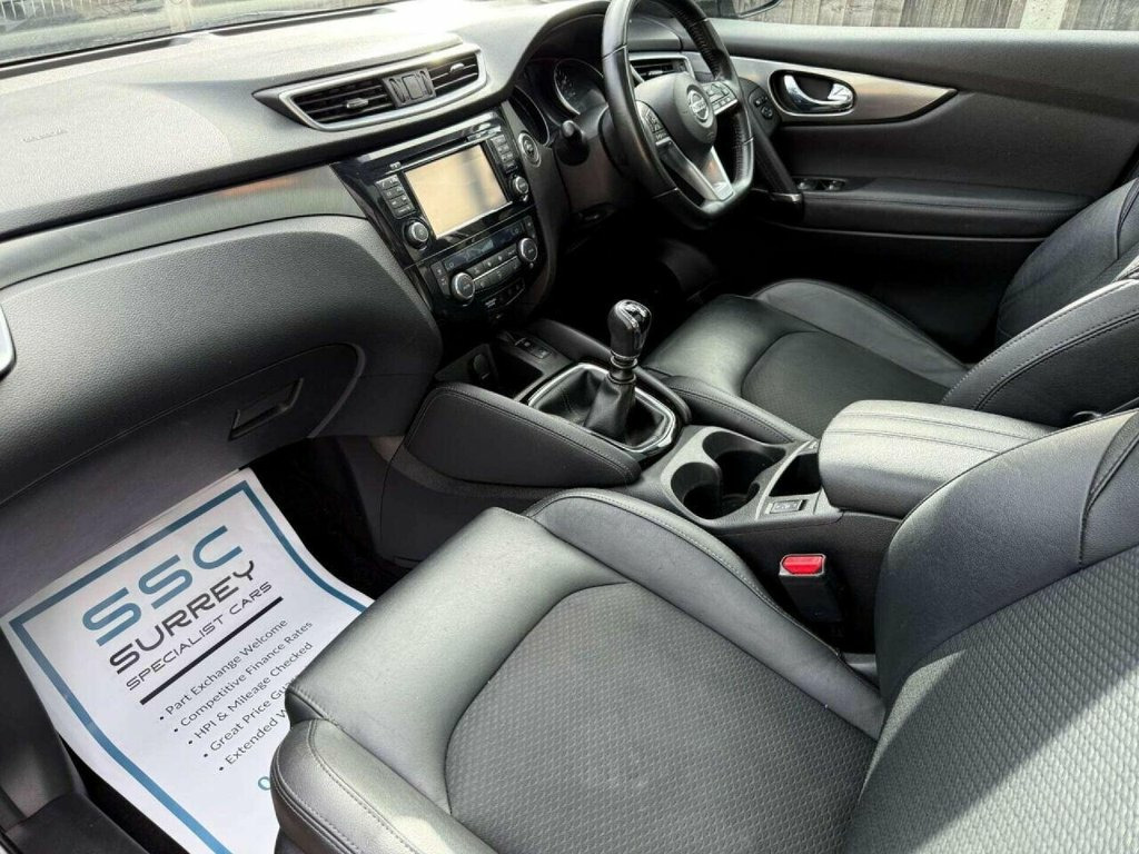 Surrey Specialist Cars are proud to present our lovely Nissan Qashqai Tekna DIG-T. This amazing car comes with Service History, finished in stunning metallic silver with half leather seats. The car will come with Long MOT so it will be ready to go. The 1.2L Petrol engine offers superb economy at over 50 MPG on combined cycle. Features Include Multifunction Steering Wheel, Trip Computer, Satellite Navigation, Heated Seats, Parking Camera, Panoramic Roof, Cruise Control, Speed Limiter, Stereo/Phone Control, FM/DAB Radio, Bluetooth Audio, USB Input, AUX Input, CD Player, Dual Zone Climate Control, 12V Charging Socket, Electronic Hand Brake, Auto Hold System, 6 Speed Manual Gearbox, Electric Windows, 19 Inch Alloy Wheels and two Remote Control Keys to name a few. We are open 7 days a week, and prepare all of our cars to the highest standards. We have a Click & Collect option available, and can also arrange delivery on request. All cars are HPI clear and a full history report is provided with every car. We welcome any inspection and viewing is highly recommended. All cars are available with our AA warranty starting from just ?150 for 3 months. Debit and credit card facilities are available and we offer competitive finance packages. If you have any questions or would like to view any of our cars give us a call or drop us a message on whatsapp 01483 363 144 to arrange an appointment with one of our team. We also offer full bespoke walkaround videos on request. We are always on the 19in Alloy Wheels, 3 Height Adjustable Rear Headrests, 60-40 Split Rear Folding Seats, AM-FM Radio and CD Player, AUX Socket, Adaptive Front Lighting System, Advanced Drive Assist Display - 5in TFT , Ambient Lighting Centre Console, Anti Dazzle Rear View Mirror, Auto Wipers, AutoHold Function - Stand Still Assist, Bluetooth, Body Coloured Door Mirrors, Body Coloured Handles, Boot Light, Bose 8 Speaker Premium Audio System, Carbon Graphite Dash Trim, Chrome Glass Surround, Chrome Interior Door Handles, Cruise Control with Speed Limiter, DAB Digital Radio, Daytime Running Lights Dip Function When, Driver Seat Height Adjustment, Driver-Passenger-Side and Curtain Airbag, Drivers Seat with Manual