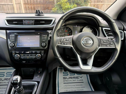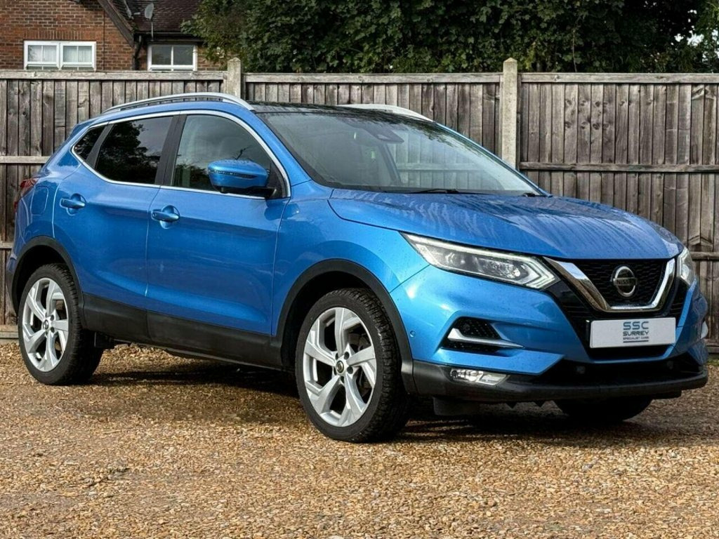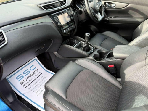 Surrey Specialist Cars are proud to present our lovely Nissan Qashqai Tekna DIG-T. This amazing car comes with Service History, finished in stunning metallic blue with half leather seats. The car has a Long MOT until July 2026 so it is ready to go. The 1.2L Petrol engine offers superb economy at over 50 MPG on combined cycle. Features Include Multifunction Steering Wheel, Trip Computer, Satellite Navigation, Heated Seats, Parking Camera, Panoramic Roof, Cruise Control, Speed Limiter, Stereo/Phone Control, FM/DAB Radio, Bluetooth Audio, USB Input, AUX Input, CD Player, Dual Zone Climate Control, 12V Charging Socket, Electronic Hand Brake, Auto Hold System, 6 Speed Manual Gearbox, Electric Windows, 19 Inch Alloy Wheels and two Remote Control Keys to name a few. We are open 7 days a week, and prepare all of our cars to the highest standards. We have a Click & Collect option available, and can also arrange delivery on request. All cars are HPI clear and a full history report is provided with every car. We welcome any inspection and viewing is highly recommended. All cars are available with our AA warranty starting from just ?150 for 3 months. Debit and credit card facilities are available and we offer competitive finance packages. If you have any questions or would like to view any of our cars give us a call or drop us a message on whatsapp 01483 363 144 to arrange an appointment with one of our team. We also offer full bespoke walkaround videos on request. We are always on th 19in Alloy Wheels, 3 Height Adjustable Rear Headrests, 60-40 Split Rear Folding Seats, AM-FM Radio and CD Player, AUX Socket, Adaptive Front Lighting System, Advanced Drive Assist Display - 5in TFT , Ambient Lighting Centre Console, Anti Dazzle Rear View Mirror, Auto Wipers, AutoHold Function - Stand Still Assist, Bluetooth, Body Coloured Door Mirrors, Body Coloured Handles, Boot Light, Bose 8 Speaker Premium Audio System, Carbon Graphite Dash Trim, Chrome Glass Surround, Chrome Interior Door Handles, Cruise Control with Speed Limiter, DAB Digital Radio, Daytime Running Lights Dip Function When, Driver Seat Height Adjustment, Driver-Passenger-Side and Curtain Airbag, Drivers Seat with Manual