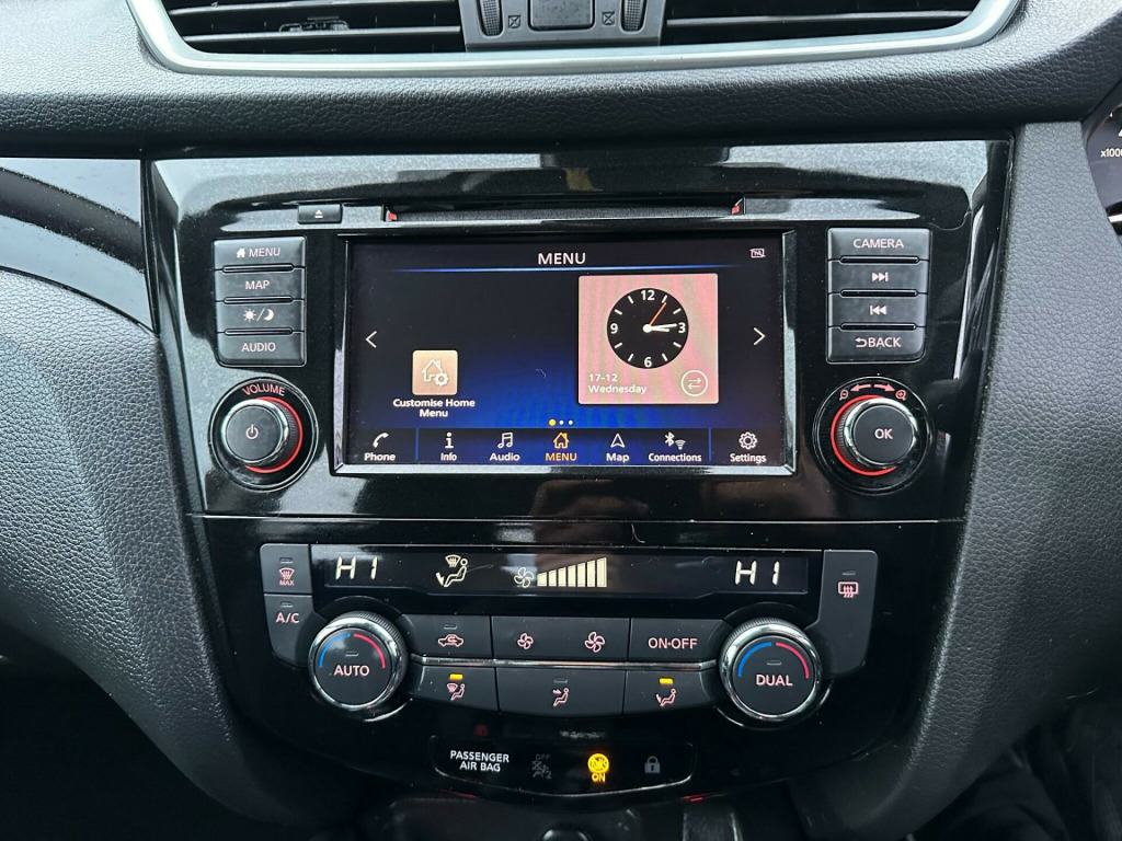 ON V CAR CAT S! This 2019 Nissan Qashqai DIG T Acenta Premium is a superb example of this popular model. Powered by an efficient 1.3 litre petrol engine, this Euro 6 compliant vehicle offers a refined driving experience. The Acenta Premium trim level ensures a host of desirable features are included as standard. You'll appreciate the convenience of the rear view camera with parking assistance, complemented by front and rear parking sensors as part of the Smart Vision Pack. Stay connected on the go with seamless Bluetooth integration, while the intelligent auto headlights and dual zone climate control air conditioning provide added comfort and ease.This Qashqai stands out with its low insurance group, making it an economical choice for many drivers. Furthermore, its low CO2 emissions indicate a more environmentally friendly performance compared to similar vehicles. These highlights, combined with the comprehensive feature set, make this Nissan Qashqai DIG T Acenta Premium a compelling option for those seeking a practical, comfortable, and cost effective family car. in alloy wheels, 3 height adjustable rear headrests, 6 speakers, 60-40 split rear folding seats, am-fm radio and cd player, aux socket, advanced drive assist display - 5in tft coloured screen, ambient lighting centre console, auto wipers, autohold function - stand still assist, bluetooth, body coloured door mirrors, body coloured handles, boot light, centre console storage and armrest, chrome glass surround, chrome interior door handles, cruise control with speed limiter, dab digital radio, daytime running lights dip function when turn signal applied, driver seat height adjustment, driver-passenger-side and curtain airbags, drivers seat with manual lumbar support, dual zone climate control air conditioning, esp abs ebd and brake assist, electric heated auto-folding door mirrors, electric parking brake, electric speed-sensitive power steering, front 12v power sockets x2, front and rear door pockets with drink holders, front and rear electric windows, front and rear seat belts with load limiter and pretensioners, front and rear seatbelt warning, halogen headlamps, height adjustable front head restraints, height adjustable front seatbelts, hill start assist, isofix child seat anchoring points - rear x2, intelligent auto headlight, interior ambient lighting, led signature daytime running lights, led turn indicator on door mirrors, leather d shaped steering wheel, leather gear lever, leather knee pad, luggage board system, nissan anti theft system immobiliser, nissan chassis controls, nissanconnect evo touchscreen navigation and entertainment system, one touch 4 x auto windows with illuminated switches, outside temperature sensor, parcel shelf - stow function under luggage board, passenger airbag deactivation system, passengers seat with manual lumbar support, piano black dash trim, pollen filter, puncture repair kit, rear roof spoiler, rear view camera, rear wiper with reverse link, remote central locking, seats - passengers height adjustment, selectable steering - normal or sport, shark fin antenna, smart vision pack, smartphone app integration, steering wheel mounted audio controls, tpms - tyre pressure monitoring system, thatcham category 1 alarm, tilt and telescopic adjustable steering wheel, trip computer, usb port, underbody vortex generators