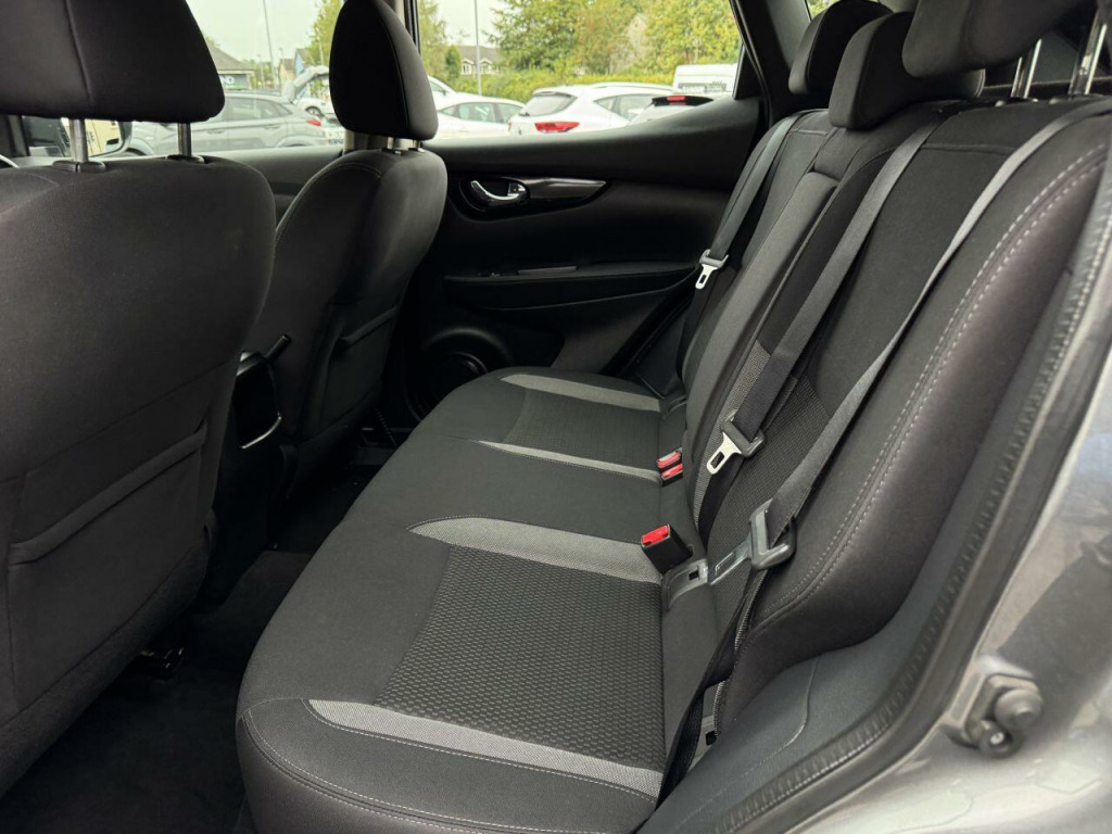 . 17in Alloy Wheels, 3 Height Adjustable Rear Headrests, 6 Airbags - Driver-Passenger-Side and Curtain Airbags, 6 Speakers, 60-40 Split Rear Folding Seats, Advanced Drive Assist Display - 5in TFT Coloured Screen, AM-FM Radio and CD Audio System, Ambient Lighting Centre Console, Anti Dazzle Rear View Mirror, Auto Wipers, AutoHold Function - Stand Still Assist, AUX Socket, Bluetooth, Body Coloured Door Mirrors, Body Coloured Handles, Boot Light, Centre Console Storage and Armrest, Chrome Glass Window Surround, Chrome Interior Door Handles, Cruise Control with Speed Limiter, DAB Digital Radio, Daytime Running Lights Dip Function When Turn Signal Applied, Driver Seat Manual Height Adjustment, Drivers Seat with Manual Lumbar Support, Dual Zone Climate Control, Electric Heated Auto-Folding Door Mirrors, Electric Parking Brake, Electric Speed-Sensitive Power Steering, ESP ABS EBD and Brake Assist, Front 12v Power Sockets x2, Front and Rear Door Pockets with Drink Holders, Front and Rear Electric Windows, Front and Rear Seat Belts with Load Limiter and Pretensioners, Front and Rear Seatbelt Warning, Halogen Headlamps, Headlights - High Beam Assist, Height Adjustable Front Head Restraints, Height Adjustable Front Seatbelts, Hill Start Assist, Intelligent Auto Headlight, Intelligent Emergency Braking with Pedestrian Recognition, Interior Ambient Lighting, ISOFIX Restraints on Outer Rear Seats, Lane Departure Warning, Leather D Shaped Steering Wheel, Leather Gear Lever, Leather Knee Pad, LED Signature Daytime Running Lights, LED Turn Indicator on Door Mirrors, Nissan Anti Theft System Immobiliser, Nissan Chassis Controls, Nissan Connect with Apple Carplay - Android Auto and TomTom Connected Services, One Touch - Illuminated Electric Window Controls, One Touch 4 x Auto Windows with Illuminated Switches, Outside Temperature Sensor, Parcel Shelf - Stow Function Under Luggage Board, Parking Sensor - Front, Passenger Airbag Deactivation System, Passenger Seat Manual Height Adjustment, Passengers Seat with Manual Lumbar Support, Piano Black Dash Trim, Pollen Filter, Rear Parking Sensors, Rear Roof Spoiler, Rear View Camera, Rear Wiper with Reverse Link, Remote Central Locking, Selectable Steering - Normal or Sport, Shark Fin Antenna, Thatcham Category 1 Alarm, Tilt and Telescopic Adjustable Steering Wheel, TPMS - Tyre Pressure Monitoring System, Traffic Sign Recognition, Trip Computer - Combimeter, Tyre Puncture Repair Kit, Underbody Vortex Generators, USB Port.