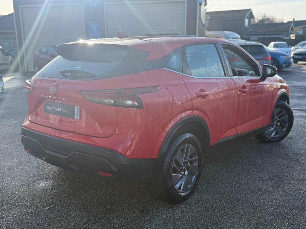 This 2022 Nissan Qashqai DIG-T Acenta Premium is a superb example, having had only one owner since new. This Euro 6 compliant 1.3 litre petrol hybrid model offers a refined driving experience, perfect for navigating both city streets and longer journeys. Inside, you'll find a host of convenient features designed to enhance your drive, including Bluetooth with Audio Streaming for seamless music and call management, and wired Apple CarPlay to keep your favourite apps accessible. Parking is made simpler with rear parking sensors and a rear view camera, providing excellent assistance when manoeuvring. The Acenta Premium trim level ensures a comfortable and well equipped cabin. This Qashqai also benefits from a low insurance group, indicating that running costs are likely to be more affordable compared to similar vehicles, making it an attractive choice for many drivers. Tyre Puncture Repair Kit, Flame Red, 17in Alloy Wheels, AM-FM Audio System with DAB, Bluetooth with Audio Streaming, Engine Start Button, Rear View Camera, Rear Parking Sensors, Wired Apple CarPlay