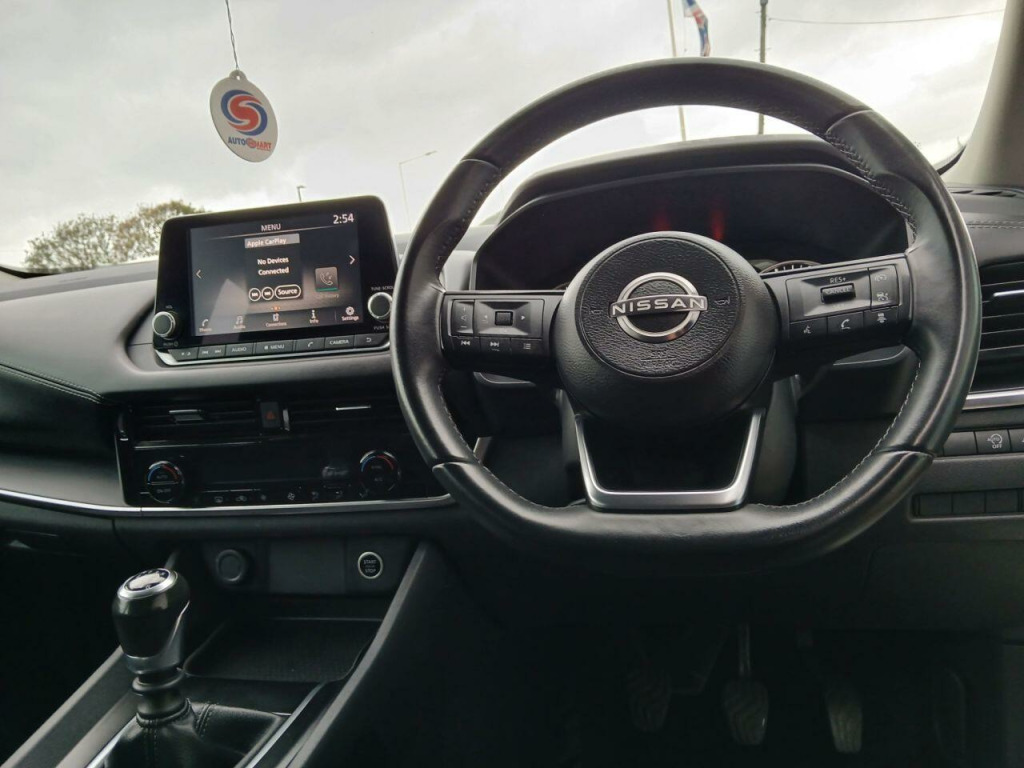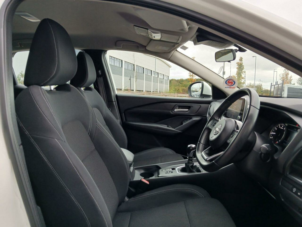 . 12v Power Sockets in Dash and Luggage Space, 17in Alloy Wheels, 3 Rear Headrests, 3 x 3-Point Rear Seatbelts, 6 Speakers, 60-40 Split Rear Folding Seats, 7in High Definition Full Colour TFT Screen Combimeter, ABS with EBD and Brake Assist, AM-FM Audio System with DAB, Active Brake Limited Slip, Auto Dimming Rear View Mirror, Auto Hold Function, Auto Rear Wiper When Reversing, Automatic Dual Zone Climate Control with Pollen Filter, Blind Spot Warning, Bluetooth with Audio Streaming, Body Coloured Handles, Body Coloured Mirror Caps, Body Side Moulding, Chrome Interior Door Handles, Chrome Side Window Finisher, Curtain Airbags, Door Mirror - Electrically Adjustable - Heated - Auto Folding with LED Turn Indicator, Drive Modes - Sport-Normal-Eco, Driver Seat - 2-way Electric Lumbar, Driver and Passenger Airbags, Driver and Passenger Sun Visor with Illuminated Vanity Mirror, Driver-Passenger and Rear Seatbelt Reminder, Electric Parking Brake, Electric Speed-Sensitive Power Steering, Emergency and Breakdown Call, Engine Immobiliser, Engine Start Button, Follow Me Home Headlights, Front Centre Console and Armrest, Front Cupholders x2, Front Door with Bottle Holders, Front Seat Belts with Load Limiter and Pretensioners, Front Seatbelt Height Adjustment, Front USB Connections - Type A and Type C, Headlights - High Beam Assist, Headlights - LED, Height Adjustable Driver Seat, Height Adjustable Front Headrests, Hill Start Assist, Intelligent Auto Headlight, Intelligent Blind Spot Intervention, Intelligent Cruise Control, Intelligent Driver Alertness, Intelligent Forward Collision Warning, Intelligent Front Emergency Braking with Pedestrian Recognition and Cyclist Recognition and Junction Assist, Intelligent Key, Intelligent Lane Intervention, Intelligent Rear Automatic Braking, LED Daytime Running Lights, LED Rear Lights, Lane Departure Prevention, Lane Departure Warning, Leather Shift Knob, Luggage Space Lighting, Maximum Speed Limiter, Multifunctional Steering Wheel, Nissan Connect 8in Touchscreen Infotainment System, One Touch Front and Rear Electric Windows with Remote Opening-Closing, Partially Body Coloured Bumpers, Passenger Seat Back Pockets, Puncture Repair Kit, Rain Sensing Wipers, Rear Cross Traffic Alert, Rear Door Child Locks, Rear Door with Bottle Holders, Rear Parking Sensors, Rear Reversing Light - Bulb, Rear Roof Spoiler, Rear Seat Armrest with 2 Cupholders, Rear View Camera, Remote Central Locking with Deadlocking, Seats - Passengers Height Adjustment, Shark Fin Antenna, Splash Free Wipers, Synthetic Leather Steering Wheel., TPMS - Tyre Pressure Monitoring System, Thatcham Alarm System, Three Blink Turn Signal, Tilt and Telescopic Adjustable Steering Wheel, Traffic Sign Recognition, Trip Computer, Two Rear ISOFIX Child Seat Anchorage Point with Top Tether, VDC - Vehicle Dynamic Control, Wired Android Auto, Wired Apple CarPlay, Arctic White.