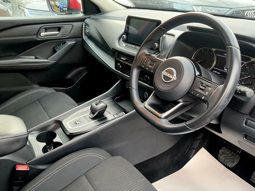 This 2022 Nissan Qashqai DIG-T Acenta Premium boasts a clear vehicle history and has had only one owner from new. This Euro 6 compliant 1.3L Petrol Hybrid is presented with a comprehensive service history, with its last service recorded at 27,300 miles, and comes with a 6 month warranty for your peace of mind. The Acenta Premium trim level offers a refined driving experience, enhanced by features such as rear parking sensors and a rear view camera to aid manoeuvring, alongside automatic dual zone climate control with a pollen filter to ensure a comfortable cabin environment. You can also enjoy seamless connectivity with Bluetooth and audio streaming, while the dusk sensor automatically activates the headlights, making night driving simpler. The Qashqai is designed to impress, offering a 0-62mph acceleration time of just 9.2 seconds, demonstrating its responsive performance. This particular model stands out with its generous boot space, providing ample room for luggage or shopping, which is a significant advantage over many other vehicles in its class. Furthermore, its placement in a low insurance group makes it an economical choice for many drivers, further enhancing its appeal as a practical and well equipped family car.