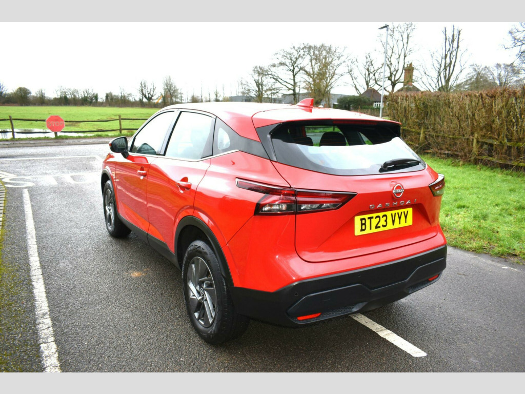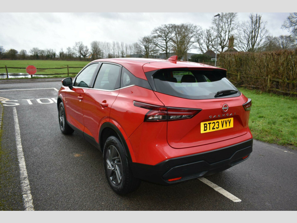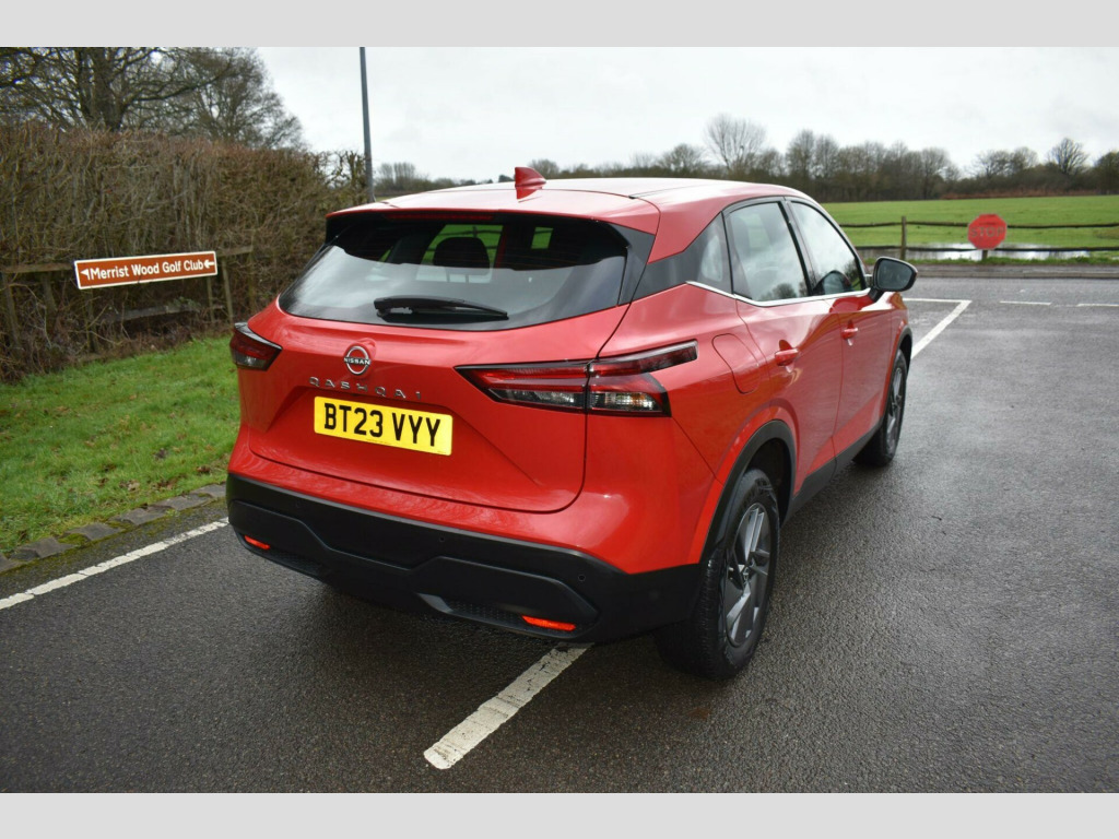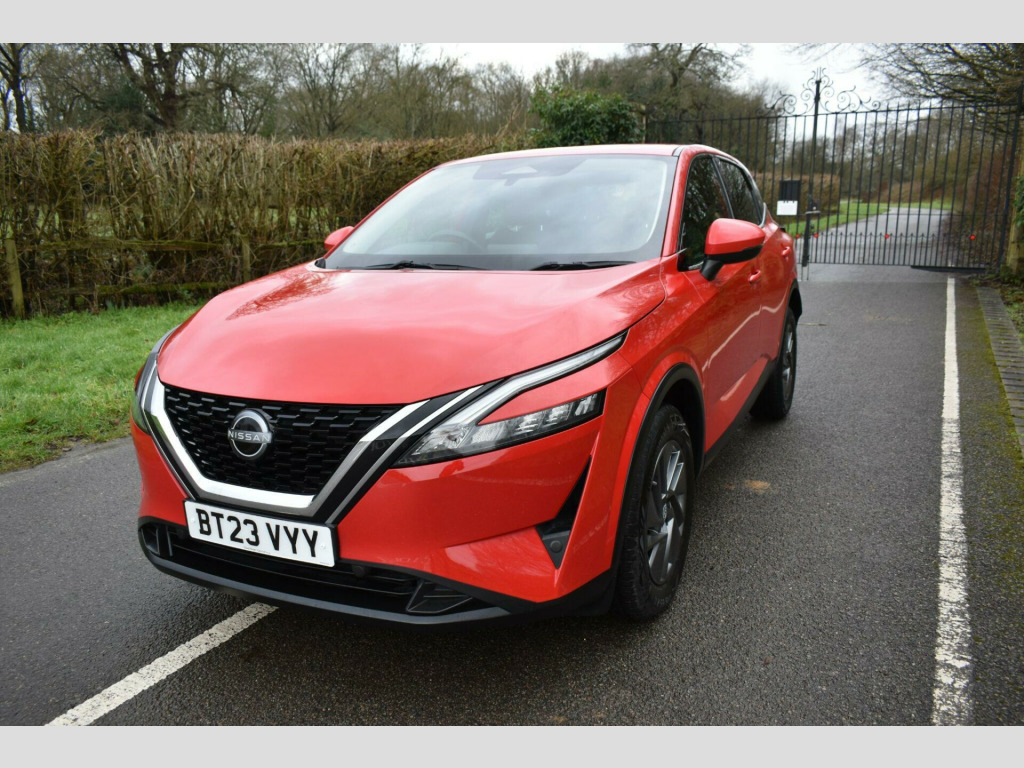 Finished in Red with cloth interior, one owner from new, rear parking sensors, 17'' alloy wheels, electric folding mirrors, LDW - lane departure warning, eco start/stop function, keyless start, keyless entry, air con, DAB radio, Bluetooth, reverse camera with guidelines, cruise control, paddle shifts, HPI clear, finance available with this vehicle.... for further information please contact us on 01483 236417. This 2023 Nissan Qashqai DIG-T Acenta Premium is a superb example, having had only one owner since new. This stylish SUV boasts a 1.3 litre petrol hybrid engine, meeting Euro 6 emissions standards. It comes equipped with a suite of intelligent features designed for convenience and safety, including rear parking sensors and a rear view camera to aid with parking, alongside intelligent blind spot intervention to help you navigate traffic safely. You'll also appreciate the keyless entry provided by the intelligent key, and the seamless integration of your Android device with wired Android Auto.The Qashqai Acenta Premium offers practical advantages that set it apart. Its generous boot space makes it ideal for families or those who need ample room for luggage and shopping. Furthermore, its placement in a low insurance group means that running costs are kept down, offering excellent value. These highlights demonstrate how this particular Qashqai provides a more economical and user friendly experience compared to many other vehicles in its class. v power sockets in dash and luggage space, 17in alloy wheels, 3 rear headrests, 3 x 3-point rear seatbelts, 6 speakers, 60-40 split rear folding seats, 7in high definition full colour tft screen combimeter, abs with ebd and brake assist, am-fm audio system with dab, active brake limited slip, auto dimming rear view mirror, auto hold function, auto rear wiper when reversing, automatic dual zone climate control with pollen filter, blind spot warning, bluetooth with audio streaming, body coloured handles, body coloured mirror caps, body side moulding, chrome interior door handles, chrome side window finisher, curtain airbags, door mirror - electrically adjustable - heated - auto folding with led turn indicator, drive modes - sport-normal-eco, driver seat - 2-way electric lumbar, driver and passenger airbags, driver and passenger sun visor with illuminated vanity mirror, driver-passenger and rear seatbelt reminder, electric parking brake, electric speed-sensitive power steering, emergency and breakdown call, engine immobiliser, engine start button, follow me home headlights, front centre console and armrest, front cupholders x2, front door with bottle holders, front seat belts with load limiter and pretensioners, front seatbelt height adjustment, front usb connections - type a and type c, headlights - high beam assist, headlights - led, height adjustable driver seat, height adjustable front headrests, hill start assist, intelligent auto headlight, intelligent blind spot intervention, intelligent cruise control, intelligent driver alertness, intelligent forward collision warning, intelligent front emergency braking with pedestrian recognition and cyclist recognition and junction assist, intelligent key, intelligent lane intervention, intelligent rear automatic braking, led daytime running lights, led rear lights, lane departure prevention, lane departure warning, luggage space lighting, maximum speed limiter, multifunctional steering wheel, nissan connect 8in touchscreen infotainment system, one touch front and rear electric windows with remote opening-closing, partially body coloured bumpers, passenger seat back pockets, puncture repair kit, rain sensing wipers, rear cross traffic alert, rear door child locks, rear door with bottle holders, rear parking sensors, rear reversing light - bulb, rear roof spoiler, rear seat armrest with 2 cupholders, rear view camera, remote central locking with deadlocking, seats - passengers height adjustment, shark fin antenna, splash free wipers, steering wheel mounted gearshift paddles, synthetic leather steering wheel., tpms - tyre pressure monitoring system, thatcham alarm system, three blink turn signal, tilt and telescopic adjustable steering wheel, traffic sign recognition, trip computer, two rear isofix child seat anchorage point with top tether, vdc - vehicle dynamic control, wired android auto, wired apple carplay