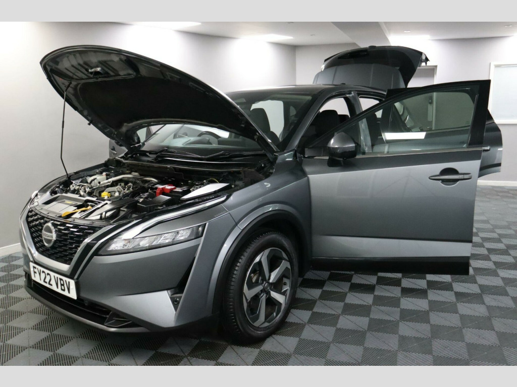 FY22VBV. Nissan Qashqai 1.3 DIG-T MHEV N-Connecta with Full Service History has been one of the UK’s most successful cars. Designed to give the higher driving position and space of an SUV without the bulk, this version suits families, commuters, and anyone wanting more comfort and practicality than a hatchback offers.The Mild Hybrid system provides extra power when needed and improves fuel economy without needing to plug in. The drive feels smooth and controlled, whether around town or on the motorway.Inside feels modern and well thought out. The 12.3 Inch Nissan Connect Touchscreen includes Navigation, DAB Radio, Bluetooth with Audio Streaming, and Wireless Apple CarPlay. A Wireless Charging Pad and 12V Power Sockets in the Dash and Luggage Area add convenience, while Automatic Dual Zone Climate Control with Pollen Filter keeps everyone comfortable.Front and Rear Parking Sensors, a Rear View Camera, and the Intelligent Around View Monitor make parking straightforward. Intelligent Blind Spot Intervention, Lane Departure Warning, and Forward Collision Warning add reassurance on every journey. Drive Modes allow a choice between Sport, Normal, and Eco, and the Electric Parking Brake with Auto Hold helps in traffic.A proven favourite for UK drivers, Qashqai continues to offer space, comfort, and technology that make everyday driving more enjoyable.This vehicle has just been serviced and comes with a Full Service History, featuring 5 stamps in the service book. This vehicle also has a full 12-month MOT with no advisories, a clean HPI report and a National Mileage Register Check.With a fantastic list of specifications, this could be the perfect car for you! While we use reliable third-party data, some details may vary. We recommend double-checking any specific features you're particularly interested in. We're happy to help verify this for you on request. Please note features such as Apple Carplay may require a subscription. If you have any questions please feel free to contact us ☎️ 0113 257 00 00.. NissanConnect Navigation, 360 CAMERA, Cruise Control and Speed Limiter, Front and Rear Parking Sensors, Rear View Camera, Wireless Charging Pad, Automatic Dual Zone Climate Control with Pollen Filter, Nissan Connect 12.3in Touchscreen Infotainment System, Intelligent Around View Monitor, Bluetooth with Audio Streaming, Intelligent Blind Spot Intervention, Drive Modes - Sport-Normal-Eco, Wireless Apple CarPlay, 12v Power Sockets in Dash and Luggage Space, Lane Departure Warning, Emergency and Breakdown Call, Intelligent Forward Collision Warning, Door Mirror - Electrically Adjustable - Heated - Auto Folding with LED Turn Indicator, AM-FM Audio System with DAB, Hill Start Assist, Auto Hold Function, Electric Parking Brake, Auto Dimming Rear View Mirror, 18in Alloy Wheels - Diamond Cut, Two Rear ISOFIX Child Seat Anchorage Point with Top Tether, Engine Start Button, Monoform Cloth - Charcoal. Full service history
