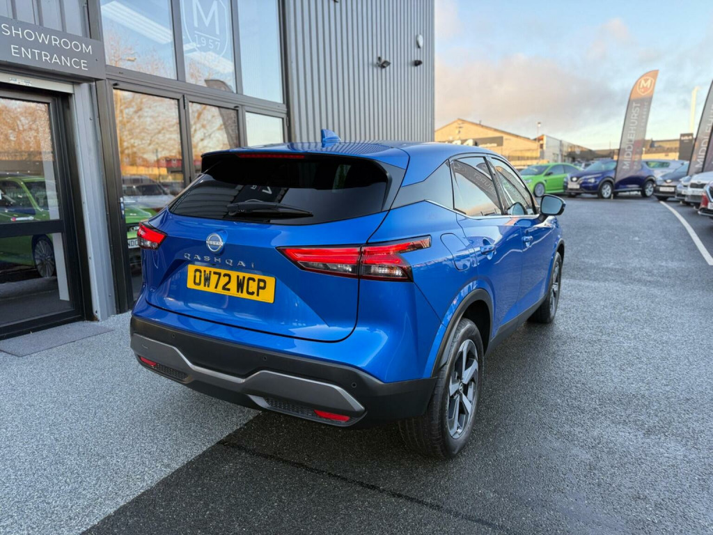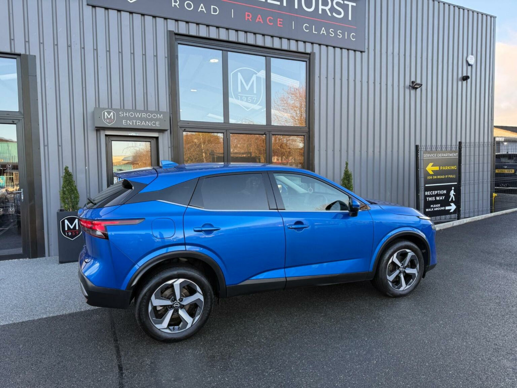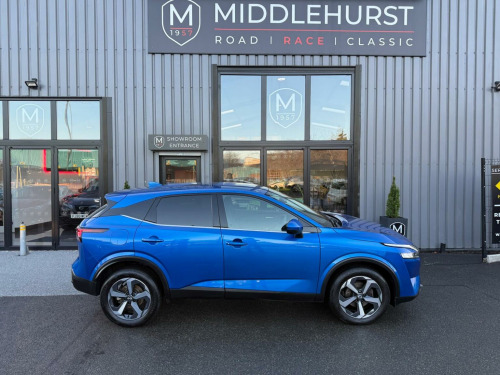 Middlehurst Road Race & Classic present this 2023/72 plate Nissan Qashqai 1.3 DIG-T MHEV N-Connecta 5dr finished in Magnetic Blue metallic with charcoal cloth interior. The N-Connecta model has a fantastic level of specification which includes some of the following features: 12.3 inch digital infotainment screen, built in satellite navigation, wireless Android Auto/Apple CarPlay, keyless entry, keyless start, 18 diamond cut alloy wheels, cruise control, 360 degrees parking camera, front & rear parking sensors, dual zone climate control and much more. It was first registered 16/01/2023 and has covered only 11,424 miles from new by its 2 registered keepers, with full Nissan service history. (Nissan Motor Company + 1 private owner). Previously serviced by Nissan in January 2024 at 6,310 miles and January 2025 at 8,520 miles, Supplied serviced by us with 12 months MOT (first one now due) and 6 months warranty
