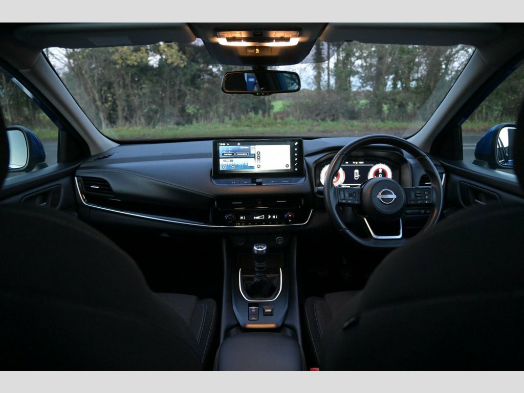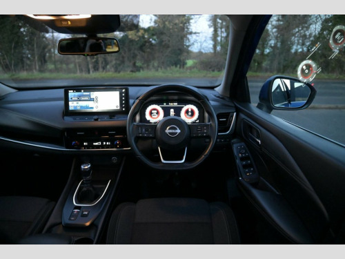 Prestige Car Supermarket in York presents this highly connected and efficient 2022 Nissan Qashqai 1.3 DIG-T MHEV N-Connecta SUV. Finished in the optional Magnetic Blue metallic paintwork, this five-door mild-hybrid petrol model delivers 140 horsepower through a manual transmission and is Euro 6 compliant. The well-equipped N-Connecta specification includes 18in Diamond Cut Alloy Wheels, a Synthetic Leather Multifunctional Steering Wheel, and the optional Glass Roof Pack. The cabin features Monoform Cloth in Charcoal, Automatic Dual Zone Climate Control, and Privacy Glass. Technology is cutting-edge, featuring the Nissan Connect 12.3in Touchscreen Infotainment System, Full Digital 12.3in TFT Digital Combimeter, NissanConnect Navigation with TomTom Live Traffic and Google Services, Wireless Apple CarPlay, and Wired Android Auto. Driver assistance and safety are comprehensive, including the Intelligent Around View Monitor, Intelligent Cruise Control, Intelligent Front Emergency Braking with Pedestrian and Cyclist Recognition, Intelligent Lane Intervention, Blind Spot Warning, Rear Cross Traffic Alert, and Front and Rear Parking Sensors, ensuring a secure, connected, and confidence-inspiring driving experience. Glass Roof Pack, Monoform Cloth - Charcoal, Magnetic Blue, 12v Power Sockets in Dash and Luggage Sp, 18in Alloy Wheels - Diamond Cut, 3 Rear Headrests, 3 x 3-Point Rear Seatbelts, 6 Speakers, 60-40 Split Rear Folding Seats, ABS with EBD and Brake Assist, AM-FM Audio System with DAB, Active Brake Limited Slip, Auto Dimming Rear View Mirror, Auto Hold Function, Auto Rear Wiper When Reversing, Automatic Dual Zone Climate Control with, Blind Spot Warning, Bluetooth with Audio Streaming, Body Coloured Handles, Body Coloured Mirror Caps, Body Side Moulding, Chrome Interior Door Handles, Chrome Side Window Finisher, Curtain Airbags, Door Mirror - Electrically Adjustable - , Drive Modes - Sport-Norm