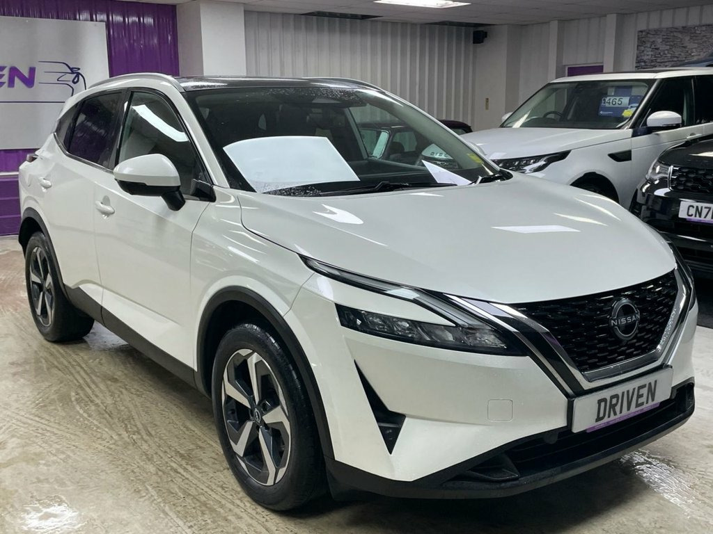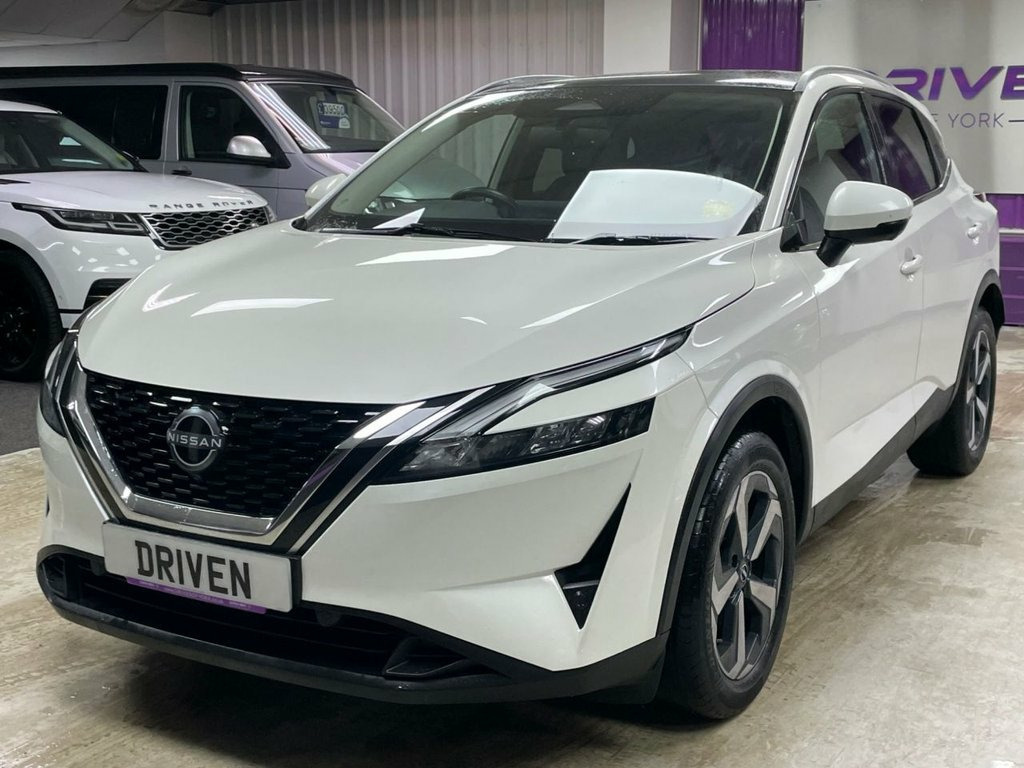 Driven Of York Are Proud To Present This 1 Owner From New 2022 72 Nissan Qashqai 1.3 DIG-T N-Connecta MHEV Finished In Arctic White With Contrasting Black Cloth Interior. This Stunning Example Features 18" Alloy Wheels, Front And Rear Parking Sensors With Reverse And 360 Camera System, Privacy Glass, Automatic LED Headlights With Daytime Running, A Full Panoramic Glass Roof, Air Conditioning With Dual Zone Climate Control, SAT NAV, Bluetooth, USB And USBC Connectivity, Alexa, Android Auto And Apple Carplay, FM/DAB Radio, FULL DIGITAL DASH, Adaptive Cruise Control With Limiter, Multifunction Steering Wheel, 6 Speed Manual Gearbox, Adjustable Effort Steering, Blind Spot Monitoring And Driver Attention Alert. Reserve Now For Just £149! Glass Roof Pack, Monoform Cloth - Charcoal, Arctic White, 12v Power Sockets in Dash and Luggage Sp, 18in Alloy Wheels - Diamond Cut, 3 Rear Headrests, 3 x 3-Point Rear Seatbelts, 6 Speakers, 60-40 Split Rear Folding Seats, ABS with EBD and Brake Assist, AM-FM Audio System with DAB, Active Brake Limited Slip, Auto Dimming Rear View Mirror, Auto Hold Function, Auto Rear Wiper When Reversing, Automatic Dual Zone Climate Control with, Blind Spot Warning, Bluetooth with Audio Streaming, Body Coloured Handles, Body Coloured Mirror Caps, Body Side Moulding, Chrome Interior Door Handles, Chrome Side Window Finisher, Curtain Airbags, Door Mirror - Electrically Adjustable - , Drive Modes - Sport-Norma