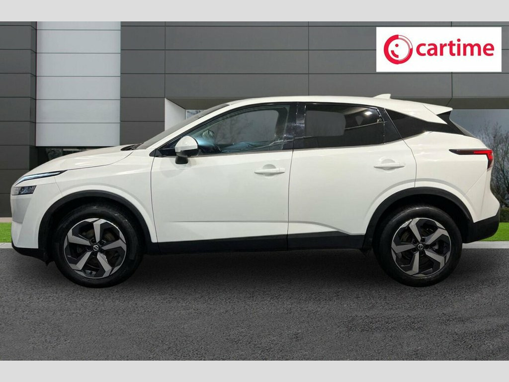 This 2021 Nissan Qashqai DIG-T N Connecta has been cherished by just one owner since new, offering you peace of mind. This Euro 6 compliant model features a 1.3L Petrol Hybrid engine and boasts an MOT valid until July 2026. Inside, you'll find convenient features such as Bluetooth with Audio Streaming, Wireless Apple CarPlay, and Intelligent Auto Headlights. For added safety and ease of use, it includes Blind Spot Warning and Intelligent Key for keyless entry. The Qashqai N Connecta stands out with its impressive acceleration, reaching 0-60mph in just 9.2 seconds, demonstrating its responsive performance. Its low insurance group rating indicates that running costs are kept competitive compared to similar vehicles. Furthermore, the generous boot space ensures practicality for all your needs, making this Nissan Qashqai a well rounded choice. 12v Power Sockets in Dash and Luggage Sp, 18in Alloy Wheels - Diamond Cut, 3 Rear Headrests, 3 x 3-Point Rear Seatbelts, 4 Folding Assist Grip Plus 2 Coat Hooks , 6 Luggage Hooks - 4 floor - 2 Side, 6 Speakers, 60-40 Split Rear Folding Seats, 7in High Definition Full Colour TFT Scre, ABS with EBD and Brake Assist, Active Brake Limited Slip, AM-FM Audio System with DAB, Ambient Lighting Centre Console, Android Auto, Arctic White, Auto Dimming Rear View Mirror, Auto Hold Function, Auto Rear Wiper When Reversing, Automatic Dual Zone Climate Control with, Blind Spot Warning, Bluetooth with Audio Streaming, Body Coloured Handles, Body Coloured Mirror Caps, Body Side Moulding, Capless Fuel Filler