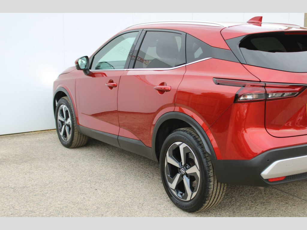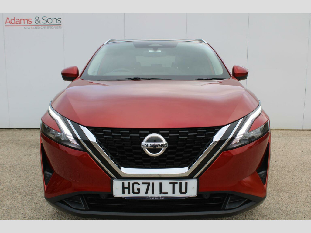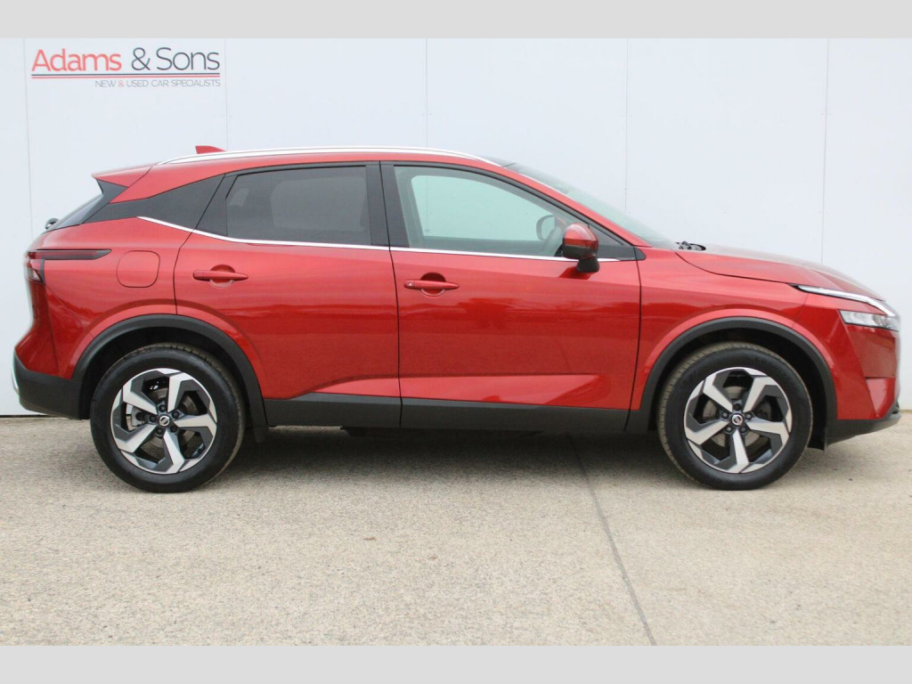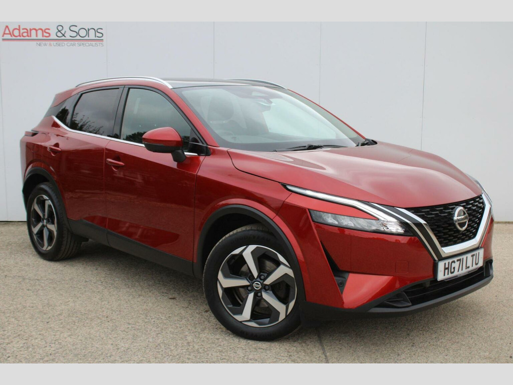Fantastic condition throughout of this super low mileage 2022 (22 plate registered) Nissan Qashqai 1.3 DIG-T N-Connecta automatic, finished in striking Fuji Sunset Red Metallic against grey cloth interior. This latest J12 generation, one owner from new Qashqai benefits from retaining both remote keys and original book packs matched to a full Nissan main dealer service history (as pictured). Impressive specification with Satellite navigation, glass roof pack, audio input function with bluetooth streaming, Andriod Auto with Apple Carplay, lane assist, 360* surround parking camera with parking sensors, DAB radio and automatic wipers/lights. Further specification detailed in the equipment tab. Super looking practical medium sized SUV with great reliability and practicality to boot! Dont miss out. Low rate HP/PCP funding plans and extended warranties available upon request. Here at Adams and sons we do not charge any dealer administration fees and pride ourselves on paramount customer service. All our cars are price checked daily to ensure you get the right car at the right price- Established business since 1932. Adams & Sons make every effort to ensure vehicle details on this listing are correct. However, the vehicle specifications can sometimes differ from that shown. Please satisfy yourself that a vehicle has a specific feature that is important to you before purchasing. Our staff will be happy to assist you.