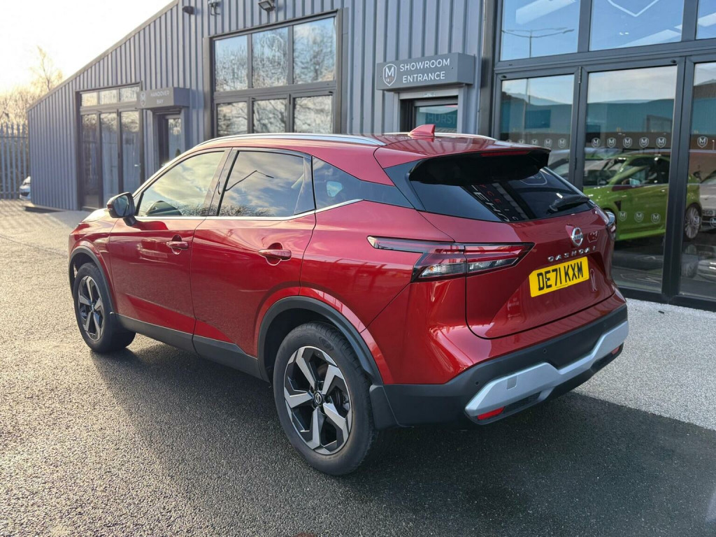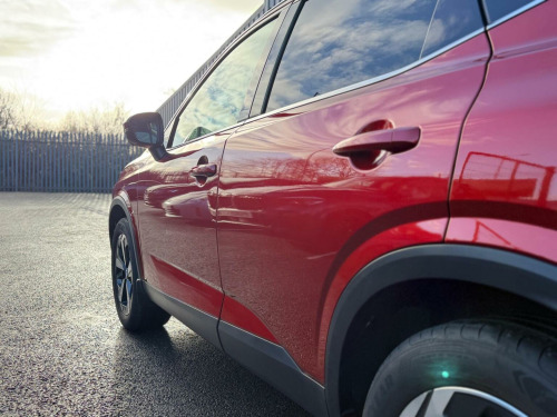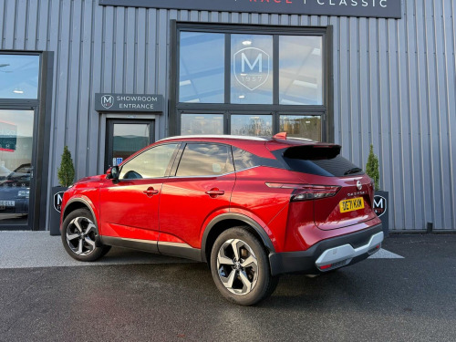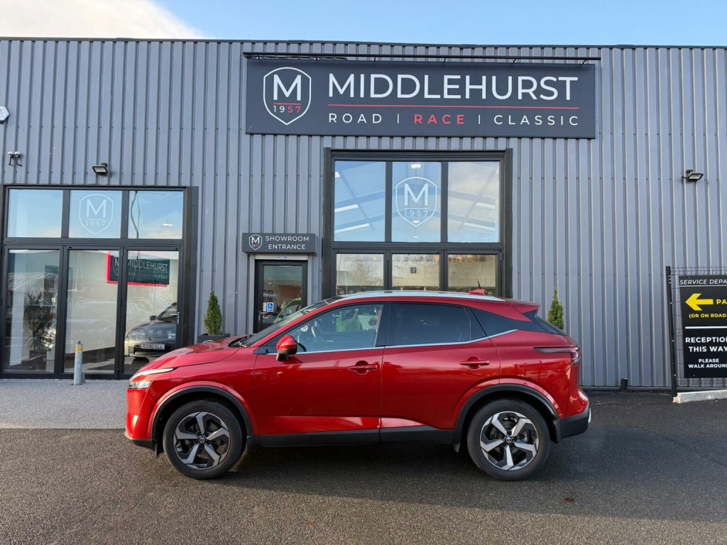 REDUCED - WAS £18,499 - NOW £17,999 - SAVE £500, Middlehurst Road Race & Classic present this 2021/71 plate Nissan Qashqai 1.3 DIG-T Mild Hybrid N-Connecta Automatic (Glass Roof Pack) finished in metallic Fuji Sunset Red. It was first registered 30/09/2021 and has covered only 15,824 miles from new by its 2 local private owners. The N-Connecta model has a great level of specification which includes some of the following features: Built in satellite navigation, around view 360 parking camera, wireless Apple CarPlay, panoramic glass roof, keyless entry, keyless start, electrically folding mirrors and much more. (Full specification below). Serviced on 03/10/2022 at 2,986 miles by Middlehurst Garage (Nissan), 24/11/2023 at 6,080 miles by Middlehurst Road Race & Classic and 05/02/2025 at 11,702 miles by Middlehurst Road Race & Classic. Supplied serviced by us with 12 months MOT and 6 months warranty.