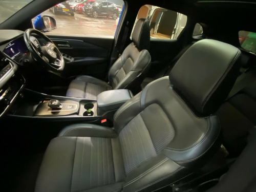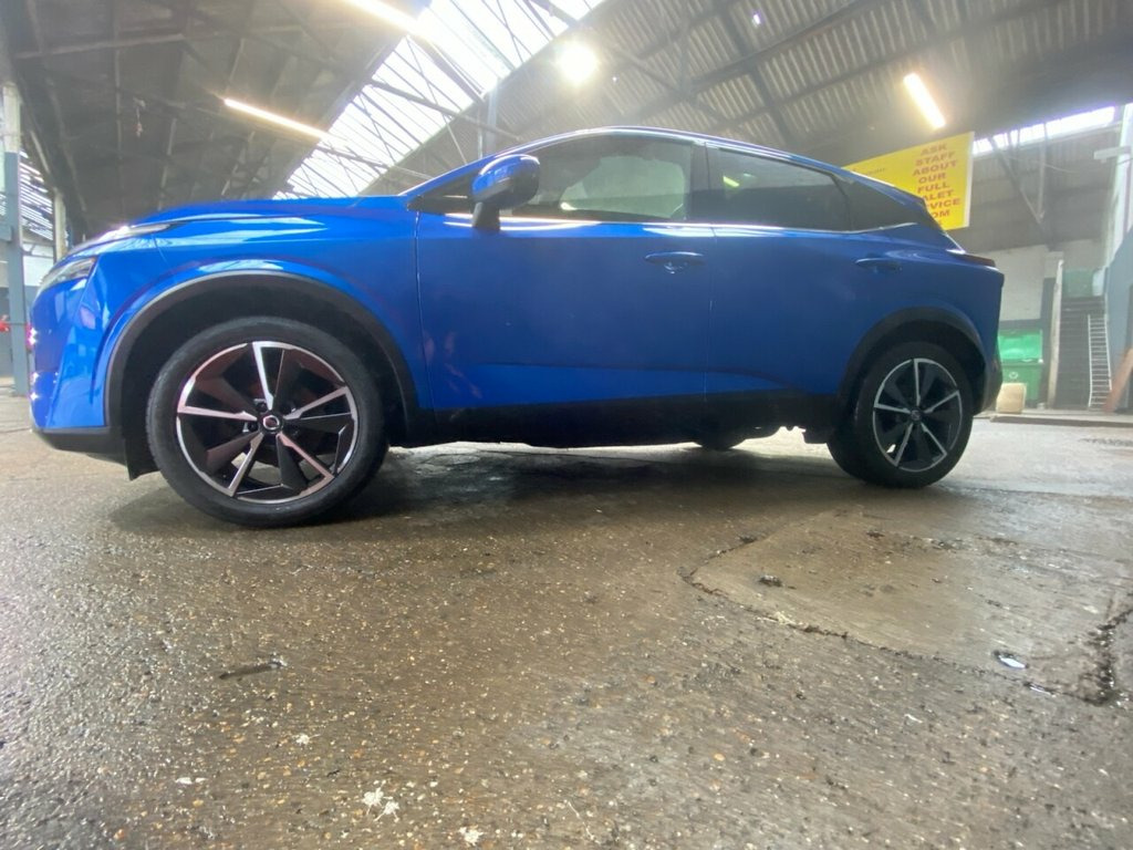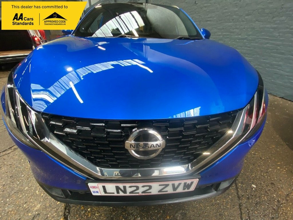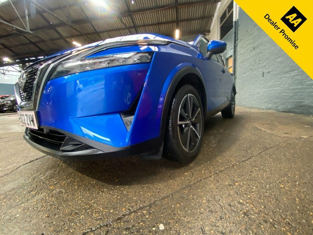 This 2022 Nissan Qashqai DIG-T Tekna is a superb example, boasting a full dealership service history and having had only one owner from new. This Euro 6 compliant model features a responsive 1.3L Petrol Hybrid engine, offering an efficient and smooth driving experience. The Tekna trim level comes equipped with desirable features such as Intelligent Key with keyless entry, allowing for effortless access. Further enhancing your journey, this Qashqai includes the Glass Roof Pack, complete with a fixed panoramic sunroof, creating a bright and airy cabin. Comfort is paramount with automatic dual zone climate control and front heated seats, ensuring a pleasant environment in any weather. Parking is made simpler with front parking sensors. The vehicle's performance is notable, achieving 0-60mph in just 9.2 seconds, and its low insurance group rating indicates it is more economical to run than many similar vehicles. Magnetic Blue, 12v Power Sockets in Dash and Luggage Sp, 19in Alloy Wheels - Diamond Cut, 3 Rear Headrests, 3 x 3-Point Rear Seatbelts, 6 Speakers, 60-40 Split Rear Folding Seats, ABS with EBD and Brake Assist, AM-FM Audio System with DAB, Active Brake Limited Slip, Advanced Windscreen Head Up Display, Auto Dimming Rear View Mirror, Auto Hold Function, Auto Rear Wiper When Reversing, Automatic Dual Zone Climate Control with, Blind Spot Warning, Bluetooth with Audio Streaming, Body Coloured Handles, Body Coloured Mirror Caps, Body Side Moulding, Chrome Interior Door Handles, Chrome Side Window Finisher, Curtain Airbags, Dark Headlining, Door Mirror - Electrically Adjustable - , Drive Modes -