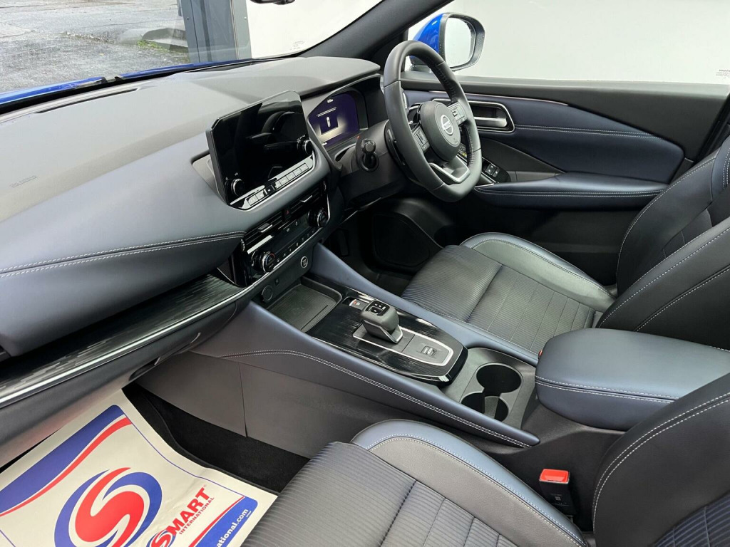 This 2021 Nissan Qashqai DIG-T Tekna is a superb example, having been owned by just one person since new. It features a 1.3 litre petrol hybrid engine, meeting Euro 6 emission standards, and comes equipped with the advanced Tekna trim. Notable features include an Intelligent Around View Monitor with a 360 degree camera for effortless parking assistance, and Intelligent Auto Headlights that switch on automatically. Youll also benefit from an Advanced Windscreen Head Up Display, a Heat Pack for cosy journeys with heated seats and steering wheel, and Blind Spot Warning to enhance your awareness on the road. This Qashqai offers several advantages over similar vehicles. Its acceleration from 0 to 62mph in just 9.2 seconds provides a responsive driving experience. The vehicle also boasts a low insurance group, which can help to keep running costs down. Furthermore, the generous boot space ensures you have ample room for luggage or shopping, making it a practical choice for everyday life.