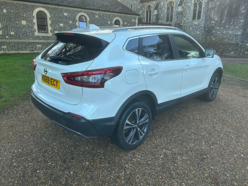 This 2020 Nissan Qashqai has a clear vehicle history check, offering you peace of mind. This N-Connecta trim of the Qashqai DIG-T N-Connecta is powered by a 1.3L petrol engine and adheres to Euro 6 emission standards. The vehicle boasts an Intelligent Around View Monitor, which includes parking assistance with a 360-degree camera. The Smart Vision Pack adds front and rear parking sensors to further assist with parking. The Tech Pack includes a rear camera. Enjoy modern connectivity with Bluetooth and audio streaming, and stay comfortable with dual-zone climate control air conditioning.This particular model stands out with its impressive fuel economy of 44 mpg, meaning fewer trips to the petrol station. It also falls into a low insurance group, potentially saving you money on your premiums. Furthermore, its low CO2 emissions mean you'll be contributing less to environmental pollution compared to similar vehicles. New front brake discs and pads. ass roof pack, 18in alloy wheels, 3 height adjustable rear headrests, 6 speakers, 60-40 split rear folding seats, am-fm-cd audio system with dab, aux socket for mp3 player, advanced drive assist display - 5in tft coloured screen, ambient lighting centre console, auto wipers, autohold function - stand still assist, bluetooth with audio streaming, body coloured door mirrors, body coloured handles, boot light, centre console storage and armrest, chrome glass surround, chrome interior door handles, cruise control with speed limiter, daytime running lights dip function when turn signal applied, driver seat height adjustment, driver-passenger-side and curtain airbags, drivers seat with manual lumbar support, dual zone climate control air conditioning, esp abs ebd and brake assist, electric heated auto-folding door mirrors, electric parking brake, electric speed-sensitive power steering, front 12v power sockets x2, front fog lights, front and rear door pockets with drink holders, front and rear electric windows, front and rear seat belts with load limiter and pretensioners, front and rear seatbelt warning, glossy black dash trim, halogen headlamps, height adjustable front head restraints, height adjustable front seatbelts, hill start assist, isofix child seat anchoring points - rear x2, intelligent around view monitor, intelligent auto headlight, intelligent park assist, interior ambient lighting, led daytime running lights, leather d shaped steering wheel, leather gear lever, leather knee pad, luggage board system, matt silver roof rails, nissan anti theft system immobiliser, nissan chassis controls, nissan connect 7in touchscreen navigation and entertainment system, nissan intelligent key, one touch 4 x auto windows with illuminated switches, outside temperature sensor, parcel shelf - stow function under luggage board, passenger airbag deactivation system, passengers seat with manual lumbar support, pollen filter, puncture repair kit, rear door child locks, rear roof spoiler, rear usb port, rear view camera, rear wiper with reverse link, remote audio control, remote central locking with superlocking, safety shield plus, seats - passengers height adjustment, selectable steering - normal or sport, smart vision pack, smartphone app integration, start push button, steering wheel mounted audio controls, synthetic leather wrapped door handle with contrasting stitching, tpms - tyre pressure monitoring system, tech pack, thatcham category 1 alarm, tilt and telescopic adjustable steering wheel, trip computer, usb port, underbody vortex generators