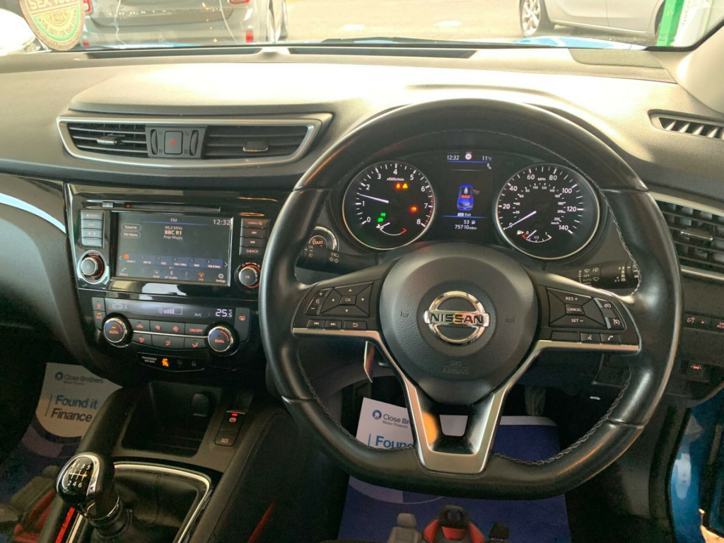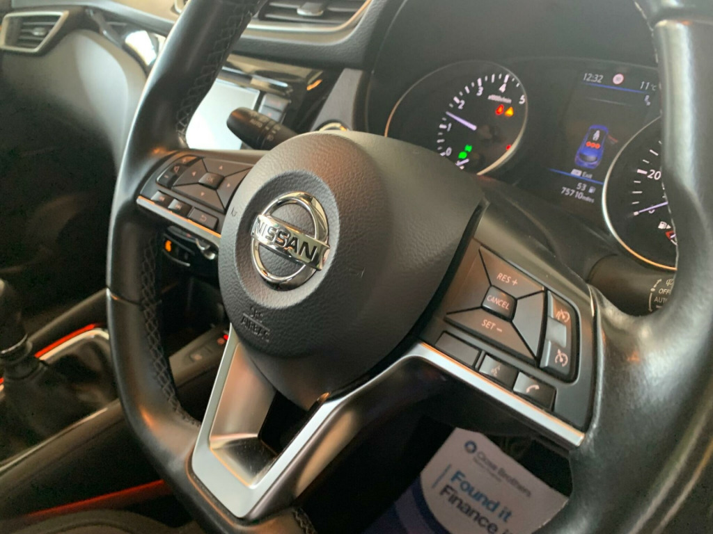 Satellite Navigation, Panoramic Roof, Reversing Camera, Diamond Cut Alloy Wheels, 6 Service Stamps, Two Keys, HPI Clear, Fully Inspected, This 2020 Nissan Qashqai DIG T N Connecta boasts a full service history and an MOT valid until November 2026, offering excellent peace of mind. This Euro 6 compliant 1.3 litre petrol model comes with a clear vehicle history check and is presented in the N Connecta trim. It features an Intelligent Around View Monitor with a 360 degree camera and a rear view camera, both included as part of the Tech Pack and Smart Vision Pack which also incorporates front and rear parking sensors. Connectivity is enhanced with Bluetooth and audio streaming capabilities.The Qashqai DIG T N Connecta offers impressive efficiency with a fuel economy of 44 miles per gallon, a figure that stands out when compared to similar vehicles. Furthermore, its low insurance group rating indicates that running costs are kept to a minimum, making this a practical and economical choice for many drivers. in alloy wheels, 3 height adjustable rear headrests, 6 speakers, 60-40 split rear folding seats, am-fm-cd audio system with dab, aux socket for mp3 player, advanced drive assist display - 5in tft coloured screen, ambient lighting centre console, auto wipers, autohold function - stand still assist, bluetooth with audio streaming, body coloured door mirrors, body coloured handles, boot light, centre console storage and armrest, chrome glass surround, chrome interior door handles, cruise control with speed limiter, daytime running lights dip function when turn signal applied, driver seat height adjustment, driver-passenger-side and curtain airbags, drivers seat with manual lumbar support, dual zone climate control air conditioning, esp abs ebd and brake assist, electric heated auto-folding door mirrors, electric parking brake, electric speed-sensitive power steering, front 12v power sockets x2, front fog lights, front and rear door pockets with drink holders, front and rear electric windows, front and rear seat belts with load limiter and pretensioners, front and rear seatbelt warning, glossy black dash trim, halogen headlamps, height adjustable front head restraints, height adjustable front seatbelts, hill start assist, isofix child seat anchoring points - rear x2, intelligent around view monitor, intelligent auto headlight, intelligent park assist, interior ambient lighting, led daytime running lights, leather d shaped steering wheel, leather gear lever, leather knee pad, luggage board system, matt silver roof rails, nissan anti theft system immobiliser, nissan chassis controls, nissan connect 7in touchscreen navigation and entertainment system, nissan intelligent key, one touch 4 x auto windows with illuminated switches, outside temperature sensor, parcel shelf - stow function under luggage board, passenger airbag deactivation system, passengers seat with manual lumbar support, pollen filter, puncture repair kit, rear door child locks, rear roof spoiler, rear usb port, rear view camera, rear wiper with reverse link, remote audio control, remote central locking with superlocking, safety shield plus, seats - passengers height adjustment, selectable steering - normal or sport, smart vision pack, smartphone app integration, start push button, steering wheel mounted audio controls, synthetic leather wrapped door handle with contrasting stitching, tpms - tyre pressure monitoring system, tech pack, thatcham category 1 alarm, tilt and telescopic adjustable steering wheel, trip computer, usb port, underbody vortex generators