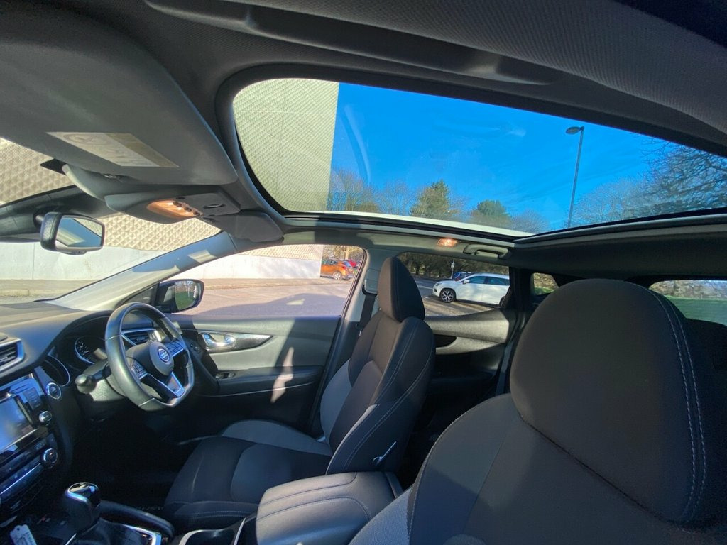 This 2020 Nissan Qashqai DIG T N Connecta boasts a full dealership service history and a clear vehicle history check, offering excellent peace of mind. This 1.3 litre petrol model, finished in the N Connecta trim, is a Euro 6 compliant vehicle with a low mileage of just 30,000 miles for its age. It comes equipped with a desirable Glass Roof Pack featuring a fixed panoramic sunroof, and the Intelligent Around View Monitor provides a 360 degree camera for effortless parking assistance. Inside, you'll find dual zone climate control for personalised comfort, Bluetooth connectivity for seamless audio and calls, and intelligent automatic headlights that adjust to lighting conditions. The Qashqai DIG T N Connecta stands out with its impressive fuel economy, achieving a highlight of 44 miles per gallon, which indicates it is more economical than many similar vehicles. Furthermore, its low insurance group rating suggests that running costs will be more affordable compared to other cars in its class. This combination of efficient performance, advanced features, and strong provenance makes this Nissan Qashqai a compelling choice. Pearl Black, 18in Alloy Wheels, 3 Height Adjustable Rear Headrests, 6 Airbags - Driver-Passenger-Side and Cu, 6 Speakers, 60-40 Split Rear Folding Seats, AM-FM Radio and CD Audio System, AUX Socket, Advanced Drive Assist Display - 5in TFT , Ambient Lighting Centre Console, Anti Dazzle Rear View Mirror, Auto Wipers, AutoHold Function - Stand Still Assist, Bluetooth, Body Coloured Door Mirrors, Body Coloured Handles, Boot Light, Carbon Graphite Dash Trim, Centre Console Storage and Armrest, Chrome Glass Window Surround, Chrome Interior Door Handles, Cruise Control with Speed Limiter, DAB Digital Radio, Daytime Running Lights Dip Function When, Driver Seat Manual Height Adjustment, Drivers Seat