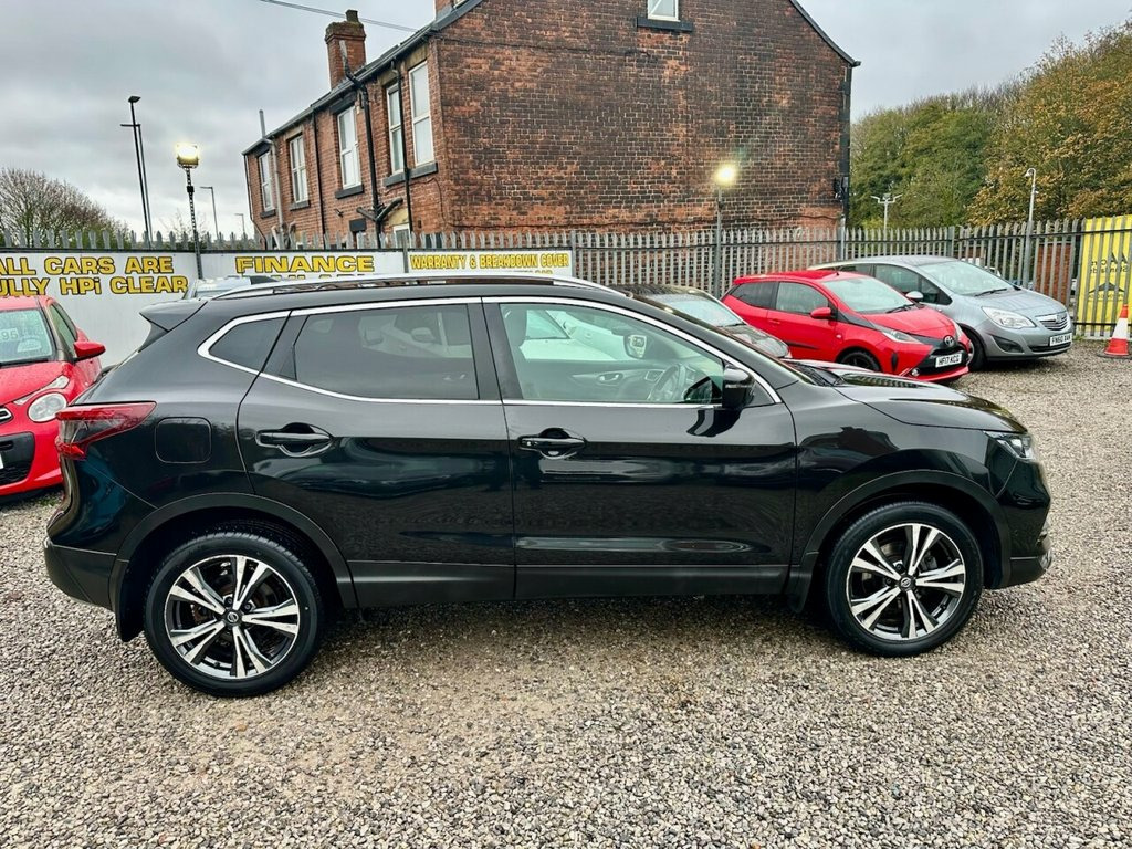 LPR MOTORS OF SHEFFIELD ARE EXCITED TO OFFER THE EVER POPULAR AND SOUGHT AFTER NISSAN QASHQAI N CONNECTA DIG-T 5 DOOR HATCHBACK, RARE 1332CC PETROL VERSION IDEAL FAMILY HATCH BACK AND VERY VERSATILE. VERY LOW MILEAGE, FANTASTIC COLOUR COMBINATION CARBON BLACK EXTERIOR WITH BLACK WITH WHITE SPEC TITAN CLOTH INTERIOR, VERY NICE SPEC INCLUDES FULL PANORAMIC ROOF WITH ELECTRIC BLIND, FULL SCREEN SAT NAV WITH REVERSE CAMERA AND 360 SURROUND CAMERAS, LANE DEPARTURE WARNING, 18" SILVER OVER BLACK DIAMOND CUT ALLOYS WHEELS WHICH HAVE BEEN RECENTLY PROFFESIONALLY REFURBISHED. ONLY 2 OWNERS FROM NEW THE VEHICLE HAS BEEN LOOKED AFTER TO A VERY HIGH STANDARD, SERVICE HISTORY WITH 4 SERVICES DOCUMENTED, MOT 28 AUG 2026. EXCELLENT CONDITION THROUGHOUT, FULLY HPI CLEAR ANY INSPECTION WELCOME, PLEASE CALL LPR MOTOR OF SHEFFIELD ON 0114 3273363 TO ARRANGE A VIEWING OR RESERVE, 12 MONTHS AA RECOVERY INCLUDED AND 6 MONTHS WARRANTY AVAILABLE, PX WELCOME AND FINANCE ALSO AVAILABLE. EXCELLENT VALUE FOR MONEY, PRICED TO SELL. DO NOT CONFUSE THIS VEHICLE WITH OTHER HIGH MILEAGE HIGH OWNER ONES ON TODAYS MARKET. This 2018 Nissan Qashqai DIG T N Connecta boasts exceptionally low mileage for its age, having covered just 26,694 miles, and benefits from an MOT valid until August 2026 with a clear vehicle history check. This Euro 6 compliant 1.3 litre petrol model, presented in the N Connecta trim, comes equipped with a desirable Glass Roof Pack featuring a fixed panoramic sunroof, and Dual Zone 18in Alloy Wheels, 3 Height Adjustable Rear Headrests, 6 Speakers, 60-40 Split Rear Folding Seats, Advanced Drive Assist Display - 5in TFT , AM-FM Radio and CD Player, Ambient Lighting Centre Console, Auto Wipers, AutoHold Function - Stand Still Assist, AUX Socket, Bluetooth, Body Coloured Door Mirrors, Body Coloured Handles, Boot Light, Carbon Graphite Dash Trim, Centre Console Storage and Armrest, Chrome Glass Surround, Chrome Interior Door Handles, Cruise Control with Speed Limiter, DAB Digital Radio, Daytime Running Lights Dip Function When, Driver Seat Height Adjustment, Driver-Passenger-Side and Curtain Airbag, Drivers Seat with Manual Lumbar Support, Dual Zone Climate Control Air Cond