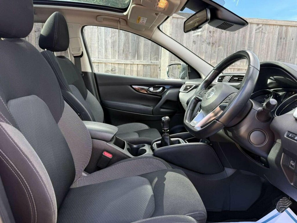 Surrey Specialist Cars are proud to present our lovely Nissan Qashqai N-Connecta DIG-T. This amazing car comes with Full Service History, finished in stunning metallic white with grey contrast interior. The car has a Long MOT until June 2026 so it is ready to go. The 1.3L Petrol engine offers superb economy at over 40 MPG on combined cycle. Features Include Multifunction Steering Wheel, Trip Computer, Satellite Navigation, Parking Camera, Panoramic Roof, Cruise Control, Speed Limiter, Stereo/Phone Control, FM/DAB Radio, Bluetooth Audio, USB Input, AUX Input, CD Player, Dual Zone Climate Control, 12V Charging Socket, Electronic Hand Brake, Auto Hold System, 6 Speed Manual Gearbox, Electric Windows, 18 Inch Alloy Wheels and two Remote Control Keys to name a few. We are open 7 days a week, and prepare all of our cars to the highest standards. We have a Click & Collect option available, and can also arrange delivery on request. All cars are HPI clear and a full history report is provided with every car. We welcome any inspection and viewing is highly recommended. All cars are available with our AA warranty starting from just ?150 for 3 months. Debit and credit card facilities are available and we offer competitive finance packages. If you have any questions or would like to view any of our cars give us a call or drop us a message on whatsapp 01483 363 144 to arrange an appointment with one of our team. We also offer full bespoke walkaround videos on request. We are always on th 18in Alloy Wheels, 3 Height Adjustable Rear Headrests, 6 Speakers, 60-40 Split Rear Folding Seats, AM-FM-CD Audio System with DAB, AUX Socket for MP3 Player, Advanced Drive Assist Display - 5in TFT , Ambient Lighting Centre Console, Auto Wipers, AutoHold Function - Stand Still Assist, Bluetooth with Audio Streaming, Body Coloured Door Mirrors, Body Coloured Handles, Boot Light, Centre Console Storage and Armrest, Chrome Glass Surround, Chrome Interior Door Handles, Cruise Control with Speed Limiter, Daytime Running Lights Dip Function When, Driver Seat Height Adjustment, Driver-Passenger-Side and Curtain Airbag, Drivers Seat with Manual Lumbar Support, Dual Zone Climate Control Air Condition