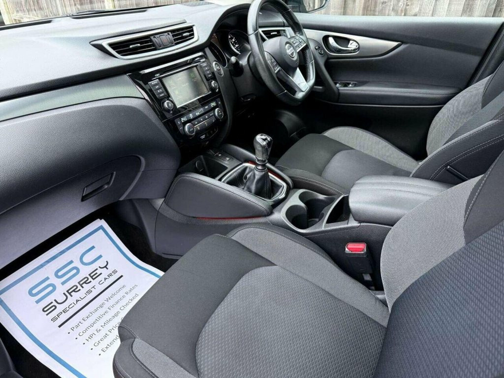 Surrey Specialist Cars are proud to present our lovely Nissan Qashqai N-Connecta DIG-T. This amazing car comes with Service History, finished in stunning metallic silver with grey contrast interior. The car has a MOT until April 2026 so it is ready to go. The 1.3L Petrol engine offers superb economy at over 40 MPG on combined cycle. Features Include Multifunction Steering Wheel, Trip Computer, Satellite Navigation, Parking Camera, Panoramic Roof, Cruise Control, Speed Limiter, Stereo/Phone Control, FM/DAB Radio, Bluetooth Audio, USB Input, AUX Input, CD Player, Dual Zone Climate Control, 12V Charging Socket, Electronic Hand Brake, Auto Hold System, 6 Speed Manual Gearbox, Electric Windows, 18 Inch Alloy Wheels and two Remote Control Keys to name a few. We are open 7 days a week, and prepare all of our cars to the highest standards. We have a Click & Collect option available, and can also arrange delivery on request. All cars are HPI clear and a full history report is provided with every car. We welcome any inspection and viewing is highly recommended. All cars are available with our AA warranty starting from just ?599 for 12 months. Debit and credit card facilities are available and we offer competitive finance packages. If you have any questions or would like to view any of our cars give us a call or drop us a message on whatsapp 01483 363 144 to arrange an appointment with one of our team. We also offer full bespoke walkaround videos on request. We are always on the lookou 18in Alloy Wheels, 3 Height Adjustable Rear Headrests, 6 Speakers, 60-40 Split Rear Folding Seats, AM-FM-CD Audio System with DAB, AUX Socket for MP3 Player, Advanced Drive Assist Display - 5in TFT , Ambient Lighting Centre Console, Auto Wipers, AutoHold Function - Stand Still Assist, Bluetooth with Audio Streaming, Body Coloured Door Mirrors, Body Coloured Handles, Boot Light, Centre Console Storage and Armrest, Chrome Glass Surround, Chrome Interior Door Handles, Cruise Control with Speed Limiter, Daytime Running Lights Dip Function When, Driver Seat Height Adjustment, Driver-Passenger-Side and Curtain Airbag, Drivers Seat with Manual Lumbar Support, Dual Zone Climate Control Air Condition