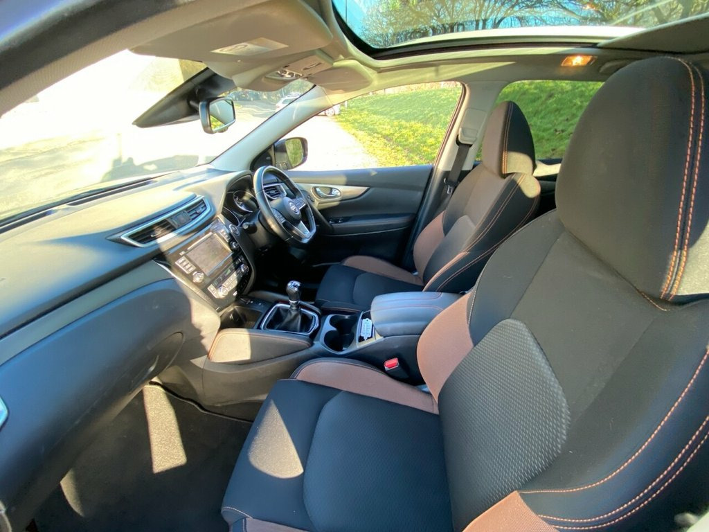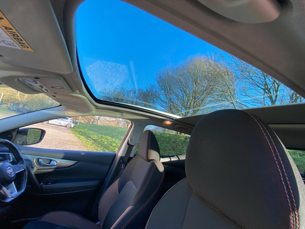 Boasting exceptionally low mileage for its 2019 registration, this Nissan Qashqai DIG-T N-Motion presents a superb ownership proposition. Powered by an efficient 1.3 litre petrol engine, this Euro 6 compliant model offers a refined driving experience. Its provenance is further assured with a full service history and a clear vehicle history check, providing peace of mind for its next owner. This N-Motion trim Qashqai is equipped with desirable features designed to enhance comfort and convenience. The Glass Roof Pack, including a fixed panoramic sunroof, floods the cabin with light. Safety is paramount with the Safety Shield Plus system, which incorporates Blind Spot Assistance. Navigating and staying entertained is effortless thanks to the Nissan Connect 7in touchscreen with Android Auto and Apple CarPlay, complemented by an Intelligent Around View Monitor for effortless parking. The Dual Zone Climate Control ensures everyone enjoys a comfortable temperature. Furthermore, this Qashqai benefits from a low insurance group and low CO2 emissions, indicating it is more economical to run than many comparable vehicles. Blade Silver, 19in Alloy Wheels - Ibiscus, 3 Height Adjustable Rear Headrests, 6 Speakers, 60-40 Split Rear Folding Seats, AM-FM-CD Audio System with DAB, AUX Socket for MP3 Player, Advanced Drive Assist Display - 5in TFT , Ambient Lighting Centre Console, Auto Wipers, AutoHold Function - Stand Still Assist, Bluetooth with Audio Streaming, Body Coloured Handles, Boot Light, Carbon Graphite Dash Trim, Centre Console Storage and Armrest, Chrome Glass Surround, Chrome Interior Door Handles, Cruise Control with Speed Limiter, Daytime Running Lights Dip Function When, Driver Seat Height Adjustment, Driver-Passenger-Side and Curtain Airbag, Drivers Seat with Manual Lumbar Support, Dual Zone Climat