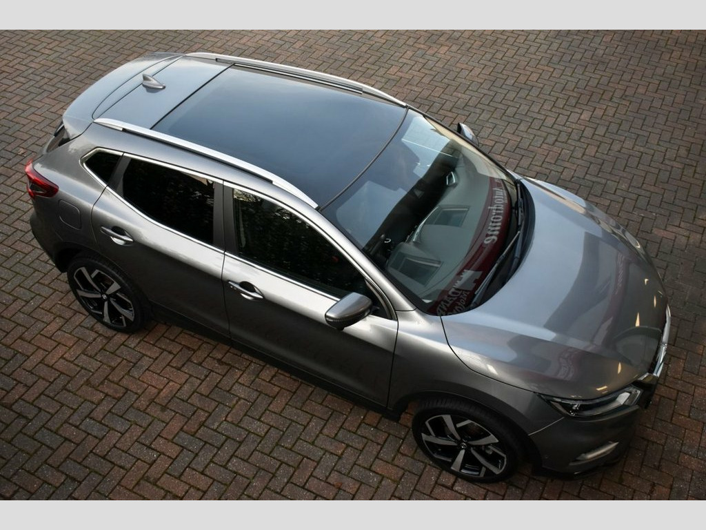 Gun Metallic with Black cloth/leather interior. High specification: Panoramic glass sunroof with electric sun shade, multi-function steering wheel with adaptive cruise control, electric folding door mirrors with blind-spot assist, heated front seats, intelligent park assist with 360 degree camera system, full LED headlight system, front fog lights, Nissan touch-screen navigation system, DAB radio with BOSE loudspeaker system, AUX/USB input, smartphone interface, 19" alloy wheels, electrically operated drivers seat, 60/40 split-folding rear seats, privacy glass, aluminium roof rails, automatic headlights and wipers, front centre armrest and more. Only one private owner from new with full Nissan main dealer service history - 6 records, last serviced at 41,337m in August 2025. MOT'd at point of sale in our on-site service centre. Original handbook pack and two remote keys. Gun Metallic