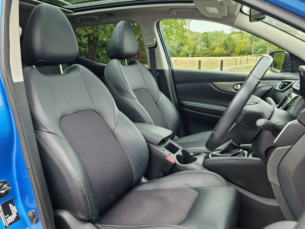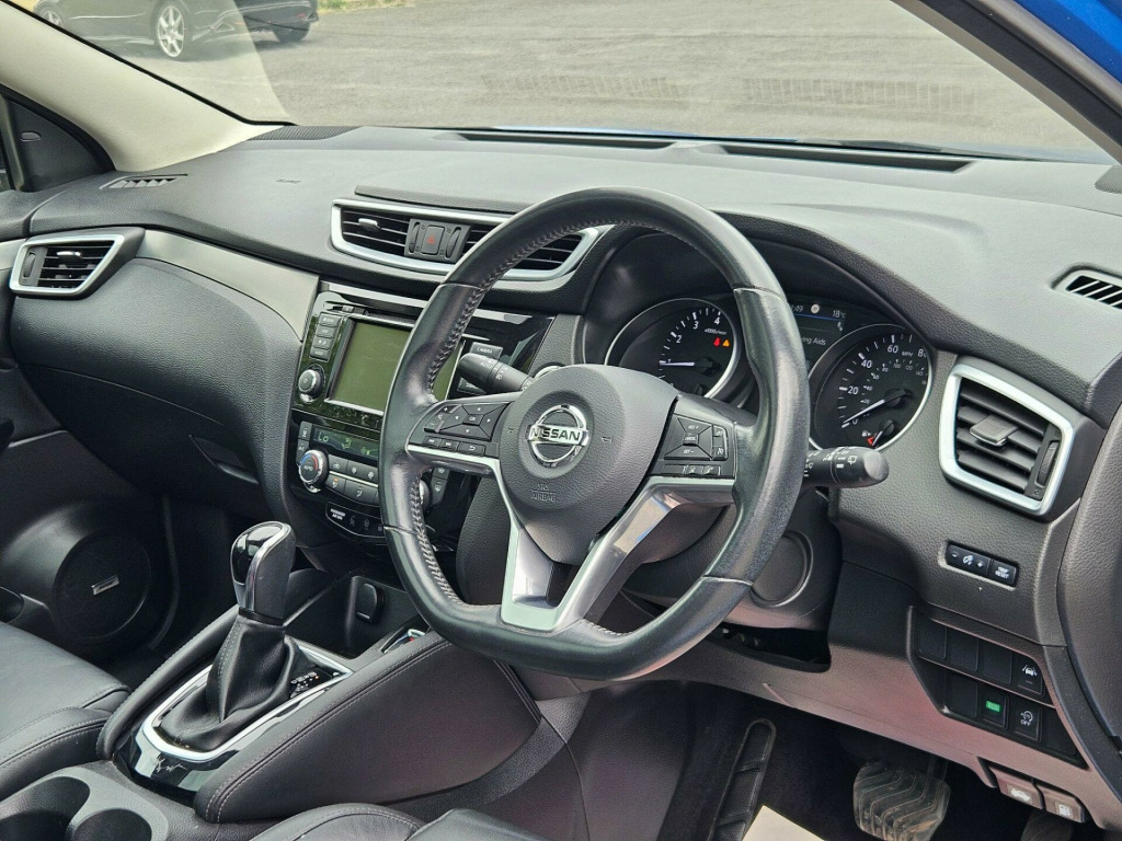 We are pleased to offer this Nissan Qashqai 1.3 DIG-T Tekna DCT Auto Euro 6 finished in striking blue with a black part leather interior in excellent condition. We will deliver free anywhere main land UK excluding the hidhlands Ireland. With 3 owners, part service history, 6 months warranty, and tyres in excellent condition, this Qashqai is ready to drive away with confidence. This premium SUV comes loaded with upgrades including graphite part leather, Executive Pack, ProPILOT, Glass Roof Pack, Intelligent Around View Monitor, and Bose 8-speaker premium audio system, combining luxury, convenience, and advanced technology. Comfort and safety are a priority with dual-zone climate control, heated electric seats, intelligent auto headlights, LED signature daytime running lights, rear-view camera, intelligent park assist, cruise control with speed limiter, ISOFIX rear child seats, and Safety Shield Plus. Practical features include 60-40 split folding rear seats, multiple storage compartments, electric parking brake, tilt and telescopic adjustable steering, rear USB ports, and smart luggage board system, making it ideal for families or daily commuting. Economical and efficient, the 1.3 DIG-T engine delivers smooth performance while meeting Euro 6 emission standards. Finance is available, part exchange is welcome, and nationwide delivery can be arranged, making this Nissan Qashqai Tekna a stylish, practical.???? Call now to arrange a viewing or test drive. ???? Nationwide delivery available straight to your door. ???? Finance options to suit your budget.. 19in Alloy Wheels, 3 Height Adjustable Rear Headrests, 60-40 Split Rear Folding Seats, AM-FM-CD Audio System with DAB, AUX Socket for MP3 Player, Advanced Drive Assist Display - 5in TFT Coloured Screen, Ambient Lighting Centre Console, Auto Wipers, Bluetooth with Audio Streaming, Body Coloured Door Mirrors, Body Coloured Handles, Boot Light, Bose 8 Speaker Premium Audio System, Carbon Graphite Dash Trim, Centre Console Storage and Armrest, Chrome Glass Surround, Chrome Interior Door Handles, Cruise Control with Speed Limiter, Daytime Running Lights Dip Function When Turn Signal Applied, Driver Seat Height Adjustment, Driver-Passenger-Side and Curtain Airbags, Drivers Seat with Manual Lumbar Support, Dual Zone Climate Control Air Conditioning, ESP ABS EBD and Brake Assist, Electric Heated Auto-Folding Door Mirrors, Electric Parking Brake, Electric Speed-Sensitive Power Steering, Electrically Adjustable Drivers Seat, Executive Pack, Front 12v Power Sockets x2, Front Fog Lights, Front and Rear Door Pockets with Drink Holders, Front and Rear Electric Windows, Front and Rear Seat Belts with Load Limiter and Pretensioners, Front and Rear Seatbelt Warning, Glass Roof Pack, Heat Pack, Height Adjustable Front Head Restraints, Height Adjustable Front Seatbelts, Hill Start Assist, ISOFIX Child Seat Anchoring Points - Rear x2, Individual Rear Seat Reading Lights, Intelligent Around View Monitor, Intelligent Auto Headlight, Intelligent Park Assist, Interior Ambient Lighting, LED Pack, LED Signature Daytime Running Lights, Leather D Shaped Steering Wheel, Leather Gear Lever, Leather Knee Pad, Luggage Board System, Matt Silver Roof Rails, Monoform Front Seats with Plastic Backboard, Nissan Anti Theft System Immobiliser, Nissan Chassis Controls, Nissan Connect 7in Touchscreen Navigation and Entertainment System, Nissan Intelligent Key, One Touch 4 x Auto Windows with Illuminated Switches, Outside Temperature Sensor, Parcel Shelf - Stow Function Under Luggage Board, Passenger Airbag Deactivation System, Passengers Seat with Manual Lumbar Support, Pollen Filter, ProPILOT, Puncture Repair Kit, Rear Door Child Locks, Rear Roof Spoiler, Rear USB Port, Rear View Camera, Rear Wiper with Reverse Link, Remote Audio Control, Remote Central Locking with Superlocking, Safety Shield Plus, Seats - Passengers Height Adjustment, Selectable Steering - Normal or Sport, Smart Vision Pack, Smartphone App Integration, Start Push Button, Steering Wheel Mounted Audio Controls, Synthetic Leather Wrapped Door Handle with Contrasting Stitching, TPMS - Tyre Pressure Monitoring System, Tech Pack, Thatcham Category 1 Alarm, Tilt and Telescopic Adjustable Steering Wheel, Trip Computer, USB Port, Underbody Vortex Generators, Part Leather - Graphite. Part service history