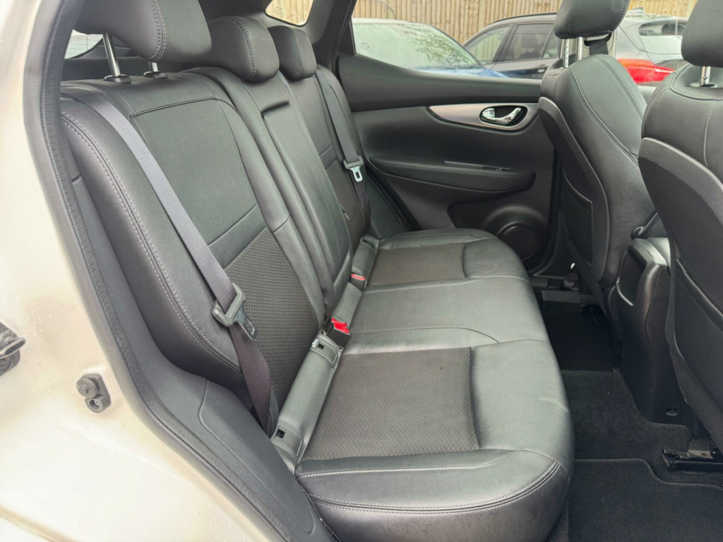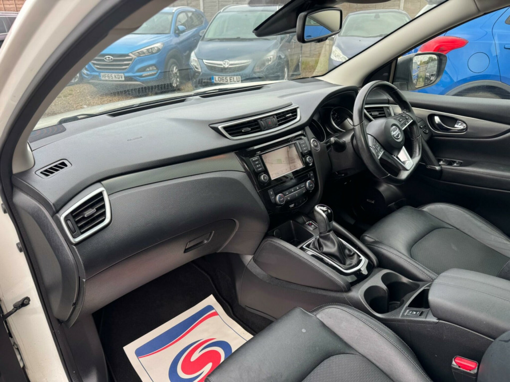 On sale Nissan Qashqai 1.3 , automatic transmission, new timing chain and service, 360 cameras , parking sensors, sat navigation, drive assist, alloy wheels, 3 service history , 6 months warranty in alloy wheels, 3 height adjustable rear headrests, 60-40 split rear folding seats, am-fm-cd audio system with dab, aux socket for mp3 player, advanced drive assist display - 5in tft coloured screen, ambient lighting centre console, auto wipers, bluetooth with audio streaming, body coloured door mirrors, body coloured handles, boot light, bose 8 speaker premium audio system, carbon graphite dash trim, centre console storage and armrest, chrome glass surround, chrome interior door handles, cruise control with speed limiter, daytime running lights dip function when turn signal applied, driver seat height adjustment, driver-passenger-side and curtain airbags, drivers seat with manual lumbar support, dual zone climate control air conditioning, esp abs ebd and brake assist, electric heated auto-folding door mirrors, electric parking brake, electric speed-sensitive power steering, electrically adjustable drivers seat, executive pack, front 12v power sockets x2, front fog lights, front and rear door pockets with drink holders, front and rear electric windows, front and rear seat belts with load limiter and pretensioners, front and rear seatbelt warning, glass roof pack, heat pack, height adjustable front head restraints, height adjustable front seatbelts, hill start assist, isofix child seat anchoring points - rear x2, individual rear seat reading lights, intelligent around view monitor, intelligent auto headlight, intelligent park assist, interior ambient lighting, led pack, led signature daytime running lights, leather d shaped steering wheel, leather gear lever, leather knee pad, luggage board system, matt silver roof rails, monoform front seats with plastic backboard, nissan anti theft system immobiliser, nissan chassis controls, nissan connect 7in touchscreen navigation and entertainment system, nissan intelligent key, one touch 4 x auto windows with illuminated switches, outside temperature sensor, parcel shelf - stow function under luggage board, passenger airbag deactivation system, passengers seat with manual lumbar support, pollen filter, propilot, puncture repair kit, rear door child locks, rear roof spoiler, rear usb port, rear view camera, rear wiper with reverse link, remote audio control, remote central locking with superlocking, safety shield plus, seats - passengers height adjustment, selectable steering - normal or sport, smart vision pack, smartphone app integration, start push button, steering wheel mounted audio controls, synthetic leather wrapped door handle with contrasting stitching, tpms - tyre pressure monitoring system, tech pack, thatcham category 1 alarm, tilt and telescopic adjustable steering wheel, trip computer, usb port, underbody vortex generators