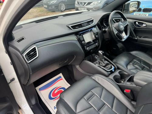 This 2019 Nissan Qashqai DIG-T Tekna+ is a superb example of a well maintained family car. It boasts a 1.3 litre petrol engine and meets Euro 6 emission standards, contributing to its low CO2 emissions. The Tekna+ trim level ensures a premium experience, enhanced by the inclusion of the ProPILOT system with adaptive cruise control, designed to make journeys more relaxed. Furthermore, the Glass Roof Pack, featuring a fixed panoramic sunroof, floods the cabin with light, while the Intelligent Around View Monitor, complete with a 360 degree camera and parking assistance, offers unparalleled visibility when manoeuvring. Connectivity is also a strong point, with Bluetooth and audio streaming readily available.The Smart Vision Pack, incorporating front and rear parking sensors, further aids in effortless parking. This Qashqai is equipped with features that set it apart from other vehicles in its class, offering a more sophisticated and convenient driving experience. Its efficient 1.3L petrol engine and Euro 6 compliance highlight its commitment to lower environmental impact through reduced CO2 emissions, making it a sensible choice for the modern driver. in alloy wheels, 3 height adjustable rear headrests, 60-40 split rear folding seats, am-fm-cd audio system with dab, aux socket for mp3 player, advanced drive assist display - 5in tft coloured screen, ambient lighting centre console, auto wipers, bluetooth with audio streaming, body coloured handles, boot light, bose 8 speaker premium audio system, carbon graphite dash trim, centre console storage and armrest, chrome glass surround, chrome interior door handles, cruise control with speed limiter, dark headlining, daytime running lights dip function when turn signal applied, driver seat height adjustment, driver-passenger-side and curtain airbags, dual zone climate control air conditioning, esp abs ebd and brake assist, electric 4-way lumbar support on driver seat, electric heated auto-folding door mirrors, electric parking brake, electric speed-sensitive power steering, electrically adjustable drivers seat, electrically adjustable passenger seat, front 12v power sockets x2, front fog lights, front and rear door pockets with drink holders, front and rear electric windows, front and rear seat belts with load limiter and pretensioners, front and rear seatbelt warning, glass roof pack, gloss silver door mirror caps, heat pack, height adjustable front head restraints, height adjustable front seatbelts, hill start assist, isofix child seat anchoring points - rear x2, individual rear seat reading lights, intelligent around view monitor, intelligent auto headlight, intelligent park assist, interior ambient lighting, led pack, led signature daytime running lights, leather d shaped steering wheel, leather gear lever, leather knee pad, luggage board system, matt silver roof rails, memory function drivers seat and door mirrors, monoform front seats with plastic backboard, nissan anti theft system immobiliser, nissan chassis controls, nissan connect 7in touchscreen navigation and entertainment system, nissan intelligent key, one touch 4 x auto windows with illuminated switches, outside temperature sensor, parcel shelf - stow function under luggage board, passenger airbag deactivation system, passengers seat with manual lumbar support, pollen filter, propilot, puncture repair kit, rear door child locks, rear roof spoiler, rear usb port, rear view camera, rear wiper with reverse link, remote audio control, remote central locking with superlocking, safety shield plus, seats - passengers height adjustment, selectable steering - normal or sport, smart vision pack, smartphone app integration, start push button, steering wheel mounted audio controls, synthetic leather wrapped door handle with contrasting stitching, tpms - tyre pressure monitoring system, tech pack, thatcham category 1 alarm, tilt and telescopic adjustable steering wheel, trip computer, usb port, underbody vortex generators