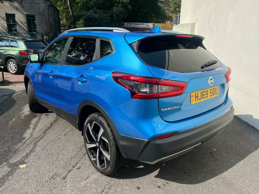 This 2019 Nissan Qashqai DIG-T Tekna is presented with a clear vehicle history check, Has Nissan Main Dealer Service History Throughout, Just been serviced, offering you peace of mind. Powered by an efficient 1.3 litre Euro 6 petrol engine, this Tekna trim model combines practicality with advanced technology. It features, Stunning Panoramic glass roof, Intelligent Auto Headlights for improved visibility, and the Tech Pack enhances convenience with a rear parking camera. Further aiding manoeuvrability, the Intelligent Around View Monitor provides a 360 degree camera system. Inside, you'll appreciate the comfort of Dual Zone Climate Control Air Conditioning and the Executive Pack, which includes heated seats for those colder journeys.The Nissan Qashqai DIG-T Tekna stands out with its low insurance group, making it an economical choice for many drivers. Additionally, its low CO2 emissions highlight its efficiency, indicating it is a more environmentally conscious option compared to similar vehicles. This combination of cost saving benefits and advanced features makes this Qashqai a compelling proposition for those seeking a well equipped and sensible family car. rt leather - graphite, 19in alloy wheels, 3 height adjustable rear headrests, 60-40 split rear folding seats, am-fm radio and cd player, aux socket, advanced drive assist display - 5in tft coloured screen, ambient lighting centre console, auto wipers, autohold function - stand still assist, bluetooth, body coloured door mirrors, body coloured handles, boot light, bose 8 speaker premium audio system, carbon graphite dash trim, centre console storage and armrest, chrome glass surround, chrome interior door handles, cruise control with speed limiter, dab digital radio, daytime running lights dip function when turn signal applied, driver-passenger-side and curtain airbags, drivers seat with manual lumbar support, dual zone climate control air conditioning, esp abs ebd and brake assist, electric heated auto-folding door mirrors, electric parking brake, electric speed-sensitive power steering, electrically adjustable drivers seat, executive pack, front 12v power sockets x2, front and rear door pockets with drink holders, front and rear electric windows, front and rear seat belts with load limiter and pretensioners, front and rear seatbelt warning, glass roof pack, heat pack, height adjustable front head restraints, height adjustable front seatbelts, hill start assist, isofix child seat anchoring points - rear x2, individual rear seat reading lights, intelligent around view monitor, intelligent auto headlight, intelligent key, intelligent park assist, interior ambient lighting, led pack, led turn indicator on door mirrors, leather d shaped steering wheel, leather gear lever, leather knee pad, luggage board system, matt silver roof rails, monoform front seats with plastic backboard, nissan anti theft system immobiliser, nissan chassis controls, one touch 4 x auto windows with illuminated switches, one-touch electric shade, outside temperature sensor, parcel shelf - stow function under luggage board, passenger airbag deactivation system, passengers seat with manual lumbar support, pollen filter, puncture repair kit, rear roof spoiler, rear wiper with reverse link, remote central locking, safety shield plus, seats - passengers height adjustment, selectable steering - normal or sport, smart vision pack, smartphone app integration, start push button, steering wheel mounted audio controls, synthetic leather wrapped door handle with contrasting stitching, tpms - tyre pressure monitoring system, tech pack, thatcham category 1 alarm, tilt and telescopic adjustable steering wheel, trip computer, usb port, underbody vortex generators
