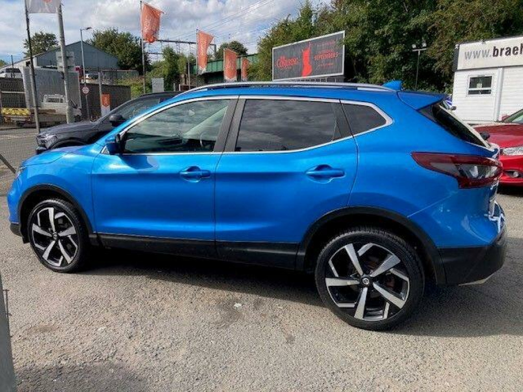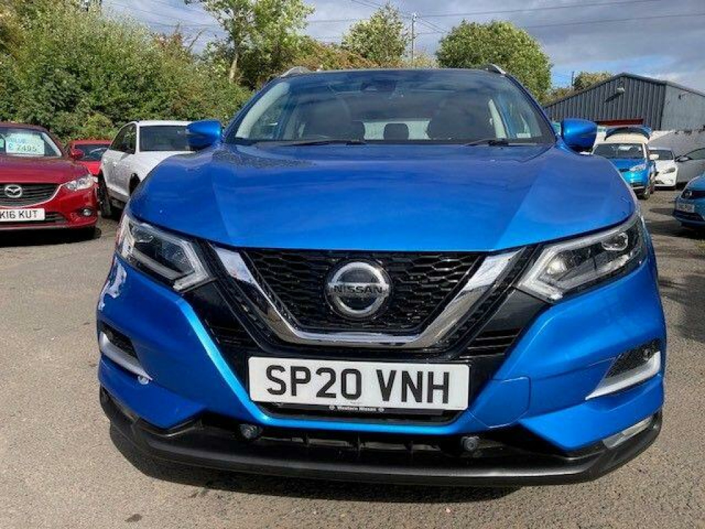 ONE PREVIOUS OWNER FROM NEW WITH F/S/HISTORY AND FANTASTIC SPECIFICATION. This 2020 Nissan Qashqai DIG-T Tekna offers a refined driving experience with its Euro 6 compliant 1.3 litre petrol engine, capable of reaching 60mph in just 8.6 seconds. This Tekna trim level comes equipped with the Nissan Intelligent Key for keyless entry, allowing for effortless access. Navigating and staying entertained is simple with the Nissan Connect 7in touchscreen, which seamlessly integrates Android Auto and Apple CarPlay.The Qashqai Tekna also boasts impressive parking assistance features, including a rear view camera and an Intelligent Around View Monitor that provides a 360 degree camera view. The Smart Vision Pack further enhances safety and convenience with front and rear parking sensors. These features collectively demonstrate how this Qashqai offers superior ease of use and driver confidence compared to other vehicles in its class.. 19in Alloy Wheels, 3 Height Adjustable Rear Headrests, 60-40 Split Rear Folding Seats, AM-FM-CD Audio System with DAB, AUX Socket for MP3 Player, Advanced Drive Assist Display - 5in TFT Coloured Screen, Ambient Lighting Centre Console, Auto Wipers, AutoHold Function - Stand Still Assist, Bluetooth with Audio Streaming, Body Coloured Door Mirrors, Body Coloured Handles, Boot Light, Bose 8 Speaker Premium Audio System, Carbon Graphite Dash Trim, Centre Console Storage and Armrest, Chrome Glass Surround, Chrome Interior Door Handles, Cruise Control with Speed Limiter, Daytime Running Lights Dip Function When Turn Signal Applied, Drive Assist Pack, Driver Seat Height Adjustment, Driver-Passenger-Side and Curtain Airbags, Drivers Seat with Manual Lumbar Support, Dual Zone Climate Control Air Conditioning, ESP ABS EBD and Brake Assist, Electric Heated Auto-Folding Door Mirrors, Electric Parking Brake, Electric Speed-Sensitive Power Steering, Electrically Adjustable Drivers Seat, Executive Pack, Front 12v Power Sockets x2, Front Fog Lights, Front and Rear Door Pockets with Drink Holders, Front and Rear Electric Windows, Front and Rear Seat Belts with Load Limiter and Pretensioners, Front and Rear Seatbelt Warning, Glass Roof Pack, Heat Pack, Height Adjustable Front Head Restraints, Height Adjustable Front Seatbelts, Hill Start Assist, ISOFIX Child Seat Anchoring Points - Rear x2, Individual Rear Seat Reading Lights, Intelligent Around View Monitor, Intelligent Auto Headlight, Intelligent Park Assist, Interior Ambient Lighting, LED Pack, LED Signature Daytime Running Lights, Leather D Shaped Steering Wheel, Leather Gear Lever, Leather Knee Pad, Luggage Board System, Matt Silver Roof Rails, Monoform Front Seats with Plastic Backboard, Nissan Anti Theft System Immobiliser, Nissan Chassis Controls, Nissan Connect 7in Touchscreen Navigation and Entertainment System, Nissan Intelligent Key, One Touch 4 x Auto Windows with Illuminated Switches, Outside Temperature Sensor, Parcel Shelf - Stow Function Under Luggage Board, Passenger Airbag Deactivation System, Passengers Seat with Manual Lumbar Support, Pollen Filter, Puncture Repair Kit, Rear Door Child Locks, Rear Roof Spoiler, Rear USB Port, Rear View Camera, Rear Wiper with Reverse Link, Remote Audio Control, Remote Central Locking with Superlocking, Safety Shield Plus, Seats - Passengers Height Adjustment, Selectable Steering - Normal or Sport, Smart Vision Pack, Smartphone App Integration, Start Push Button, Steering Wheel Mounted Audio Controls, Synthetic Leather Wrapped Door Handle with Contrasting Stitching, TPMS - Tyre Pressure Monitoring System, Tech Pack, Thatcham Category 1 Alarm, Tilt and Telescopic Adjustable Steering Wheel, Trip Computer, USB Port, Underbody Vortex Generators.