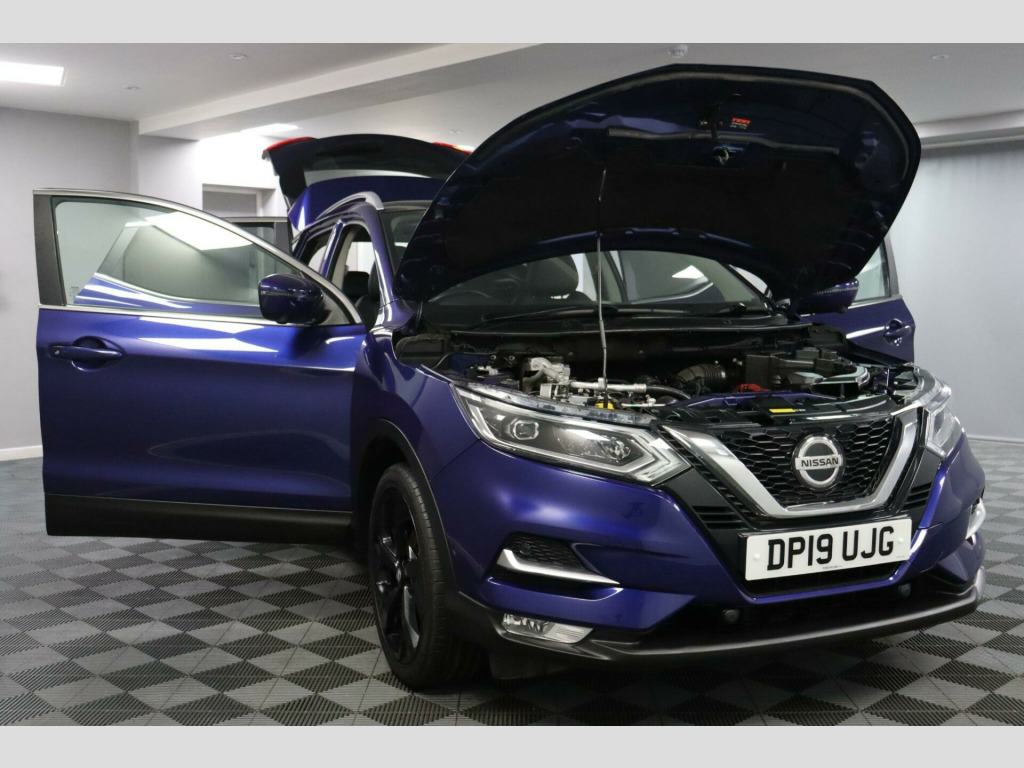 DP19UJG. The Nissan Qashqai became a favourite on UK roads for bringing SUV comfort with the lighter feel of a hatchback. Nissan designed the Qashqai for families who wanted more space, a higher seating position and modern features without moving into a large SUV. This 1.3 DIG T Tekna has Full Service History, a Lower Insurance Group and Lower Emissions, making a good match for Families, Commuters and Anyone wanting a stylish, easy to enjoy SUV.The cabin feels bright with Leather Seats, a Powered Drivers Seat, Heated Front Seats and a Panoramic Glass Roof. The Nissan Connect Touchscreen runs Navigation, Apple CarPlay, Android Auto, Bluetooth, DAB Radio and a 360 Degree Around View Monitor for a clear look around the car. A Bose Premium Sound System lifts music and calls, and Dual Zone Climate Control manages the temperature.Front and Rear Parking Sensors work alongside the Reversing Camera. Intelligent Park Assist supports tighter spaces. Cruise Control with Speed Limiter helps on longer runs. Lane Departure Warning, Blind Spot Monitoring, Traffic Sign Recognition and Intelligent Emergency Braking add reassurance on busier roads. Hill Start Assist and Stop Start round off the everyday setup.Reserve now and book a test drive.This car comes with a Full Service History (6 records), a new 12 month MOT with no advisories, a clear HPI report, two keys, and verified mileage for peace of mind.Finance is available, and we can provide a personalised video on request. Please note that some features (e.g., Navigation/CarPlay) may require an active subscription. Spec details can vary, so just ask if you’d like us to confirm anything.For more info or a finance quote, call ☎️ 0113 257 00 00.. 19in Alloy Wheels, 3 Height Adjustable Rear Headrests, 60-40 Split Rear Folding Seats, AM-FM Radio and CD Player, AUX Socket, Advanced Drive Assist Display - 5in TFT Coloured Screen, Ambient Lighting Centre Console, Auto Wipers, AutoHold Function - Stand Still Assist, Bluetooth, Body Coloured Door Mirrors, Body Coloured Handles, Boot Light, Bose 8 Speaker Premium Audio System, Carbon Graphite Dash Trim, Centre Console Storage and Armrest, Chrome Glass Surround, Chrome Interior Door Handles, Cruise Control with Speed Limiter, DAB Digital Radio, Daytime Running Lights Dip Function When Turn Signal Applied, Driver-Passenger-Side and Curtain Airbags, Drivers Seat with Manual Lumbar Support, Dual Zone Climate Control Air Conditioning, ESP ABS EBD and Brake Assist, Electric Heated Auto-Folding Door Mirrors, Electric Parking Brake, Electric Speed-Sensitive Power Steering, Electrically Adjustable Drivers Seat, Executive Pack, Front 12v Power Sockets x2, Front and Rear Door Pockets with Drink Holders, Front and Rear Electric Windows, Front and Rear Seat Belts with Load Limiter and Pretensioners, Front and Rear Seatbelt Warning, Glass Roof Pack, Heat Pack, Height Adjustable Front Head Restraints, Height Adjustable Front Seatbelts, Hill Start Assist, ISOFIX Child Seat Anchoring Points - Rear x2, Individual Rear Seat Reading Lights, Intelligent Around View Monitor, Intelligent Auto Headlight, Intelligent Key, Intelligent Park Assist, Interior Ambient Lighting, LED Pack, LED Turn Indicator on Door Mirrors, Leather D Shaped Steering Wheel, Leather Gear Lever, Leather Knee Pad, Luggage Board System, Matt Silver Roof Rails, Monoform Front Seats with Plastic Backboard, Nissan Anti Theft System Immobiliser, Nissan Chassis Controls, One Touch 4 x Auto Windows with Illuminated Switches, One-Touch Electric Shade, Outside Temperature Sensor, Parcel Shelf - Stow Function Under Luggage Board, Passenger Airbag Deactivation System, Passengers Seat with Manual Lumbar Support, Pollen Filter, Puncture Repair Kit, Rear Roof Spoiler, Rear Wiper with Reverse Link, Remote Central Locking, Safety Shield Plus, Seats - Passengers Height Adjustment, Selectable Steering - Normal or Sport, Smart Vision Pack, Smartphone App Integration, Start Push Button, Steering Wheel Mounted Audio Controls, Synthetic Leather Wrapped Door Handle with Contrasting Stitching, TPMS - Tyre Pressure Monitoring System, Tech Pack, Thatcham Category 1 Alarm, Tilt and Telescopic Adjustable Steering Wheel, Trip Computer, USB Port, Underbody Vortex Generators. Full service history