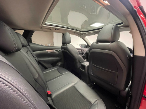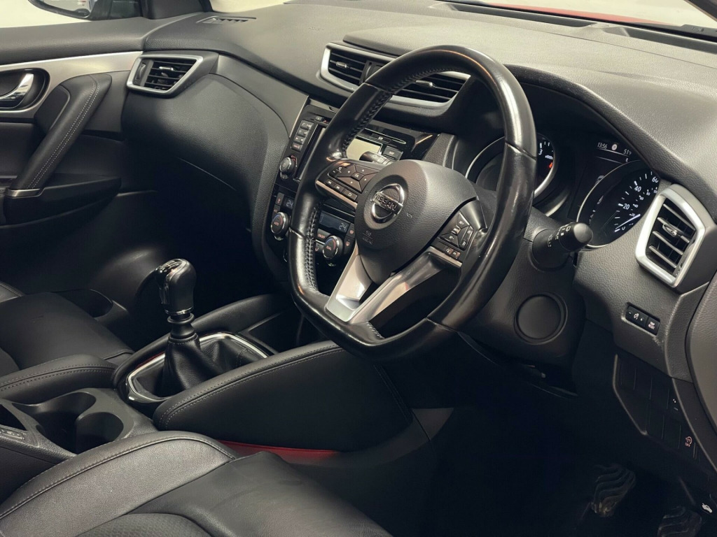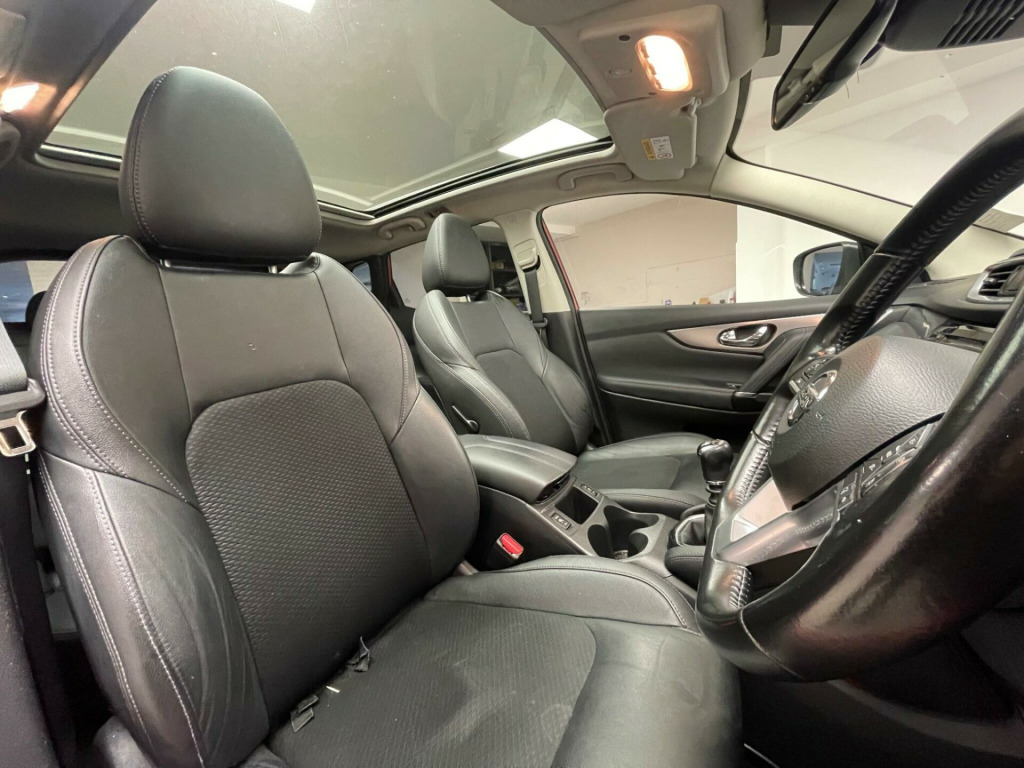 This 2018 Nissan Qashqai DIG-T Tekna is a well maintained example, offering a blend of style and practicality. Powered by an efficient 1.3 litre petrol engine, this Euro 6 compliant model boasts low CO2 emissions, making it an environmentally conscious choice. The Tekna trim level comes equipped with a host of desirable features, including Intelligent Auto Headlights for enhanced visibility, and an Intelligent Around View Monitor with a 360 degree camera to assist with parking. Enjoy your journeys with the premium Bose 8 speaker sound system and seamless Bluetooth connectivity, all while appreciating the open feel provided by the Glass Roof Pack with its fixed panoramic sunroof.The performance of this Qashqai is noteworthy, achieving 0 to 60 miles per hour in just 8.6 seconds, demonstrating its responsive acceleration. These highlights, such as the advanced camera system and premium audio, indicate how this vehicle offers a superior driving experience compared to other similar models on the market. Its combination of fuel efficiency, advanced technology, and engaging performance makes it a compelling option for those seeking a versatile and enjoyable compact SUV. in alloy wheels, 3 height adjustable rear headrests, 60-40 split rear folding seats, am-fm radio and cd player, aux socket, advanced drive assist display - 5in tft coloured screen, ambient lighting centre console, auto wipers, autohold function - stand still assist, bluetooth, body coloured door mirrors, body coloured handles, boot light, bose 8 speaker premium audio system, carbon graphite dash trim, centre console storage and armrest, chrome glass surround, chrome interior door handles, cruise control with speed limiter, dab digital radio, daytime running lights dip function when turn signal applied, driver-passenger-side and curtain airbags, drivers seat with manual lumbar support, dual zone climate control air conditioning, esp abs ebd and brake assist, electric heated auto-folding door mirrors, electric parking brake, electric speed-sensitive power steering, electrically adjustable drivers seat, executive pack, front 12v power sockets x2, front and rear door pockets with drink holders, front and rear electric windows, front and rear seat belts with load limiter and pretensioners, front and rear seatbelt warning, glass roof pack, heat pack, height adjustable front head restraints, height adjustable front seatbelts, hill start assist, isofix child seat anchoring points - rear x2, individual rear seat reading lights, intelligent around view monitor, intelligent auto headlight, intelligent key, intelligent park assist, interior ambient lighting, led pack, led turn indicator on door mirrors, leather d shaped steering wheel, leather gear lever, leather knee pad, luggage board system, matt silver roof rails, monoform front seats with plastic backboard, nissan anti theft system immobiliser, nissan chassis controls, one touch 4 x auto windows with illuminated switches, one-touch electric shade, outside temperature sensor, parcel shelf - stow function under luggage board, passenger airbag deactivation system, passengers seat with manual lumbar support, pollen filter, puncture repair kit, rear roof spoiler, rear wiper with reverse link, remote central locking, safety shield plus, seats - passengers height adjustment, selectable steering - normal or sport, smart vision pack, smartphone app integration, start push button, steering wheel mounted audio controls, synthetic leather wrapped door handle with contrasting stitching, tpms - tyre pressure monitoring system, tech pack, thatcham category 1 alarm, tilt and telescopic adjustable steering wheel, trip computer, usb port, underbody vortex generators