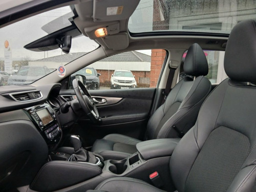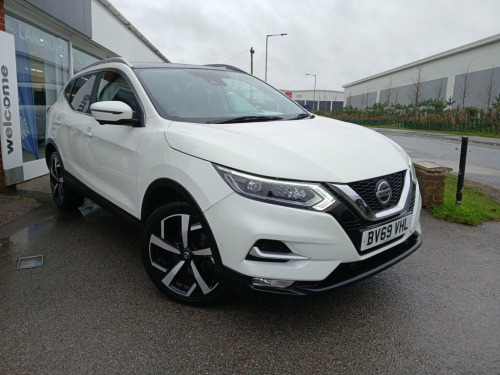 Experience refinement, practicality, and effortless driving with this outstanding Nissan Qashqai 1.3 DIG-T Tekna SUV, presented with exceptionally low mileage of just 26,800 miles. A perfect choice for families seeking comfort, technology, and reliability, this premium automatic DCT model stands out with its impressive specification and smooth, responsive performance. Powered by the efficient 1.3 DIG-T petrol engine, the Qashqai delivers strong performance with refined automatic shifting, making daily driving relaxed and enjoyable. Designed for modern family life, this Tekna model provides excellent visibility, a comfortable high driving position, and a spacious, versatile cabin. Inside, you are greeted by a smart half-leather interior that combines style with durability. Enjoy enhanced comfort with heated front seats, electric seat adjustment, climate control, and auto lights for added convenience. The large panoramic glass roof floods the cabin with natural light, creating an airy and premium feel. Technology is a major highlight of this Tekna. The built-in sat nav, DAB radio, Bluetooth, and reversing aids ensure every journey is stress-free. Manoeuvring is made easy with front and rear parking sensors and a crisp reversing camera. Convenience features such as push-button start, electric folding mirrors, and a host of driver-assistance technologies enhance everyday usability. On the outside, the Qashqai looks sharp and confident with 19" alloy wheels, sleek lines, Storm White, 19in Alloy Wheels, 3 Height Adjustable Rear Headrests, 60-40 Split Rear Folding Seats, AM-FM-CD Audio System with DAB, AUX Socket for MP3 Player, Advanced Drive Assist Display - 5in TFT , Ambient Lighting Centre Console, Auto Wipers, Bluetooth with Audio Streaming, Body Coloured Door Mirrors, Body Coloured Handles, Boot Light, Bose 8 Speaker Premium Audio System, Carbon Graphite Dash Trim, Centre Console Storage and Armrest, Chrome Glass Surround, Chrome Interior Door Handles, Cruise Control with Speed Limiter, Daytime Running Lights Dip Function When, Driver Seat Height Adjustment, Driver-Passenger-Side and Curtain Airbag, Drivers Seat with Manual Lumbar Support, Dual Zone Clim