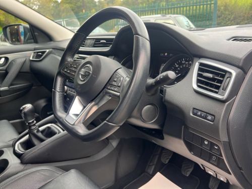 This 2019 Nissan Qashqai 1.3 DIG-T Tekna SUV with only 64639 miles on the clock is a stylish and practical choice for anyone in need of a reliable and efficient SUV. Powered by a petrol engine and boasting a manual transmission, this Euro 6 compliant vehicle provides a smooth and responsive drive. With a fresh MOT on sale and ULEZ compliance, you can enjoy peace of mind and hassle-free driving in urban areas. This 5-door, 5-seat SUV is equipped with 19-inch alloy wheels, body-colored door mirrors and handles, and chrome glass surround, providing a sleek and modern look. The electric heated auto-folding door mirrors add convenience and safety to your driving experience. Don't miss out on this fantastic vehicle that offers both practicality and style.- 2keys - Good service history - Part Exchange Welcome- Extended Warranties Available- Finance Available, in alloy wheels, body coloured door mirrors, body coloured handles, chrome glass surround, electric heated auto-folding door mirrors, front and rear electric windows, glass roof pack, led pack, matt silver roof rails, puncture repair kit, rear roof spoiler, 3 height adjustable rear headrests, 60-40 split rear folding seats, ambient lighting centre console, auto wipers, boot light, carbon graphite dash trim, centre console storage and armrest, chrome interior door handles, daytime running lights dip function when turn signal applied, driver seat height adjustment, drivers seat with manual lumbar support, dual zone climate control air conditioning, electrically adjustable drivers seat, executive pack, front and rear door pockets with drink holders, heat pack, height adjustable front head restraints, individual rear seat reading lights, interior ambient lighting, leather d shaped steering wheel, leather gear lever, leather knee pad, luggage board system, monoform front seats with plastic backboard, one touch 4 x auto windows with illuminated switches, parcel shelf - stow function under luggage board, passengers seat with manual lumbar support, pollen filter, remote audio control, seats - passengers height adjustment, start push button, steering wheel mounted audio controls, synthetic leather wrapped door handle with contrasting stitching, tech pack, tilt and telescopic adjustable steering wheel, am-fm-cd audio system with dab, aux socket for mp3 player, advanced drive assist display - 5in tft coloured screen, bluetooth with audio streaming, bose 8 speaker premium audio system, front 12v power sockets x2, nissan connect 7in touchscreen navigation and entertainment system, rear usb port, smartphone app integration, usb port, autohold function - stand still assist, driver-passenger-side and curtain airbags, esp abs ebd and brake assist, electric parking brake, front and rear seat belts with load limiter and pretensioners, front and rear seatbelt warning, height adjustable front seatbelts, hill start assist, isofix child seat anchoring points - rear x2, nissan anti theft system immobiliser, nissan intelligent key, passenger airbag deactivation system, rear door child locks, rear wiper with reverse link, remote central locking with superlocking, safety shield plus, smart vision pack, thatcham category 1 alarm, cruise control with speed limiter, drive assist pack, electric speed-sensitive power steering, intelligent around view monitor, intelligent park assist, nissan chassis controls, outside temperature sensor, rear view camera, selectable steering - normal or sport, tpms - tyre pressure monitoring system, trip computer, underbody vortex generators, front fog lights, intelligent auto headlight, led signature daytime running lights